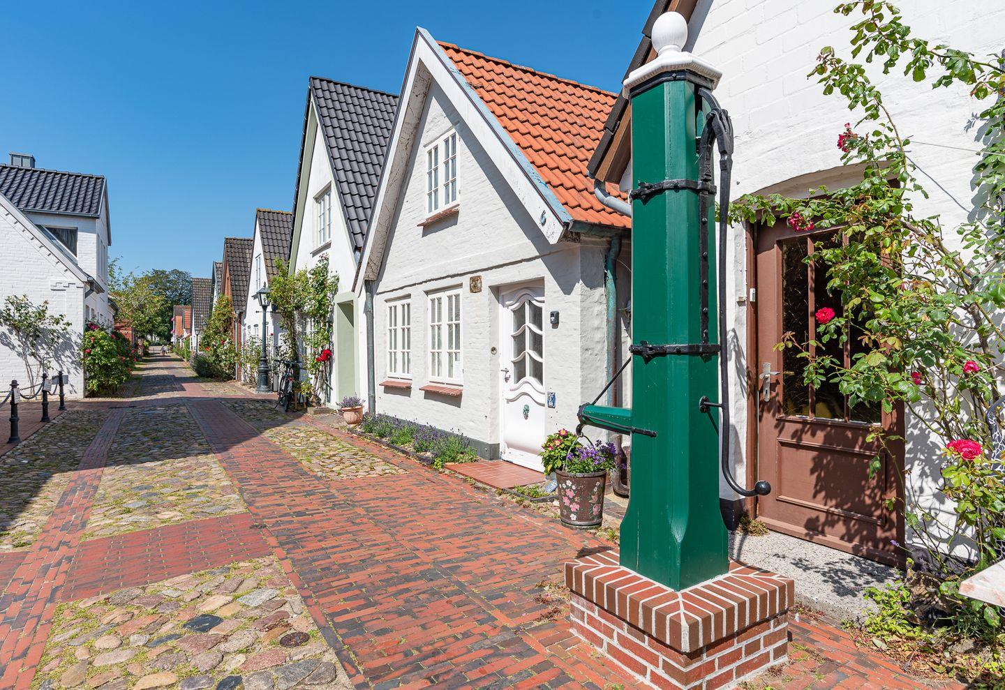 Der kleine Carl liegt in der Carl-Häberlin-Straße 6 und somit im Zentrum von Wyk, in einer ruhigen Seitengasse der Fußgängerzone. Sie gelangen innerhalb weniger Minuten zu Promenade und Sandstrand. Das Zentrum hält alles bereit, was das Herz begehrt. Viele kleine Cafés und Restaurants sind in unmittelbarer Nähe zum Ferienhaus.