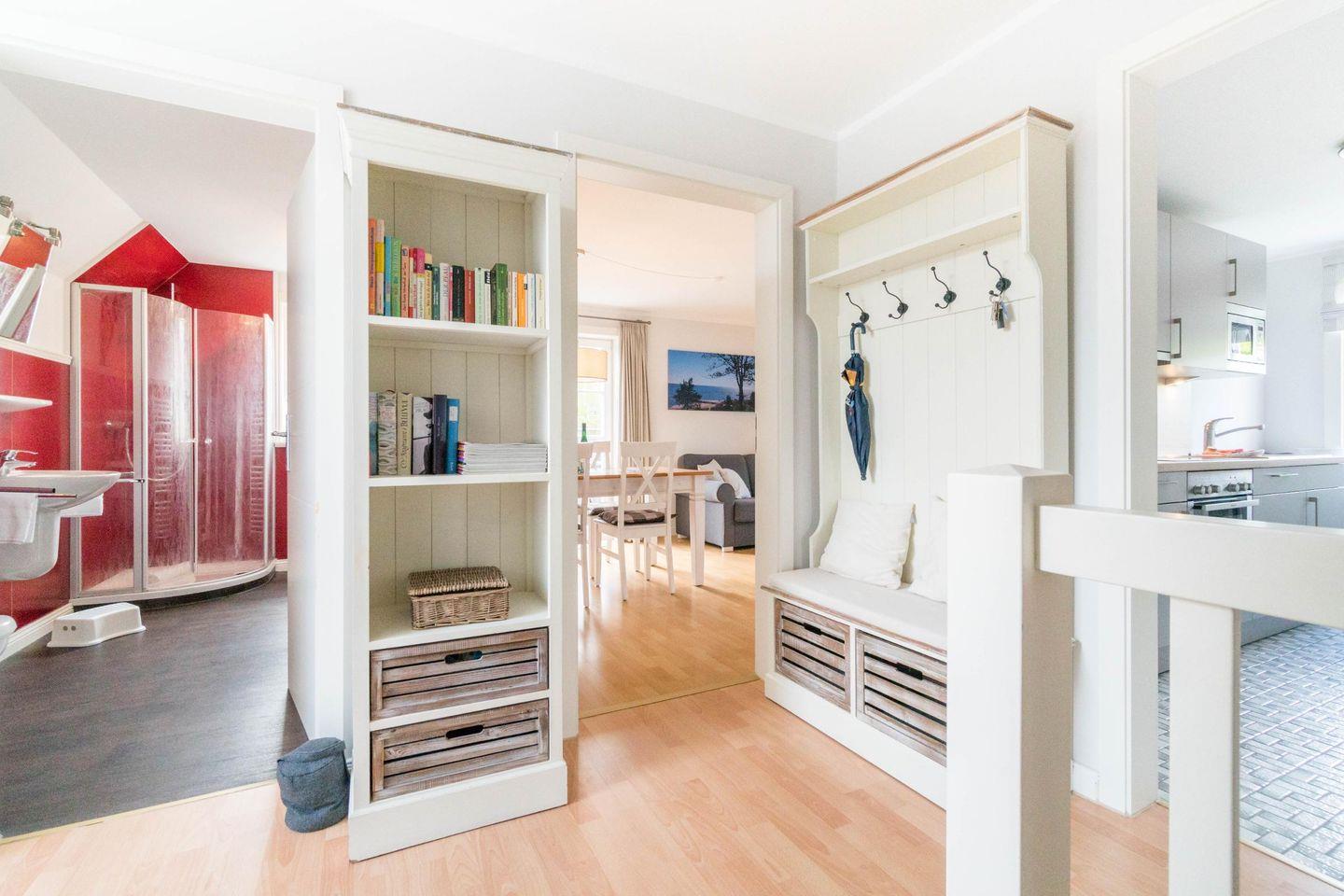 Das Haus in der Gartenstraße unterteilt sich in die drei Wohnungen Rose, Clematis und Hortensie, jede mit eigener Terrasse bzw. eigenem Balkon und gemeinschaftlich genutztem Garten. Im Souterrain befinden sich Waschmaschine und Trockner, die ebenfalls gemeinschaftlich genutzt werden. Das Haus ist nahe der Wyker Innenstadt gelegen und zu der Promenade mit den zahlreichen Restaurants, Cafés und netten Lädchen wie auch zum Wellenbad mit dem Kurmittelhaus ist es nicht weit. Das Friesenmuseum und die Post liegen Ihnen quasi zu Füßen und auch der große Einkaufsmarkt, Bäcker und Schlachter sind fußläufig zu erreichen. Aber auch der Waldspielplatz "Löwenhöhle" ist unweit des Hauses gelegen. Diese zentrale Lage ist ein super Ausgangspunkt für Ihren Urlaub.