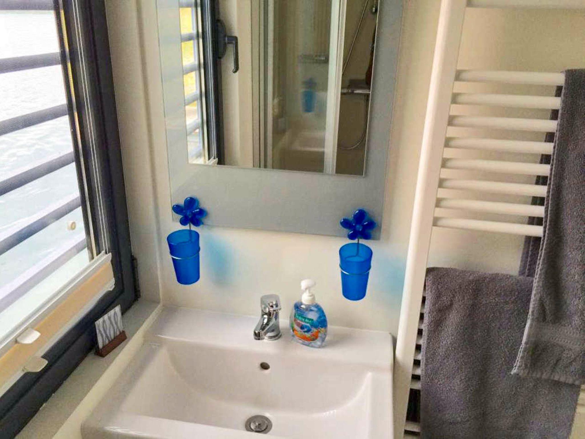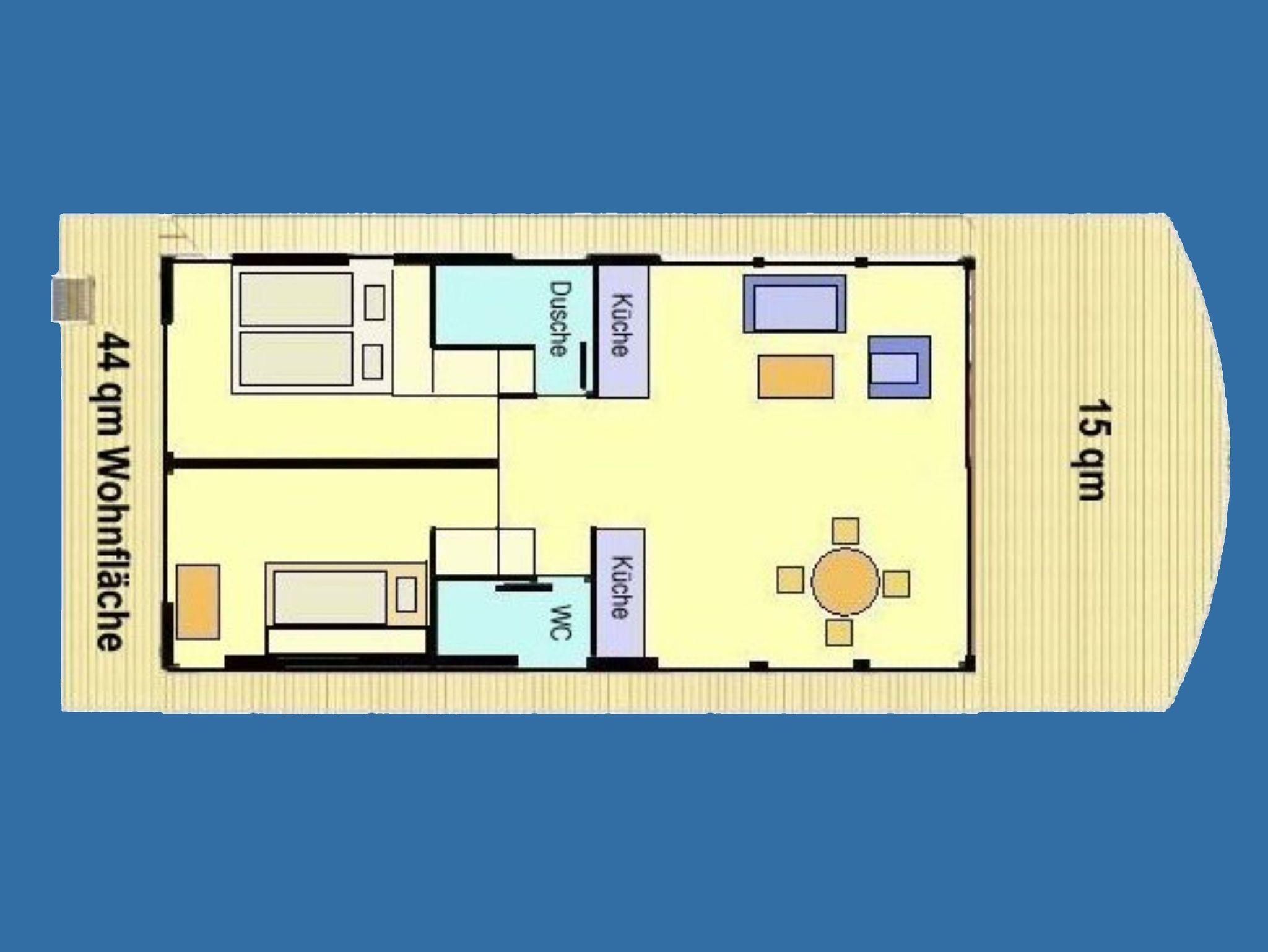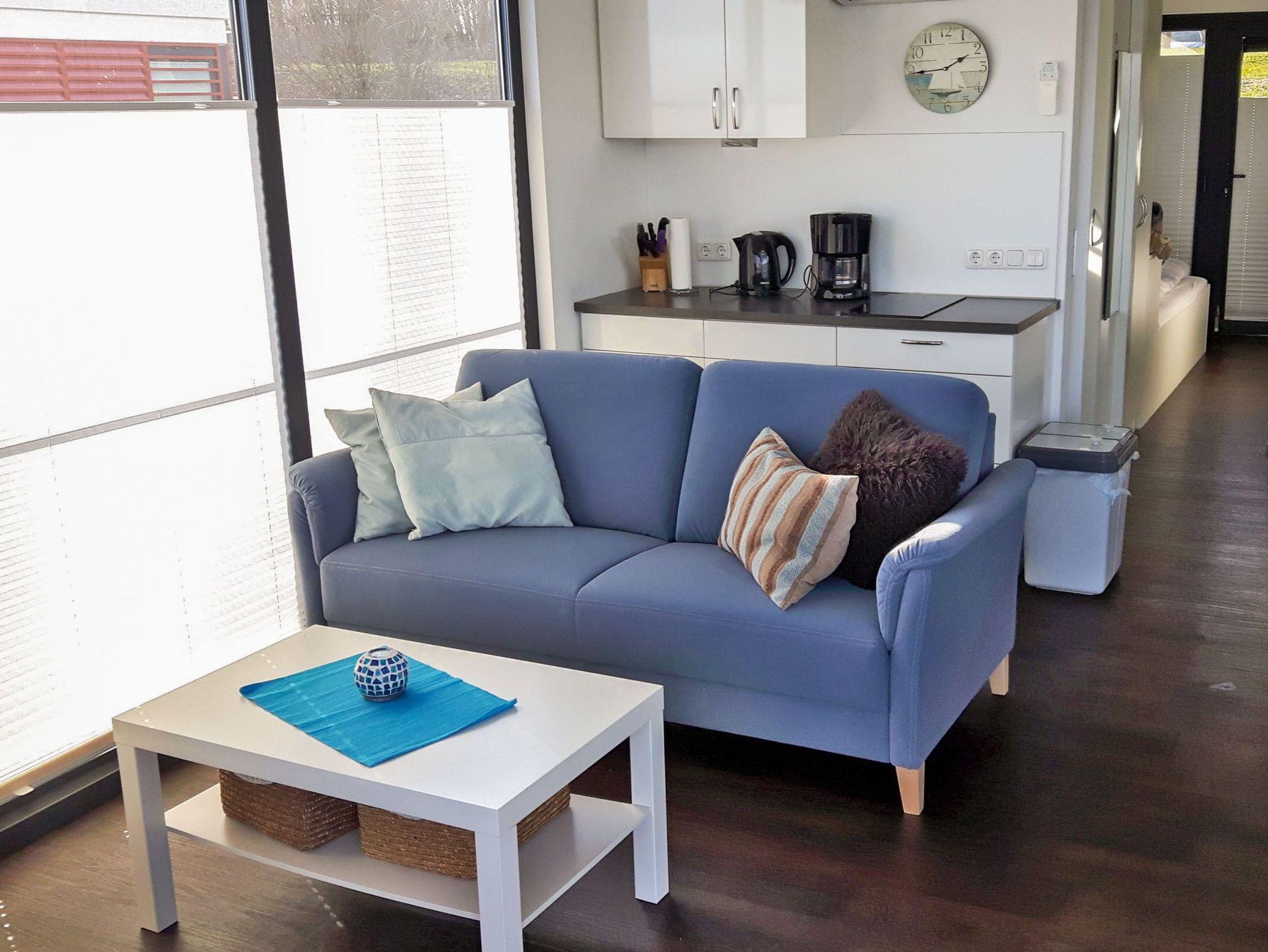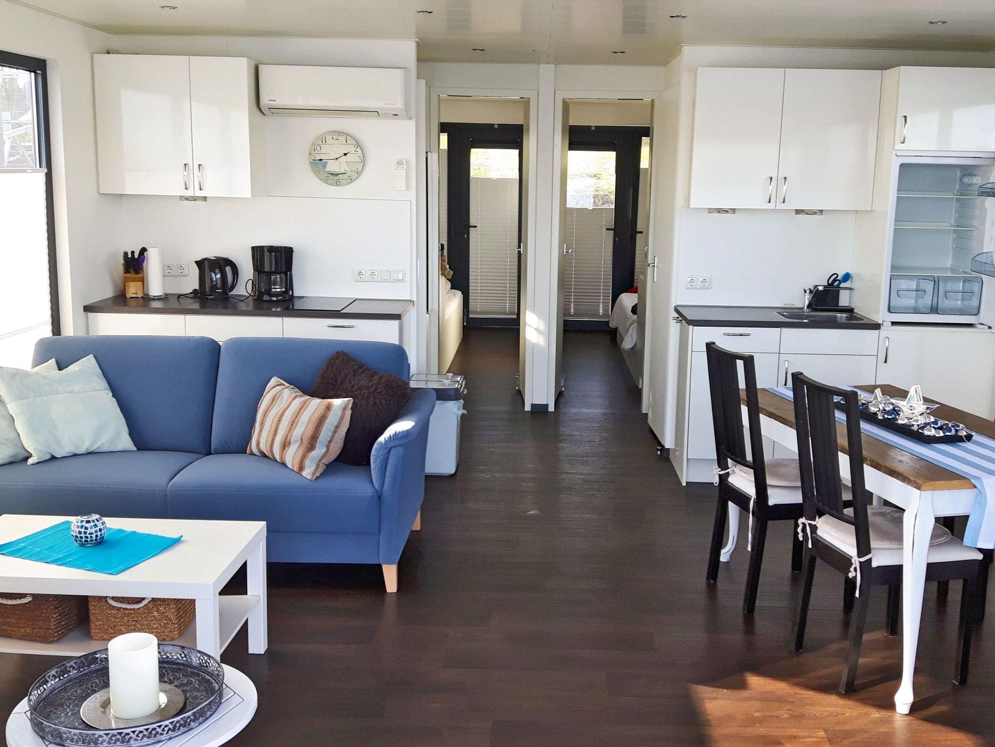 Das Floating House 7 in Xanten lädt dich zu einem Urlaub mitten auf dem Wasser ein ohne dabei auf den Komfort eines gemütlichen Ferienhauses zu verzichten. Bis zu vier Personen finden hier auf rund 44 m² Platz zum Entspannen, Erholen und Genießen. Zwei separate Schlafzimmer mit Doppelbetten (160x200) sorgen für Privatsphäre, während der offene Wohnbereich mit integrierter Küche, Essplatz und bequemer Couch zu gemeinsamen Stunden einlädt. Die großen Fenster schenken nicht nur viel Tageslicht, sondern auch einen traumhaften Ausblick auf die umliegende Wasserlandschaft die Plissees sorgen dabei für Sicht- und Sonnenschutz, wann immer du möchtest. Die moderne Küchenzeile ist bestens ausgestattet: mit Ceranfeld, Mikrowelle, Kühlschrank, Spülmaschine, Toaster, Kaffeemaschine, Wasserkocher und allem, was du für entspannte Urlaubsküche brauchst. Das Duschbad sowie das separate WC mit Waschbecken sind praktisch voneinander getrennt. Für kühle Tage steht eine Klimaanlage mit Warmluftheizung bereit. Fernseher, Radio, DVD- oder CD-Player sind ebenfalls an Bord. Draußen geht der Urlaub weiter: Auf der rund 15 m² großen Terrasse am Bug kannst du die Seele baumeln lassen, während dir auf dem 25 m² großen Sonnendeck noch mehr Platz und Aussicht geboten werden. Nur wenige Meter vom Boot entfernt befindet sich der kostenfreie Parkplatz und für Fahrräder oder Sportgeräte steht ein abschließbarer Abstellraum bereit.