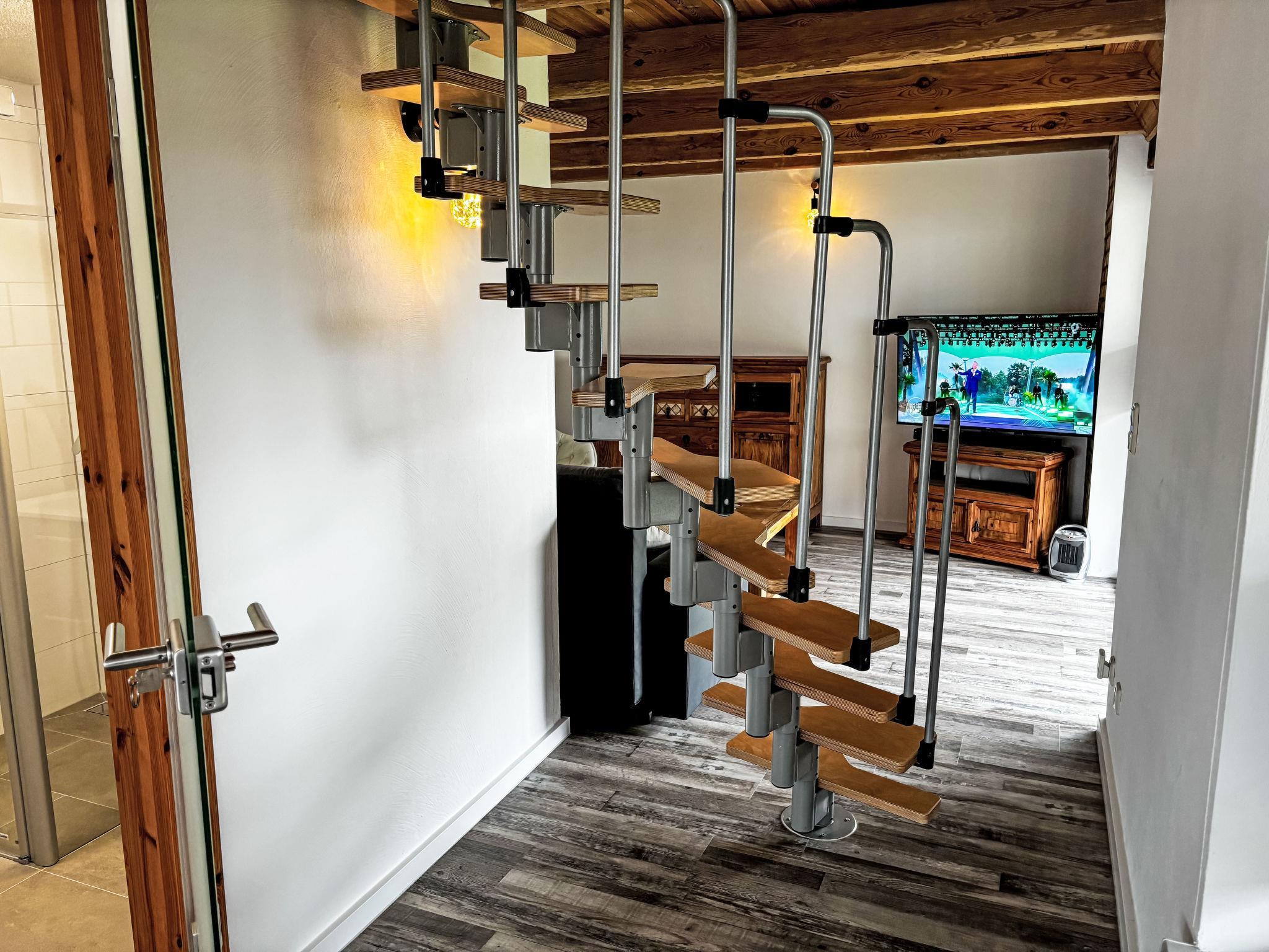 "Paula", 3-room house 58 m2 on 2 levels. Modern furnishings: living room with satellite TV, CD-player and hi-fi system. Exit to the terrace. Kitchen (4 hot plates, oven, dishwasher, toaster, kettle, microwave, freezer, electric coffee machine) with dining table and wood-burning stove. Shower/WC. Top floor: (steep stair), 1 open room with sloping ceilings, ceiling height 10 - 190 cm, without wardrobe with 1 double bed. 1 open room with sloping ceilings, ceiling height 10 - 190 cm, without wardrobe with 2 beds. Electric heating. Terrace, patio. Terrace furniture, deck chairs (2). Facilities: logs (extra). E-charging station. Please note: non-smoking house. Smoke alarm. Bookings accepted for holiday purposes only.