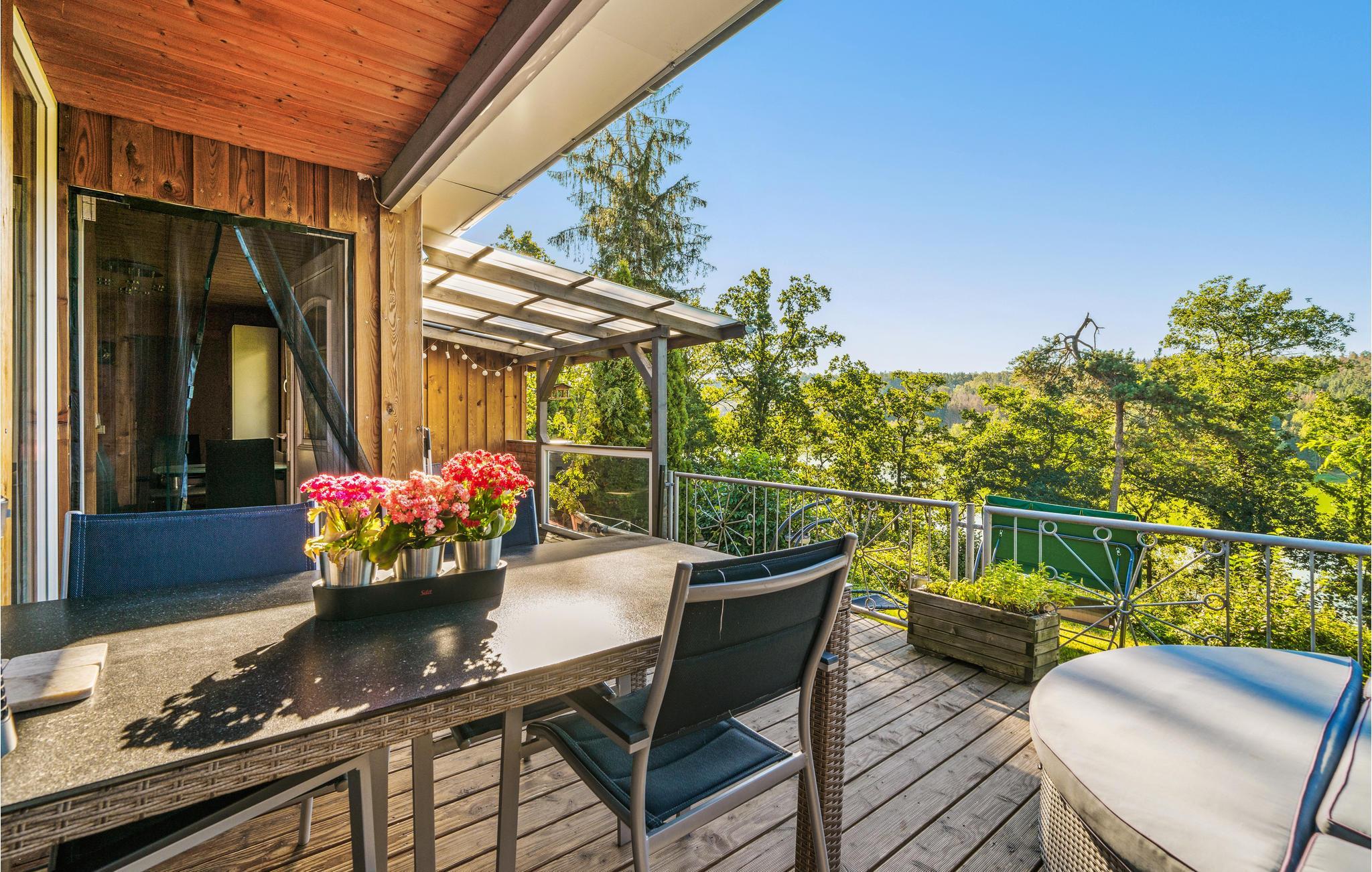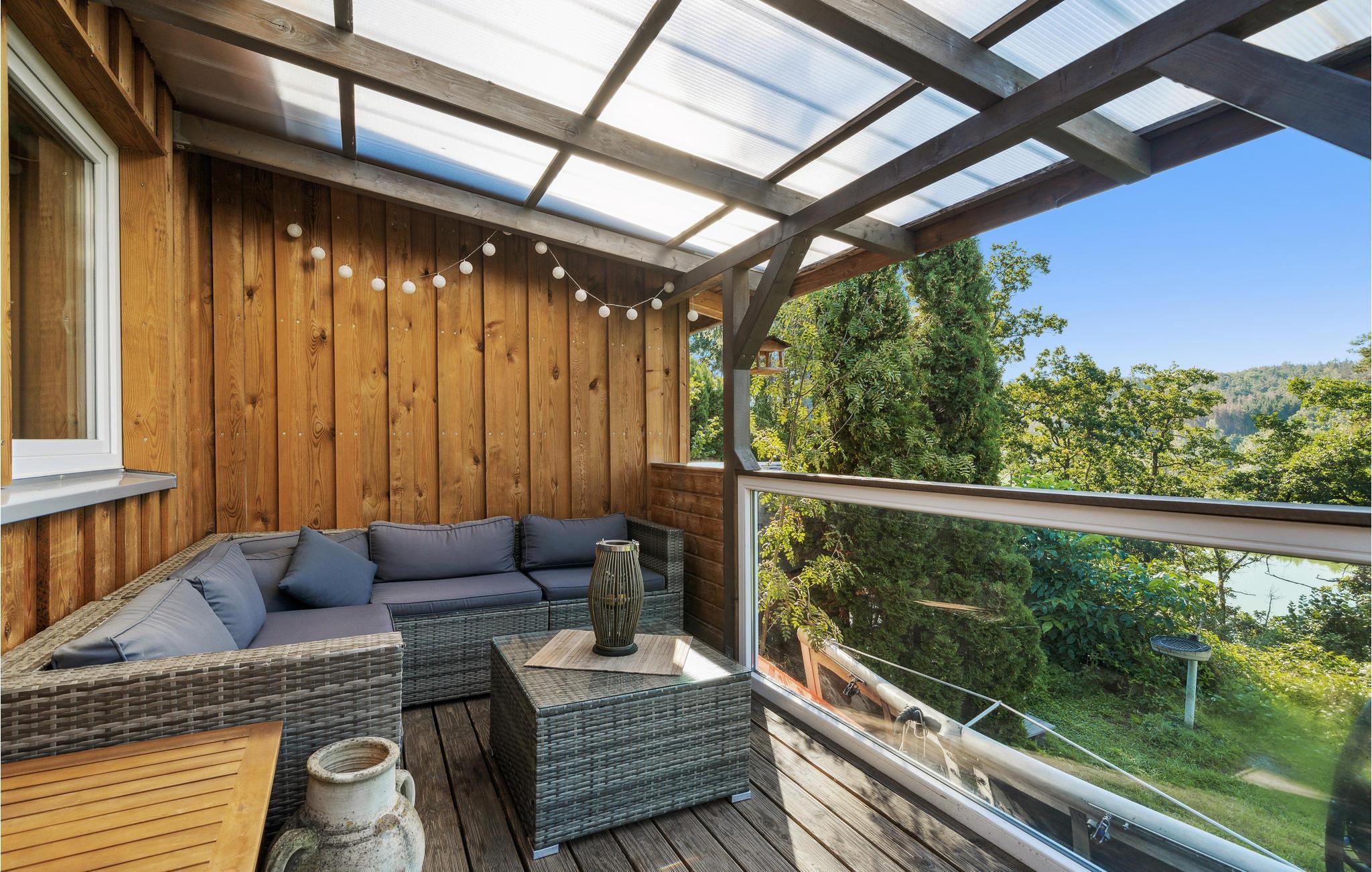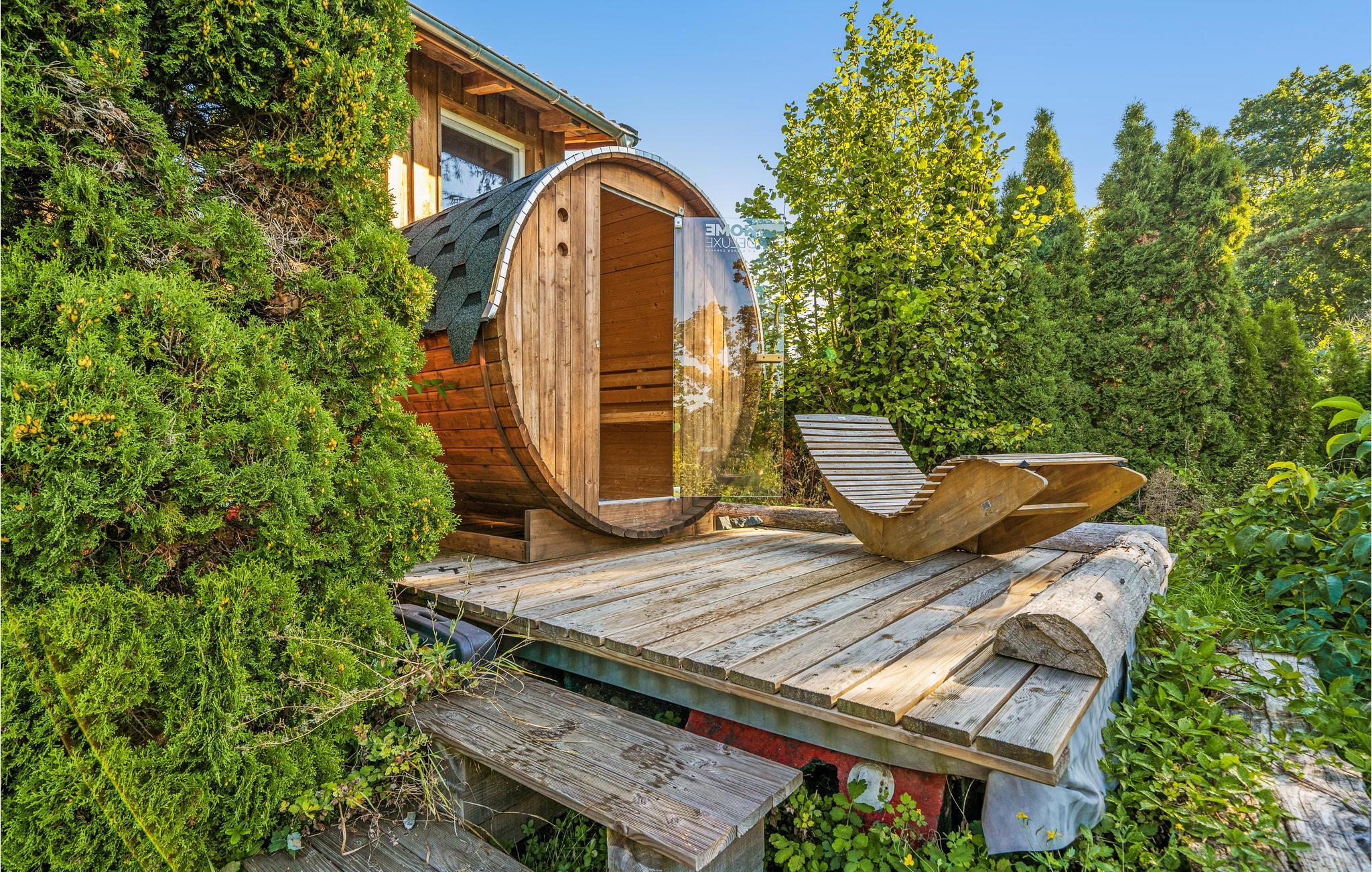 Välkommen till detta vackra trähus som inte lämnar något övrigt att önska. Här kan du känna dig som hemma och koppla av och njuta av den bekväma möbleringen och inredningen med vedeldad spis. Tillbringa din vardagssemester i den attraktiva interiören eller njut av solen och bekvämligheterna utomhus. På terrassen väntar trädgårdsmöbler av hög kvalitet på att du ska slå dig ner med ditt kaffe, en bok eller på kvällen med ett glas vin. Wellness finns också i form av en tunnbastu, där du kan se ut över träden och sjön inifrån bastun.