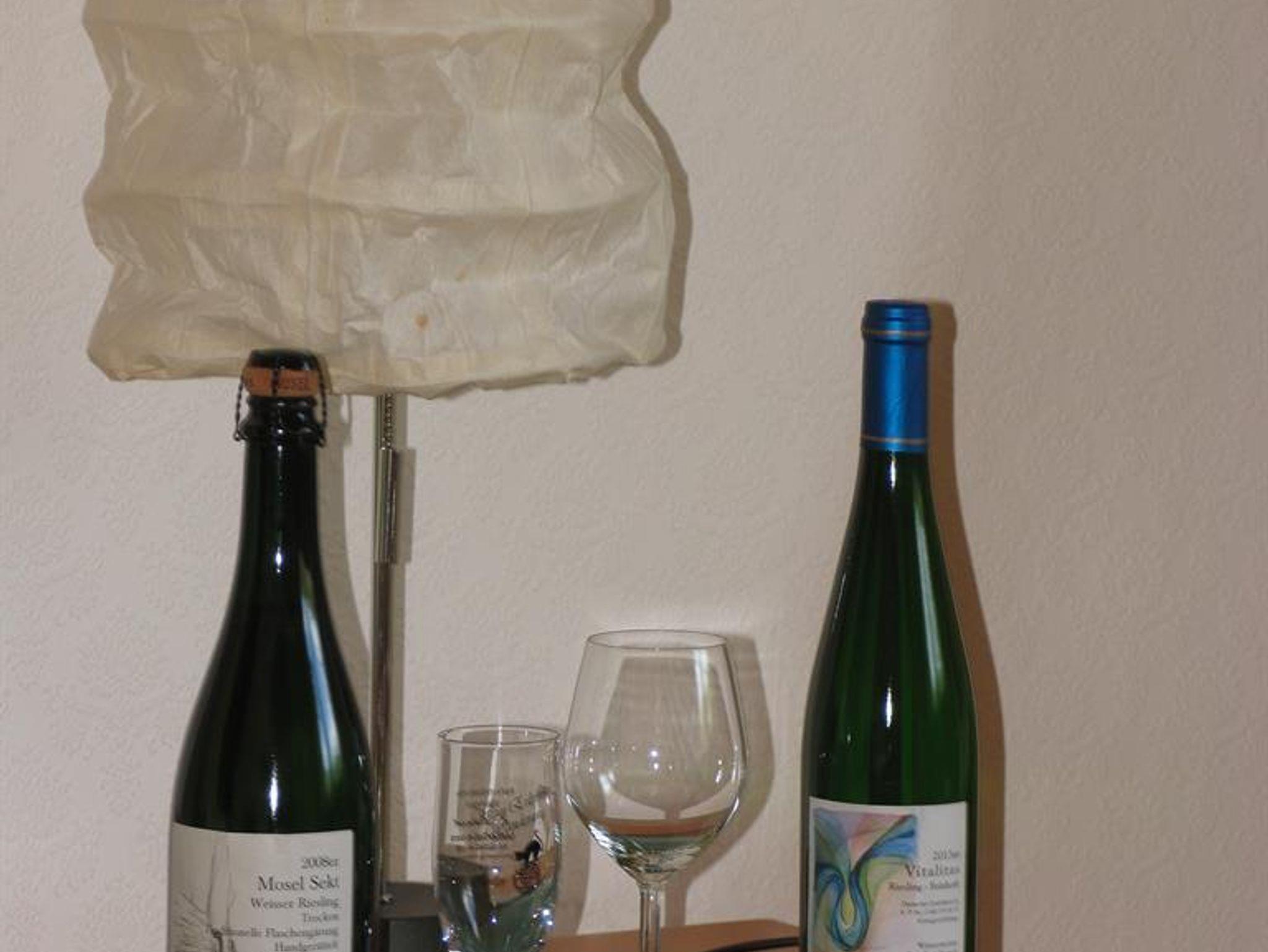 Unsere Ferienwohnung ist ausgestattet mit 1 Doppelschlafzimmer, Wohnzimmer mit Schlafcouch, kompletter Einbauküche, DU/WC, Sat-TV, HI-FI Anlage und überdachter Terrasse mit herrlichem Moselblick.