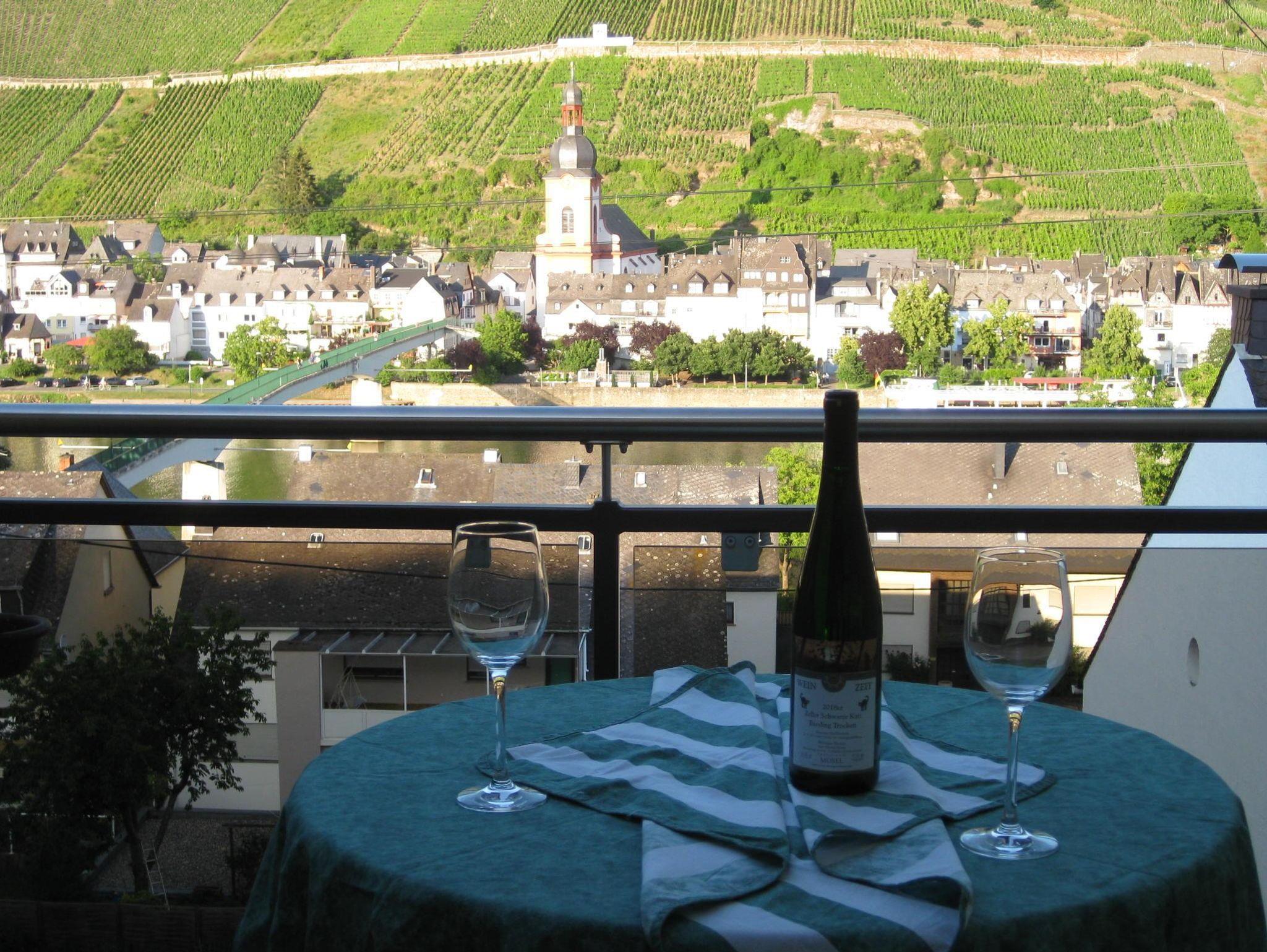 Eigenes Ferienhaus direkt am Weingut im Grünen mit zwei geschmackvoll und harmonisch eingerichteten Ferienwohnungen, ca. 60 qm zuzüglich Terrasse mit Moselblick. Komfortable Komplettausstattung mit Wohn-Küche, separatem Schlafzimmer, Wohnzimmer mit Schlafcouch, Sat TV und HiFi-Anlage, W-Lan im ganzen Haus verfügbar, Dusche/WC. Herrlicher Panoramablick auf die Mosel, die Weinberge und die Altstadt von Zell. Zentrale, ruhige Lage im Stadtteil Kaimt Nähe Fußgängerbrücke, ca. 3 Min. bis zum Stadtzentrum.