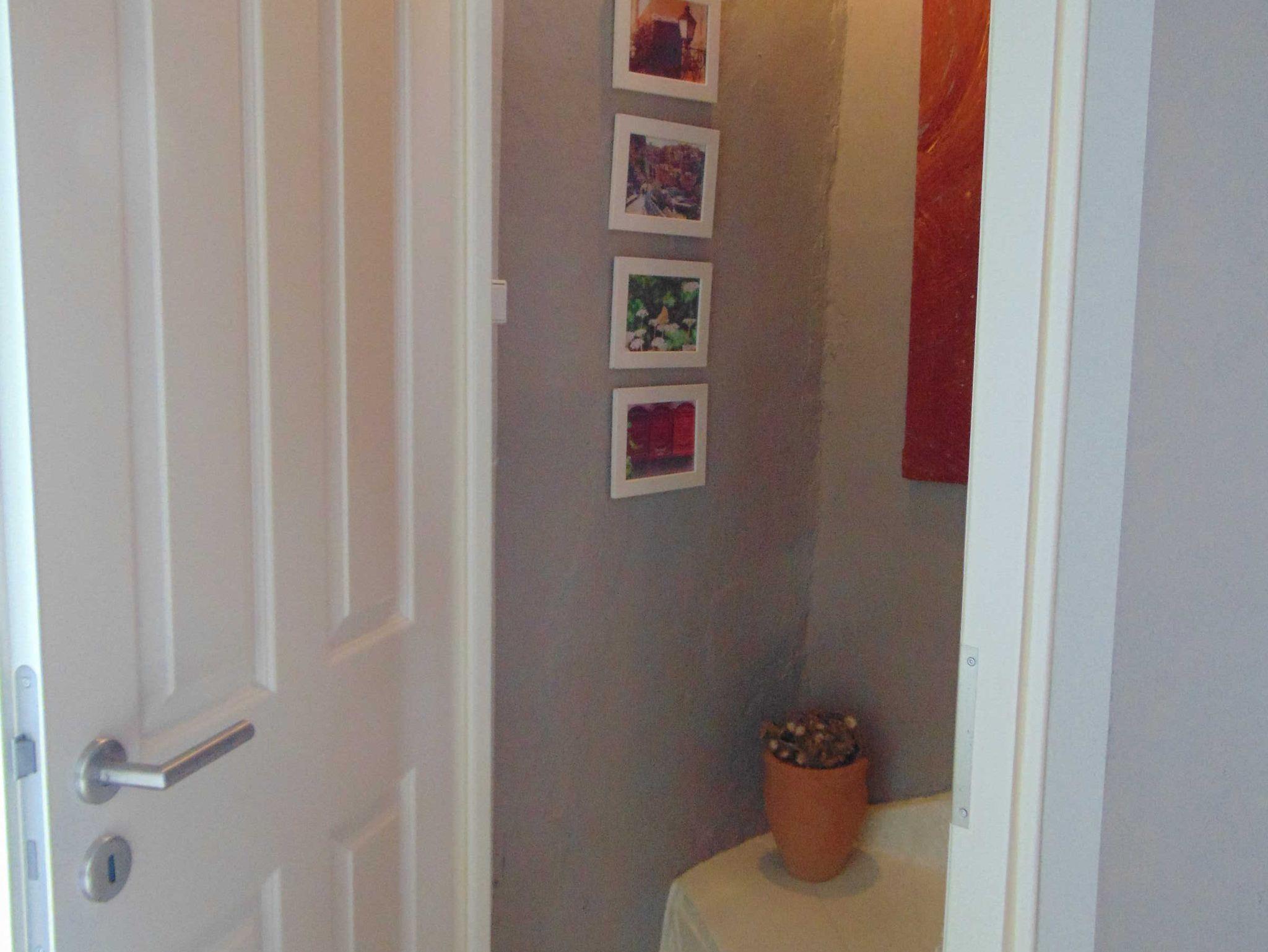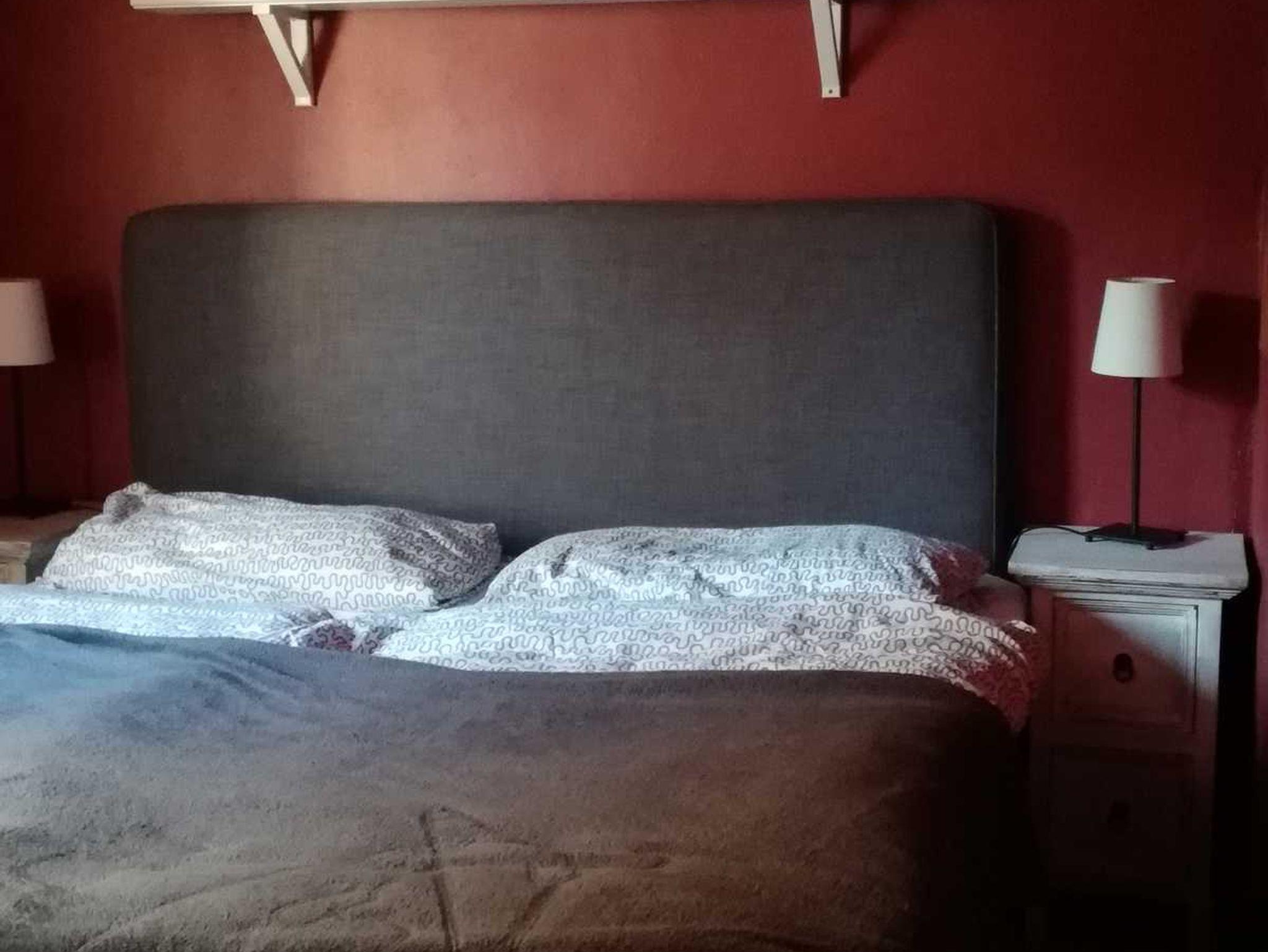 Im Obergeschoss befinden sich 2 Schlafzimmer. Das kleinere hat ein Boxspringbett für 2 Personen, das größere der beiden Schlafzimmer hat ein Doppelbett mit einem Kleiderschrank und es gibt einen Fernseher. Das Badezimmer ist mit einer Dusche, Waschbecken und einem WC ausgestattet.