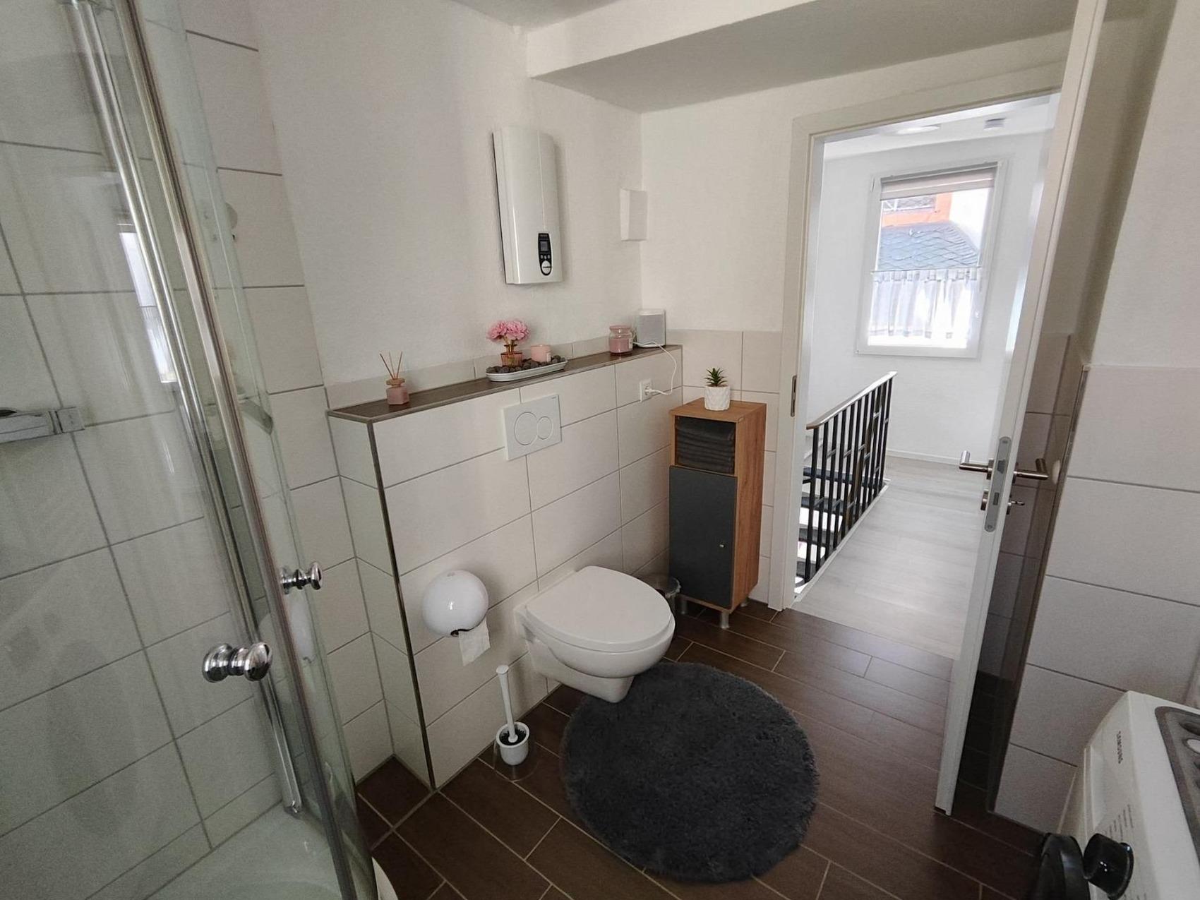 Das Ferienhaus hat eine Fläche von 65m2 und ist aufgeteilt auf drei Geschosse. Im Erdgeschoss befindet sich die Küche und das Gäste WC. Die Küche ist mit einer Grundausstattung für 6 Personen ausgestattet, Toaster, Kontaktgrill, Eierkocher, Wasserkocher, Tassimo, Filterkaffeemaschine, Minigeschirrspülmaschine und der Dyson Staubsauger. Unteranderem befindet sich in der Küche auch ein Android TV, Mini PC zum Surfen im Internet, Alexa Show 15 und Sonos Sound System mit Alexa Musik. Im Eingangsbereich befinden sich zwei Garderoben mit einem Schirmständer und einem Schuhschrank welcher auch als Sitzbank fungiert. Im Gäste-WC ist auch ein Verbandskasten mit Desinfektionsmittel vorhanden. Im Treppenhaus sind auf die Geschosse zwei Feuerlöscher aufgeteilt. Rauchmelder befinden sich im Treppenhaus, Wohnzimmer und im Schlafzimmer. Erstes Geschoss befindet sich das Wohnzimmer und ein Abstellraum, der nur für den Eigentümer nutzbar ist. Das Wohnzimmer hat folgende Ausstattungsmerkmale, 50 Zoll Android TV mit Ambilight, Nintendo Switch, Fritz Telefon für das deutsche Festnetz, Gesellschaftsspiele, Bücher, Kinderspielzeug, Schlafcouch für zwei Personen, einen kleinen Kleiderschrank, Massagesessel und Sonos Sound System mit Alexa Musik. Das zweite Geschoss besteht aus einem Badezimmer und dem Schlafzimmer. Das Badezimmer hat eine Dusche, WC, Waschbecken, Schrankablagen, einen Fön, Waschmaschine und Sonos Sound System mit Alexa Musik. Unterhalb des Badezimmer Fensters ist von außen eine Wäschereck angebracht. Im Schlafzimmer besteht aus einem Boxspringbett 1,80*2,00, einem Kleiderschrank, einem Schrank mit Schubladen und kleinen Fächern, Android TV. Wir haben auch an die kleinsten von uns gedacht, Babyhochstuhl, Babyreisebett mit Bettwäsche, Flaschenwärmer, Babywippe, Steckdosensicherung und Kinderbesteck. Unser Haus liegt am Stadtzentrum vom Zell und nur 50m von der Mosel entfernt. Öffentliche kostenlose Parkplätze gibt es am Moselufer am alten Bahnhof.Die Mosel hat einfach etwas Magisches an sich. Die malerische Landschaft mit den steilen Weinbergen, die idyllischen Fachwerkhäuser und natürlich der Fluss selbst, der sich gemächlich durch das Tal schlängelt. Hier kann man die Seele baumeln lassen, die Natur genießen und den Alltag hinter sich lassen. Unser Haus liegt in einem kleinen, ruhigen Ort direkt an der Mosel. Es ist der ideale Ausgangspunkt, um die Region zu erkunden. Ob bei einer Wanderung durch die Weinberge, einem Fahrradausflug entlang des Flusses oder einer Schiffstour auf der Mosel - hier gibt es für jeden Geschmack etwas zu entdecken. Bei uns sollen Sie sich wie zuhause fühlen. Wir legen großen Wert auf eine persönliche Atmosphäre und möchten, dass es Ihnen an nichts fehlt. Unsere gemütlich eingerichteten Zimmer bieten Ihnen den nötigen Komfort für einen erholsamen Aufenthalt. Und natürlich stehen wir Ihnen jederzeit gerne mit Tipps und Empfehlungen zur Verfügung, damit Sie das Beste aus Ihrem Urlaub an der Mosel herausholen können. Wir freuen uns darauf, Sie bei uns begrüßen zu dürfen und wünschen Ihnen schon jetzt einen unvergesslichen Aufenthalt in unserem Hause.Herzliche Grüße,Familie Bergrath