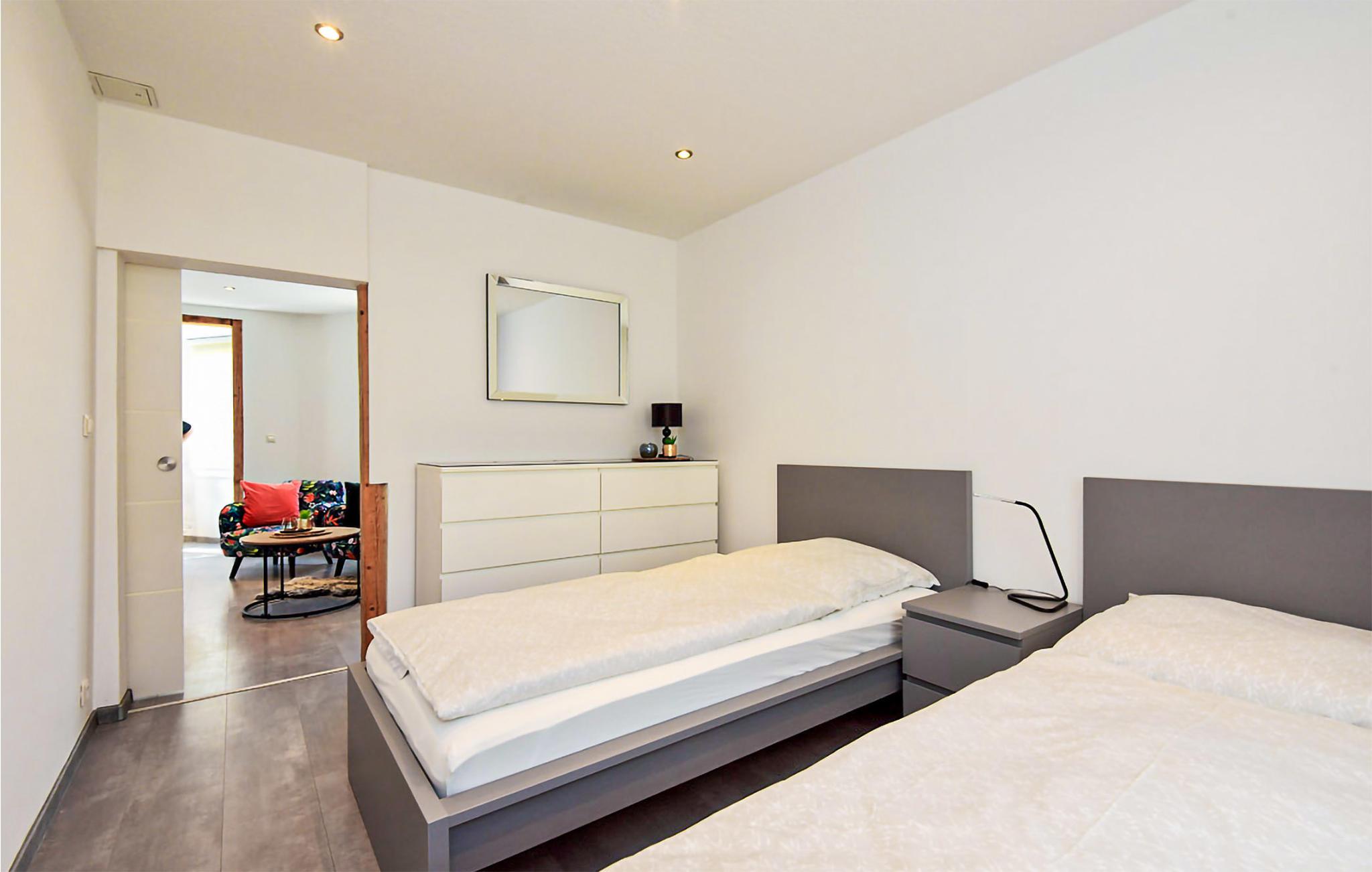 Planera din familjesemester i hjärtat av Tyskland. Den här vackra lägenheten erbjuder dig all den komfort du kan önska dig med din familj. Den vackra lägenheten på bottenvåningen i hyreshuset erbjuder dig praktiska sovrum och en badrumsoas där du kan ta ett avkopplande bad. Det mysiga vardagsrummet bjuder in dig att koppla av och titta på din favoritfilm efter en händelserik dag. Köket med ett stort kylskåp erbjuder dig utrymme för att laga läckra måltider och äta tillsammans vid det stora matbordet.