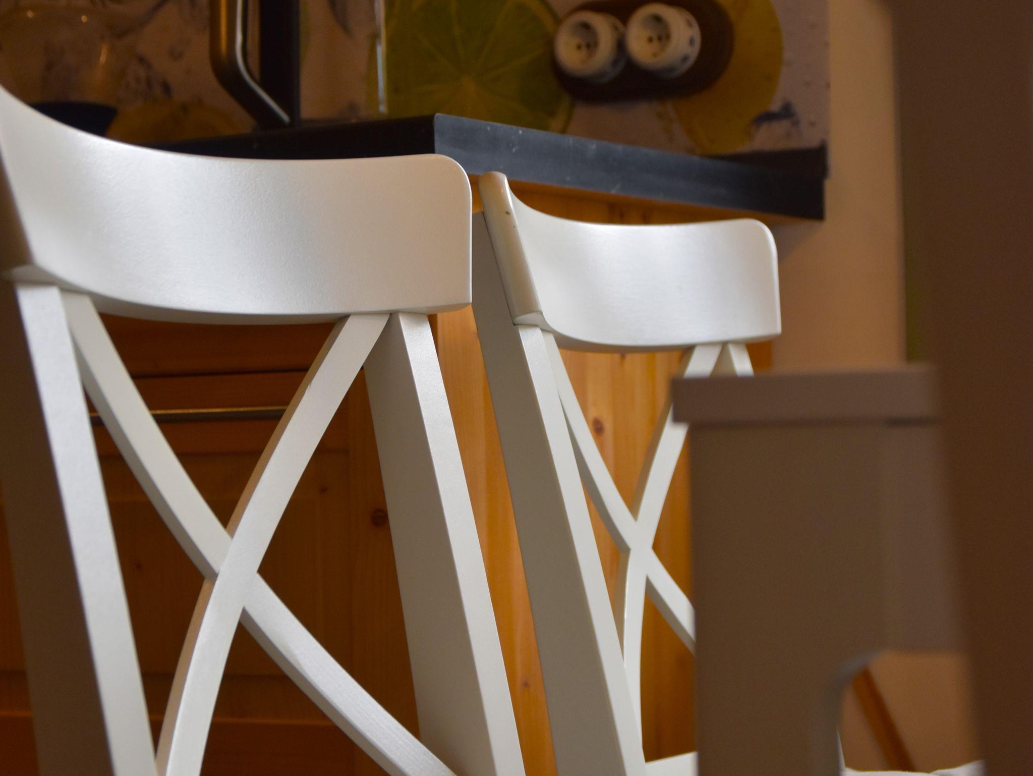 Zum gemütlichen Verweilen laden im 1. Obergeschoss das Wohnzimmer, der kleine Balkon und die komplett eingerichtete Küche mit Essecke ein. Ein separates WC (Dusch-WC) und ein Badezimmer mit ebenerdiger Dusche und 2 Waschbecken sind dort auch zu finden.