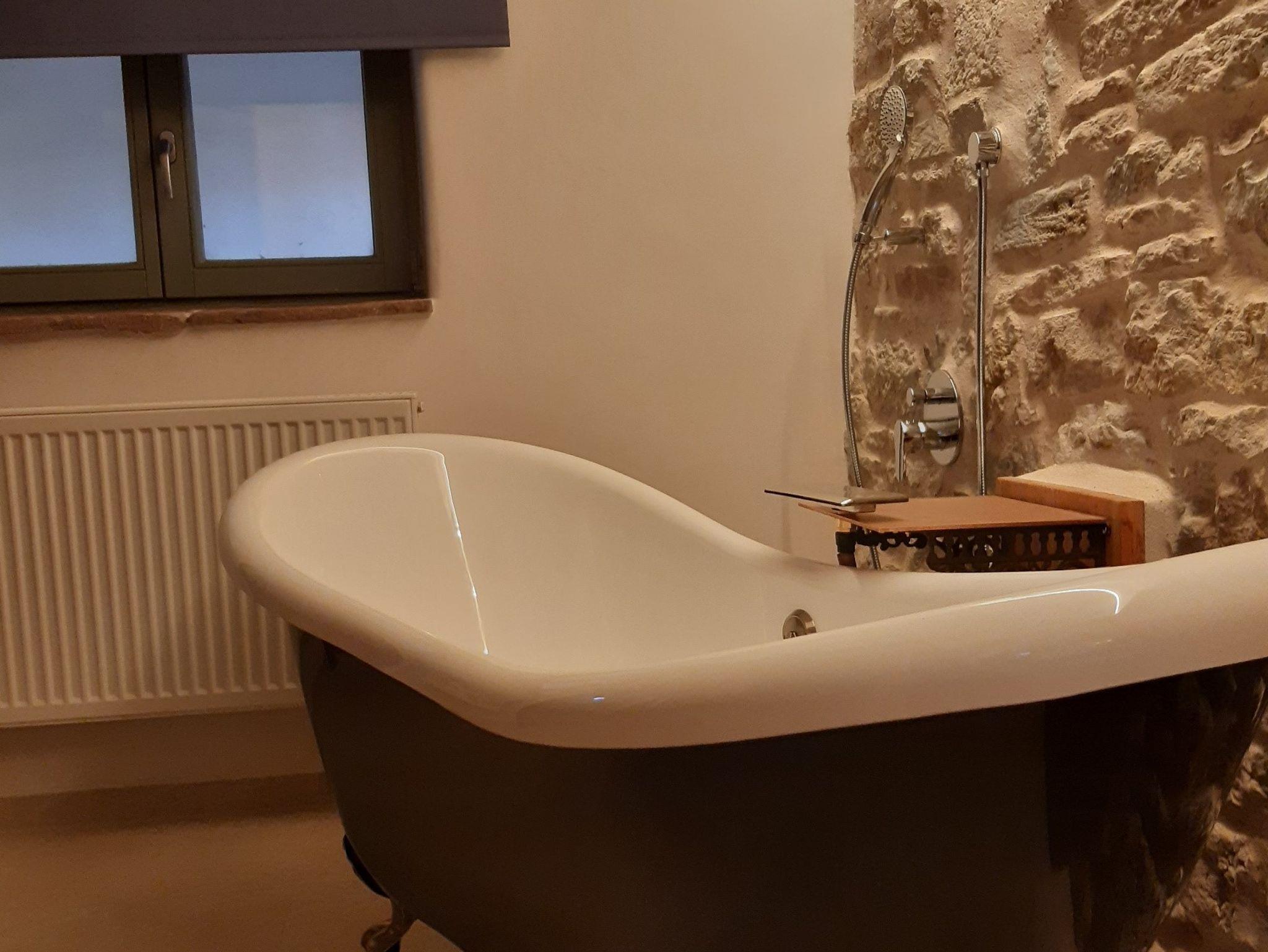 Im Erdgeschoss befindet sich ein Schlafzimmer, ein Bad mit Badewanne und ebenerdiger Dusche, WC und Waschbecken. Zum Reinigen Ihrer Kleidung stehen Ihnen in der Waschküche eine Waschmaschine und ein Trockner zur Verfügung.