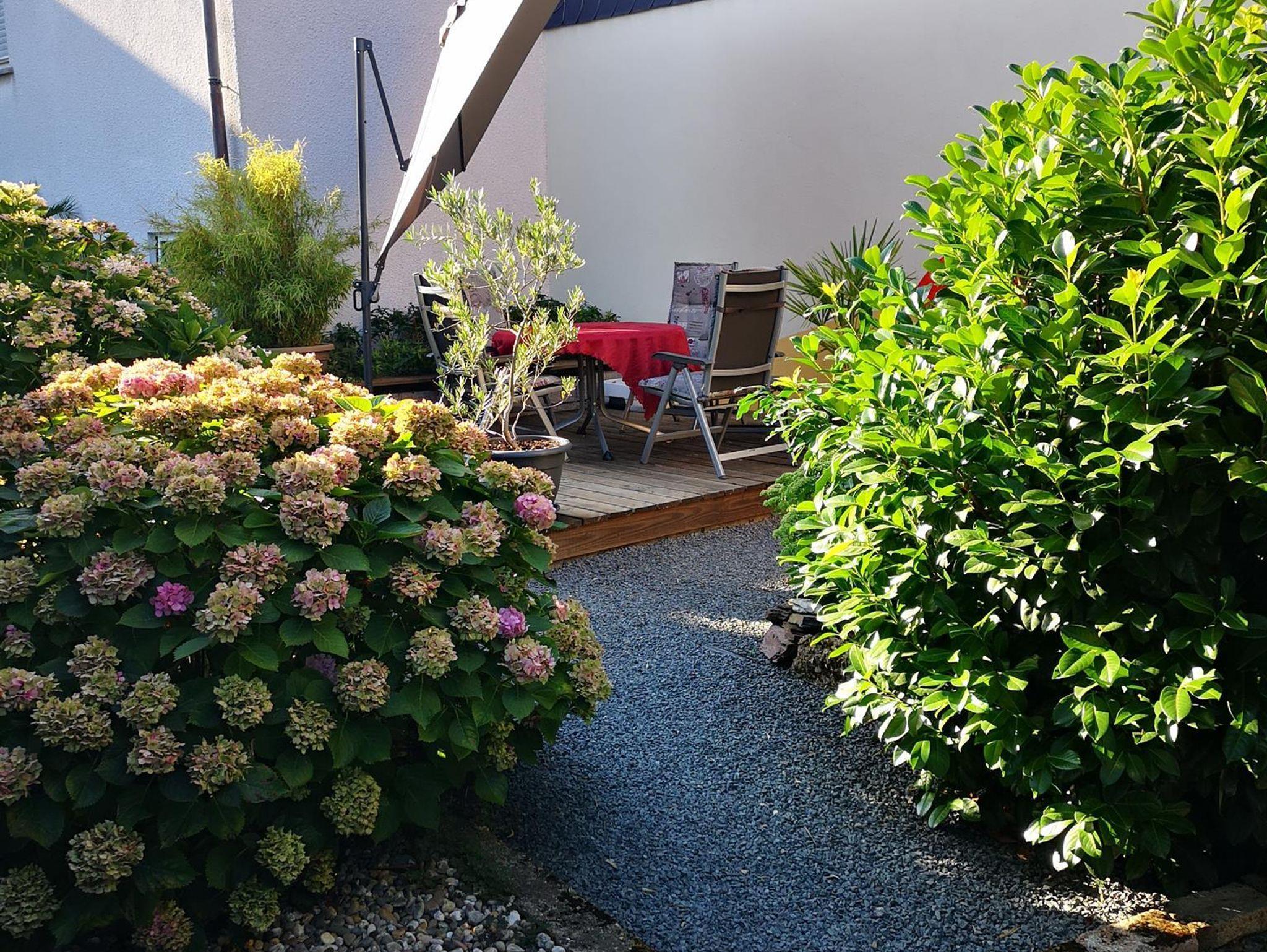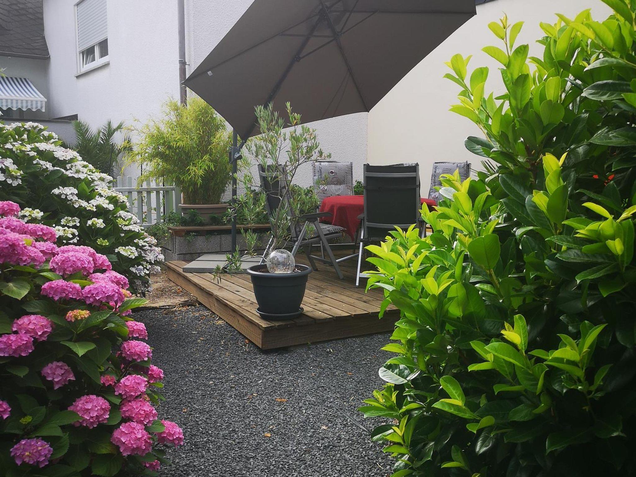 Der Garten ist von der Straße aus nicht einsehbar und lädt zum Verweilen ein. Genießen sie dort ein Sonnenbad oder lassen sie den Tag mit einem Glas Moselwein ausklingen.