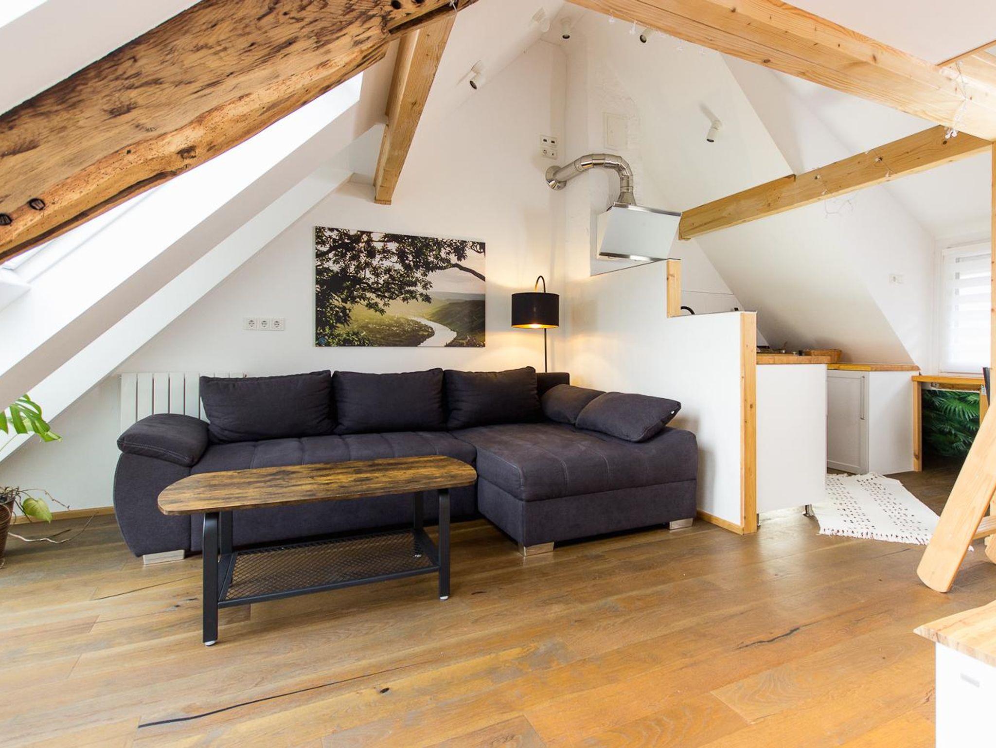 Ein schöner, geräumiger Wohnraum, mit tollem Ausblick auf die Mosel und Weinberge. Es ist ein ausgebautes 40 qm Dachgeschoss.