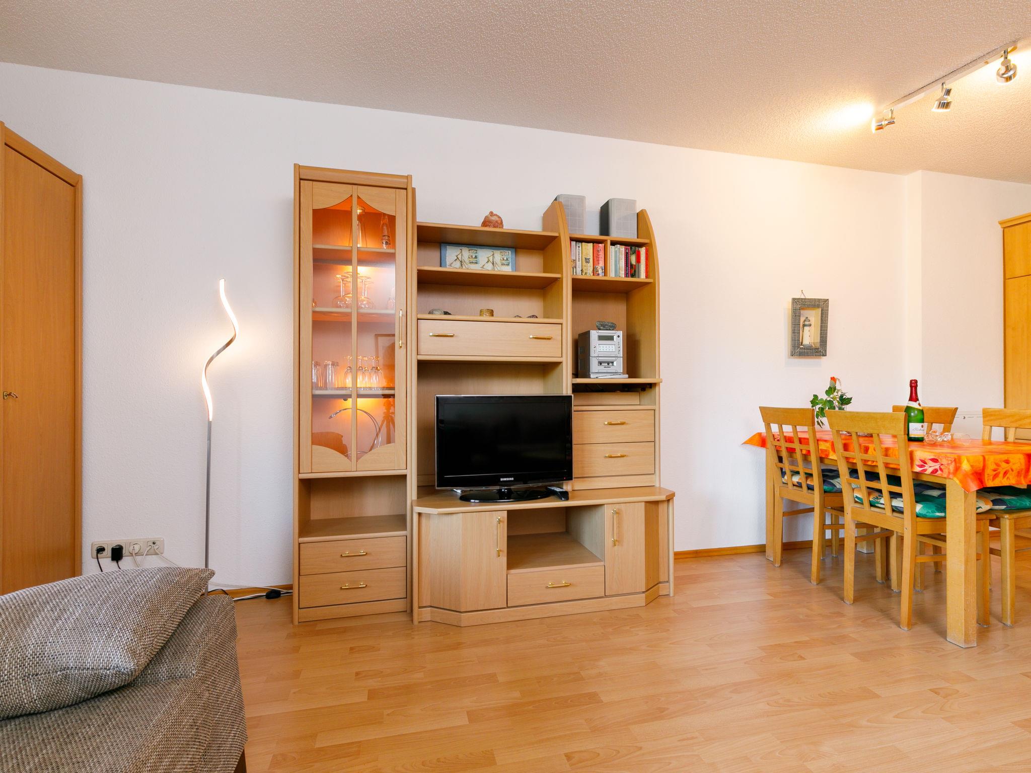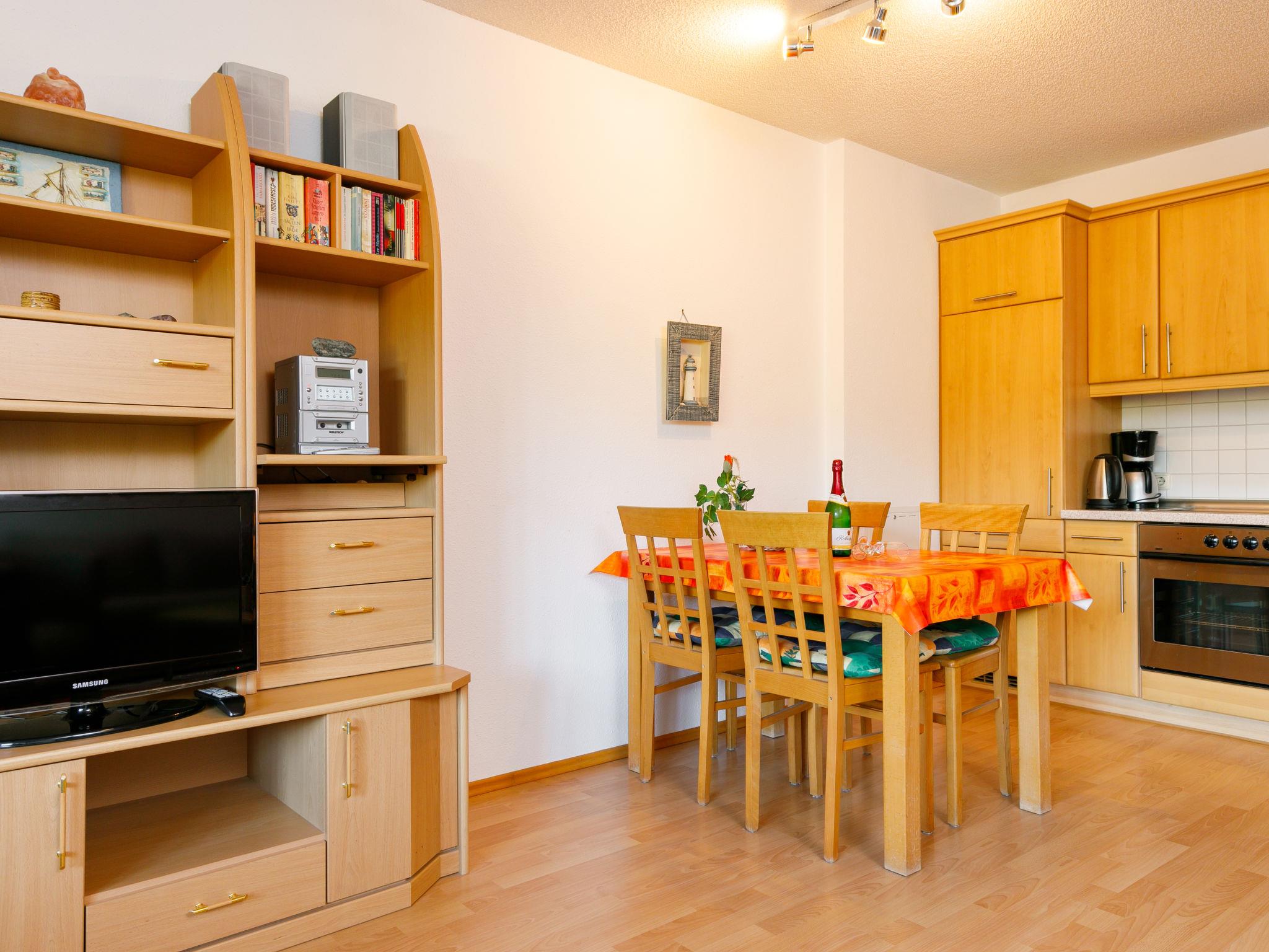 "Düneneck App.17", 1-room apartment 43 m2 on 1st floor. Tasteful and cosy furnishings: living/dining room with 2 sofabeds and cable TV (flat screen), radio. Exit to the balcony. Kitchenette (oven, dishwasher, 4 ceramic glass hob hotplates, toaster, kettle, microwave, electric coffee machine). Shower/WC. Balcony. Balcony furniture. View of the sea. Facilities: children's high chair, baby cot. Internet (WiFi, free). Parking (1 car) at the house. Please note: non-smokers only. Maximum 1 small pet/ dog allowed. Smoke alarm.