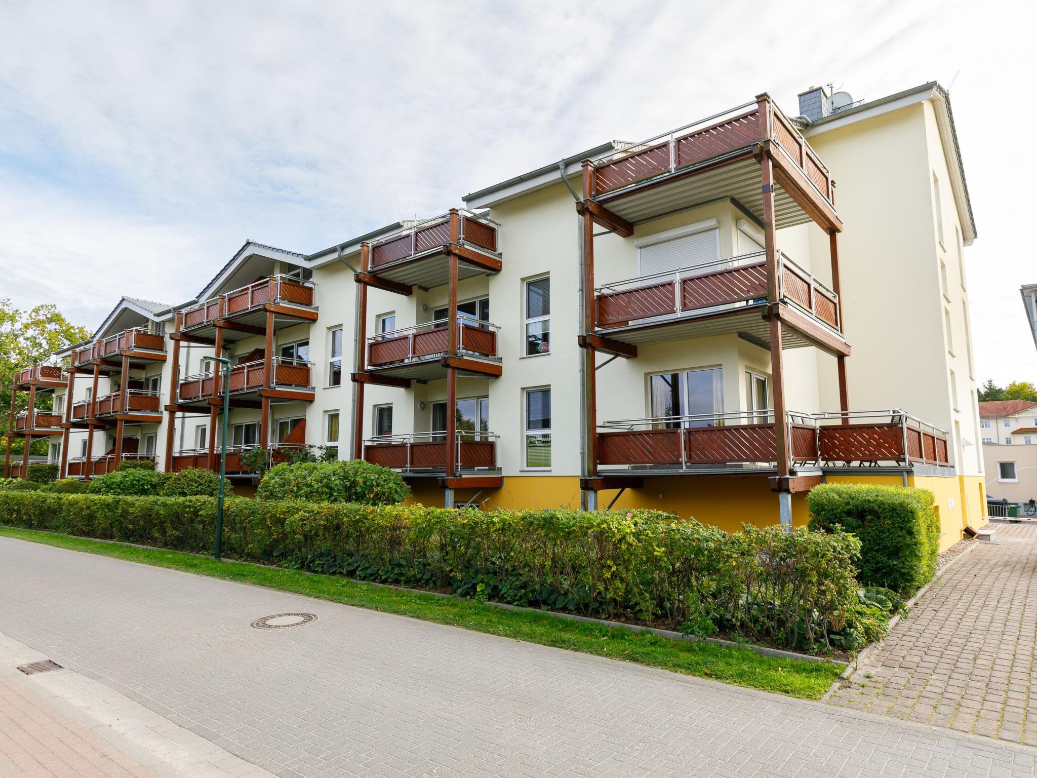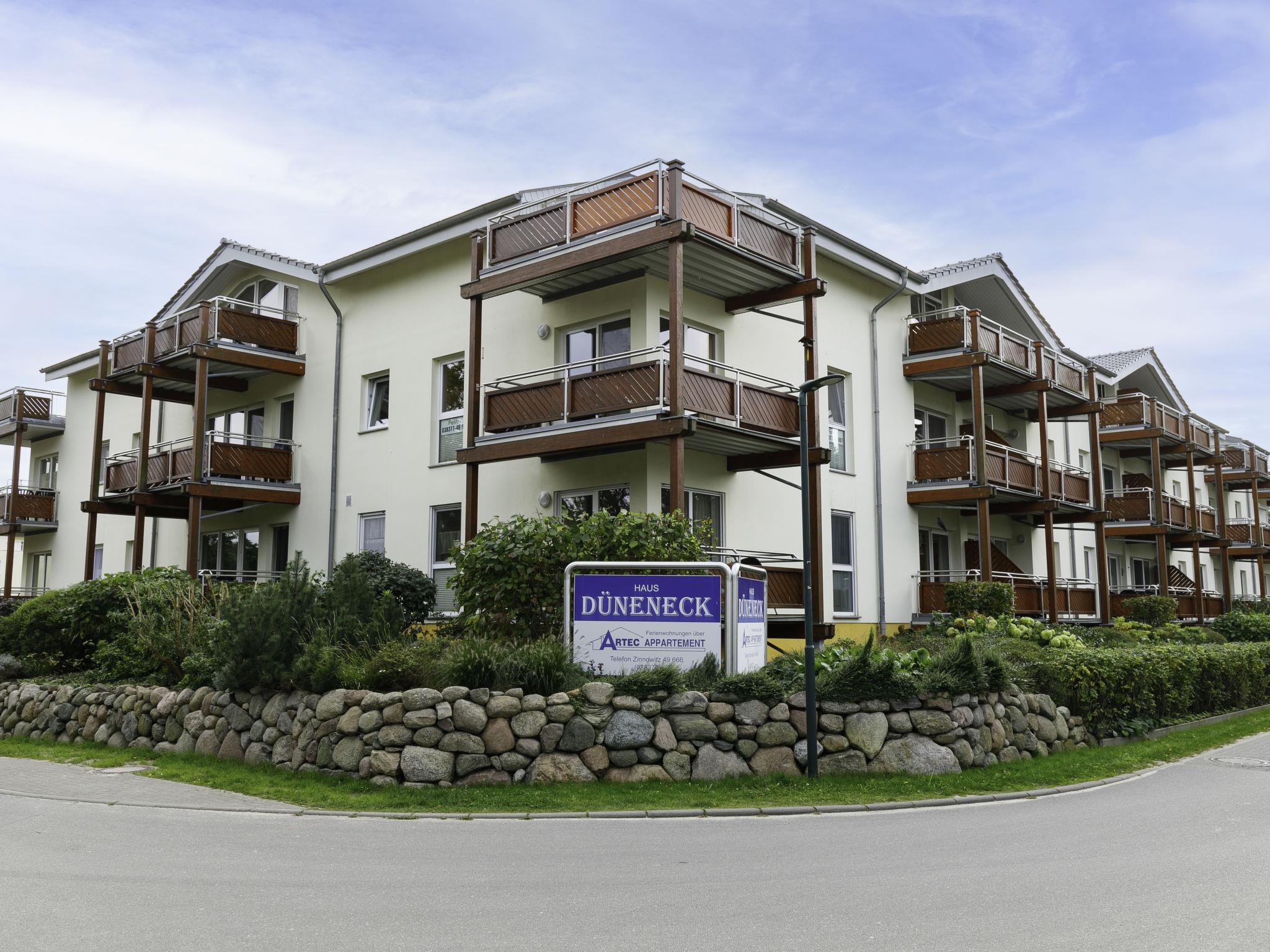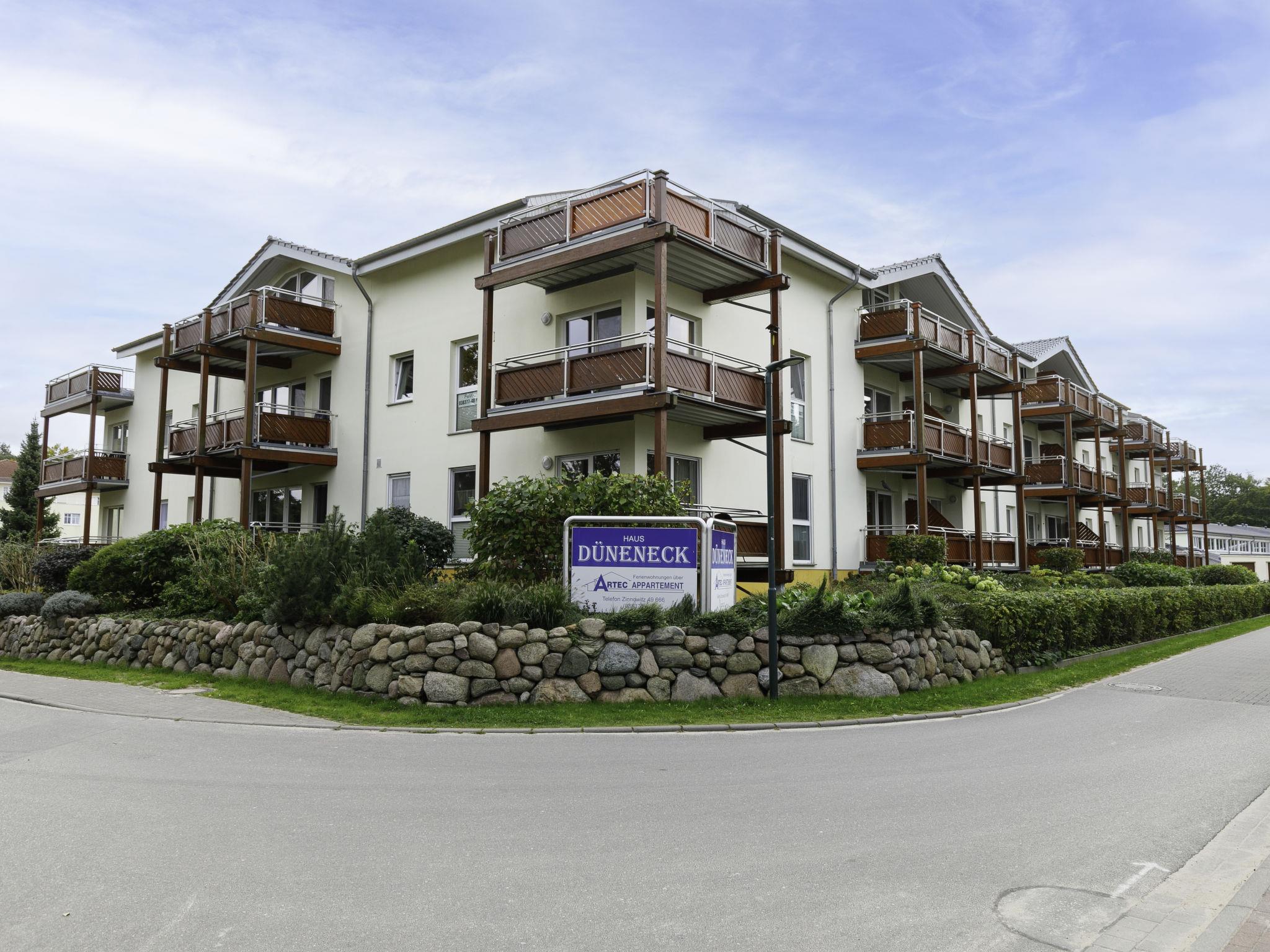 Apartment block "Düneneck", 3 storeys. In the resort 750 m from the centre of Zempin, 50 m from the sea, 50 m from the beach. In the house: storage room for bicycles, central heating system, washing machine (extra) (for shared use). Parking on the premises. Supermarket 4 km, restaurant 30 m, bakery, café 500 m, bus stop 550 m, railway station 600 m, sandy beach 50 m, thermal baths "Bernsteintherme" 4 km. Golf course (18 hole) 21 km, surf school 3.9 km, tennis 3.7 km, minigolf 3.8 km.