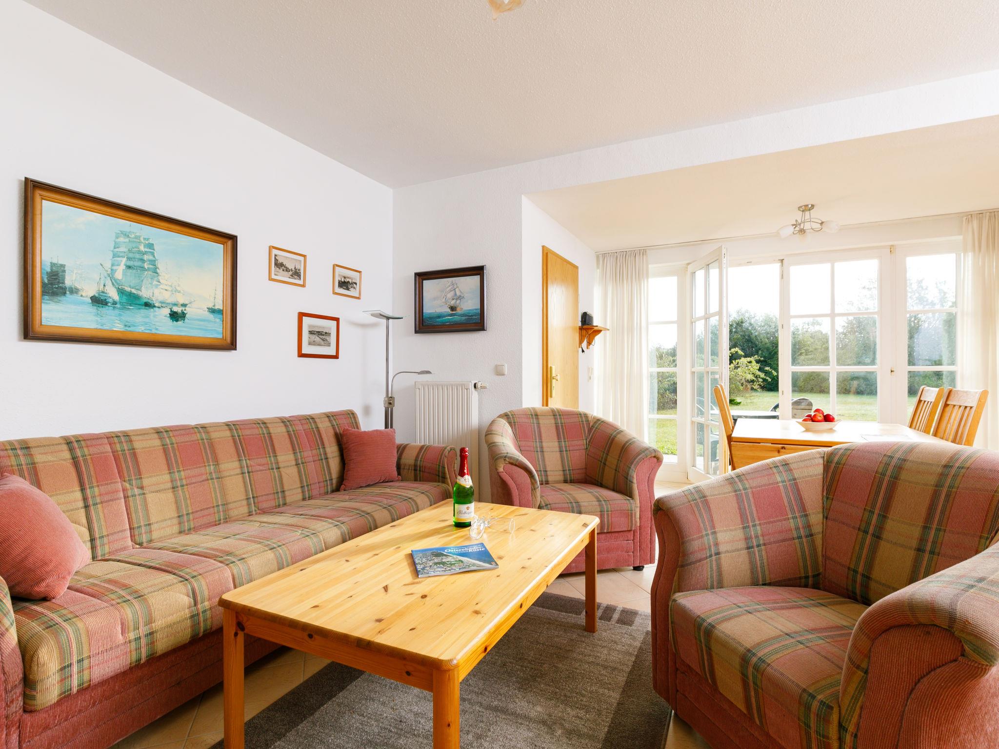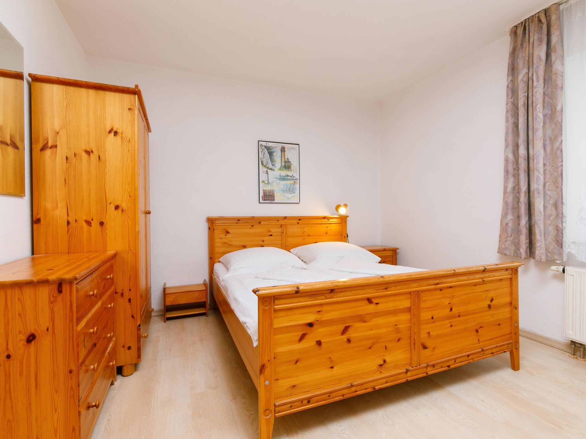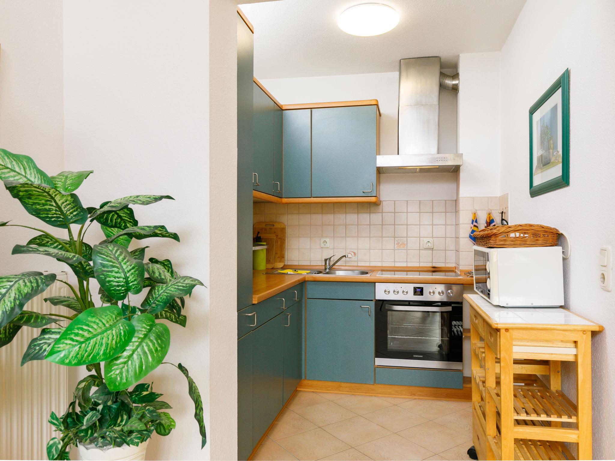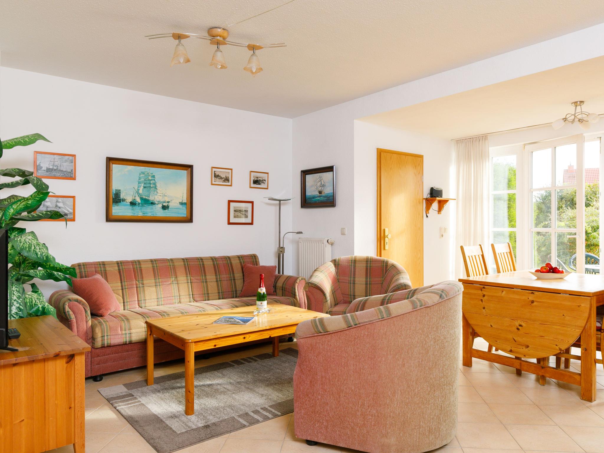 "Achterwasser App. 13", 2-room apartment 60 m2, on the ground floor. Bright, simple furnishings: living/dining room with 1 double sofabed and cable TV (flat screen), radio. Exit to the terrace. 1 room with 1 double bed. Kitchenette (4 hot plates, oven, toaster, kettle, microwave, electric coffee machine). Shower/WC. Terrace. Terrace furniture. Facilities: children's high chair, baby cot. Parking (1 car) at the house. Please note: non-smokers only. Maximum 1 pet/ dog allowed. Smoke alarm.