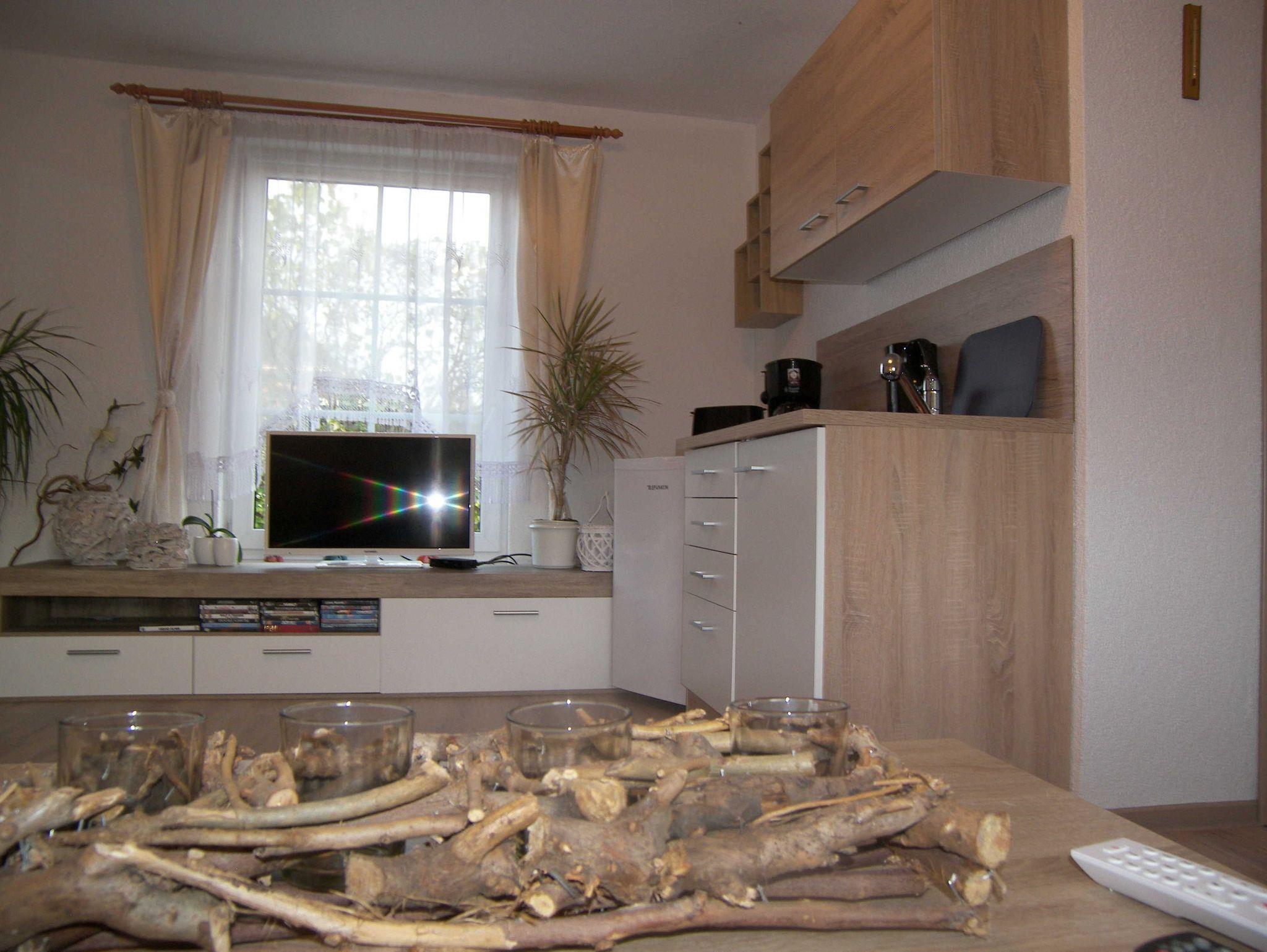 Die 35 qm große Ferienwohnung verfügt über ein Wohnzimmer mit einer gemütlichen Couch, einem Flachbildfernseher, Radio und offenen Küchenzeile. Die Küche ist ausgestattet mit 2-Platten-Herd, Kühlschrank, Wasserkocher, Toaster und Kaffeemaschine. Das separate Schlafzimmer ist mit einem Doppelbett und Kleiderschrank ausgestattet. Das Badezimmer verfügt über eine Dusche und einen Haartrockner. Draußen steht Ihnen eine ca. 40qm große Terrasse inklusive Sonnenschirm, Wäschespinne, Grill, Fahrradunterstellmöglichkeit und diversen Sitzmöbeln zur Verfügung. Fahrräder können vor Ort kostenpflichtig ausgeliehen werden.