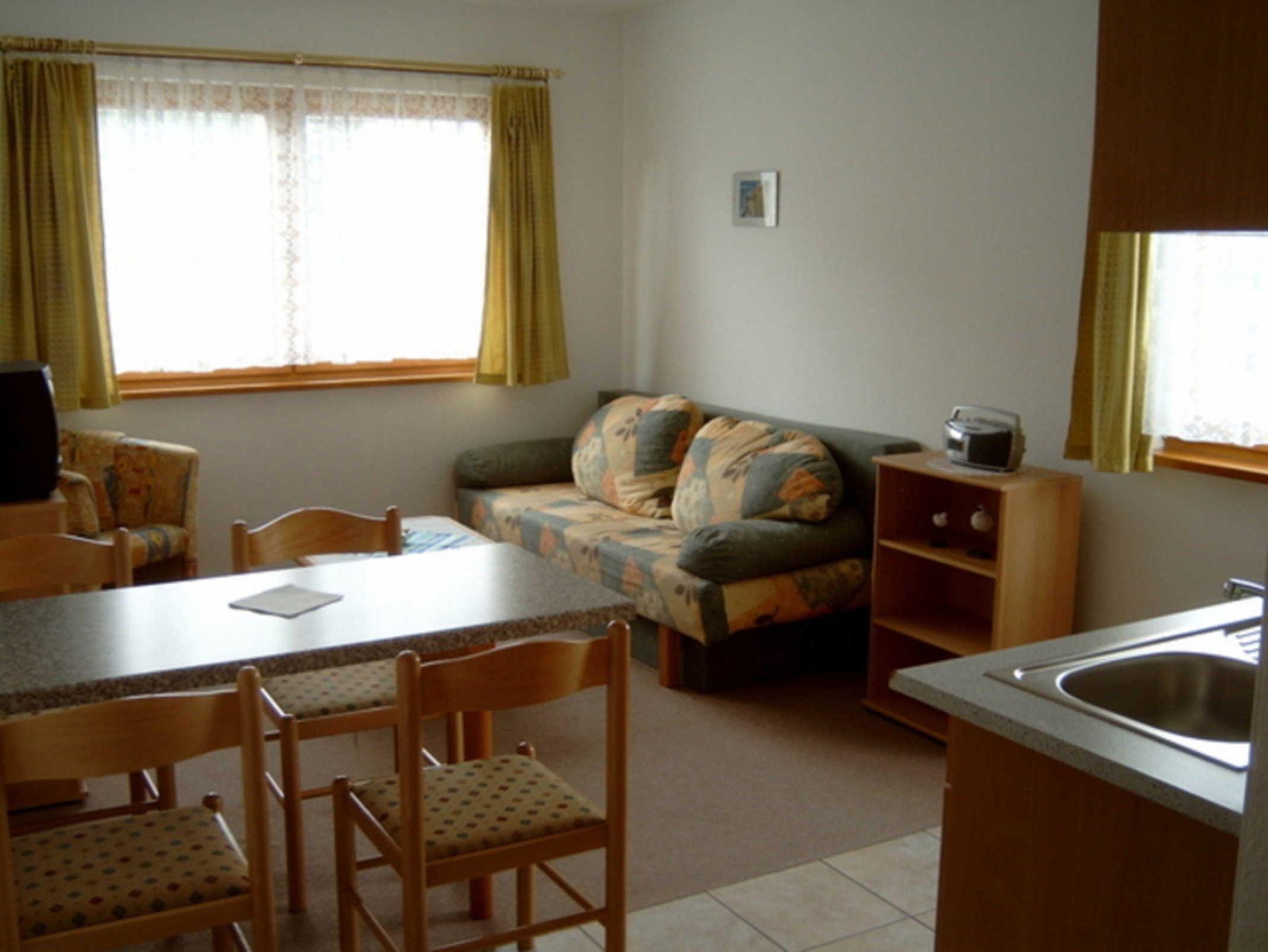 - Wohnzimmer mit ausklappbare Couch, Couchtisch, TV / Radio, Anrichte