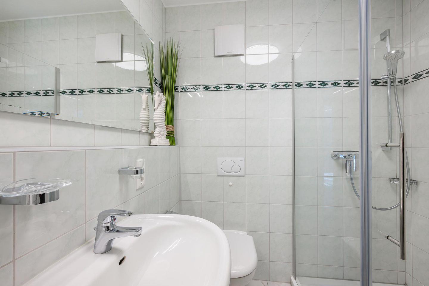 Das moderne Badezimmer verfügt über eine Dusche und sorgt für einen angenehmen Start in den Tag. Für längere Aufenthalte stehen im Haus eine Waschmaschine und ein Trockner gegen Gebühr zur Verfügung. Ein abschließbarer Fahrradraum bietet zudem eine sichere Unterbringung für Ihre Fahrräder.