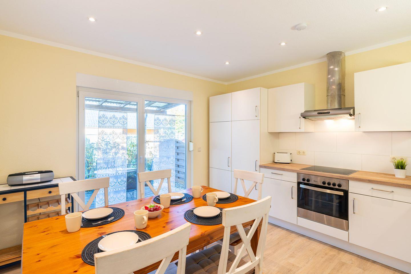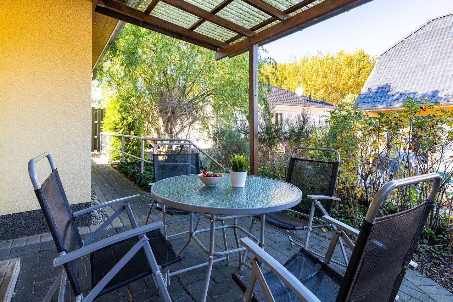 Genießen Sie entspannte Stunden auf der großzügigen Terrasse, die mit Gartenmöbeln ausgestattet ist – perfekt für ein ausgedehntes Frühstück an der frischen Ostseeluft oder einen gemütlichen Grillabend. Die ruhige Lage in einer Nebenstraße macht das Ferienhaus zu einem echten Erholungsort.