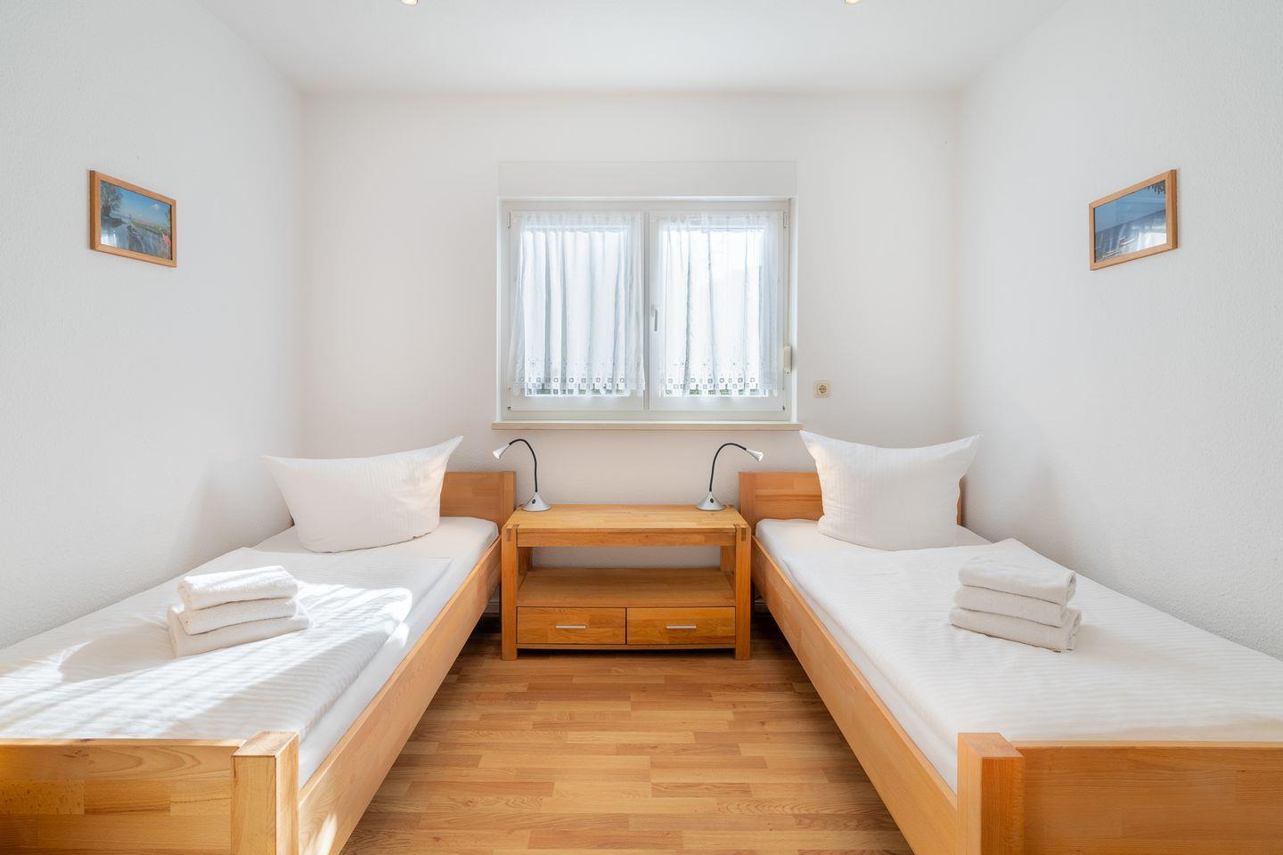 Das Ferienhaus erstreckt sich über zwei Etagen und verfügt über drei Schlafzimmer, die Ihnen erholsame Nächte garantieren. Zwei Schlafzimmer sind mit gemütlichen Doppelbetten ausgestattet, während das dritte Zimmer mit einem Einzelbett eine perfekte Rückzugsmöglichkeit bietet. Hochwertige Matratzen und liebevoll gestaltete Räume sorgen für eine angenehme Wohlfühlatmosphäre. Alle Betten sind bei Ihrer Ankunft bereits frisch bezogen.