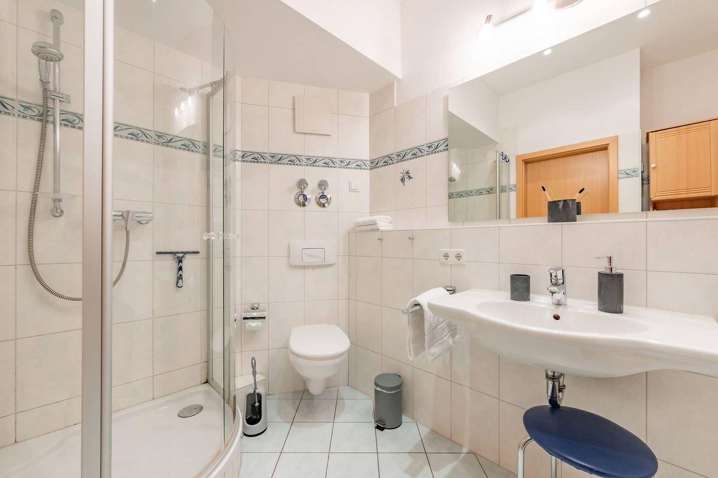 Das moderne Badezimmer ist funktional gestaltet und verfügt über eine ebenerdige Dusche sowie eine Badewanne, die Ihnen nach einem aktiven Tag an der Ostsee Entspannung pur bieten. WLAN ist in der gesamten Ferienwohnung kostenfrei verfügbar, sodass Sie auch im Urlaub jederzeit online bleiben können. Für Ihre Wäsche stehen Ihnen im Haus eine Waschmaschine und ein Trockner gegen Gebühr zur Verfügung. Ein reservierter Stellplatz garantiert zudem eine unkomplizierte Anreise.