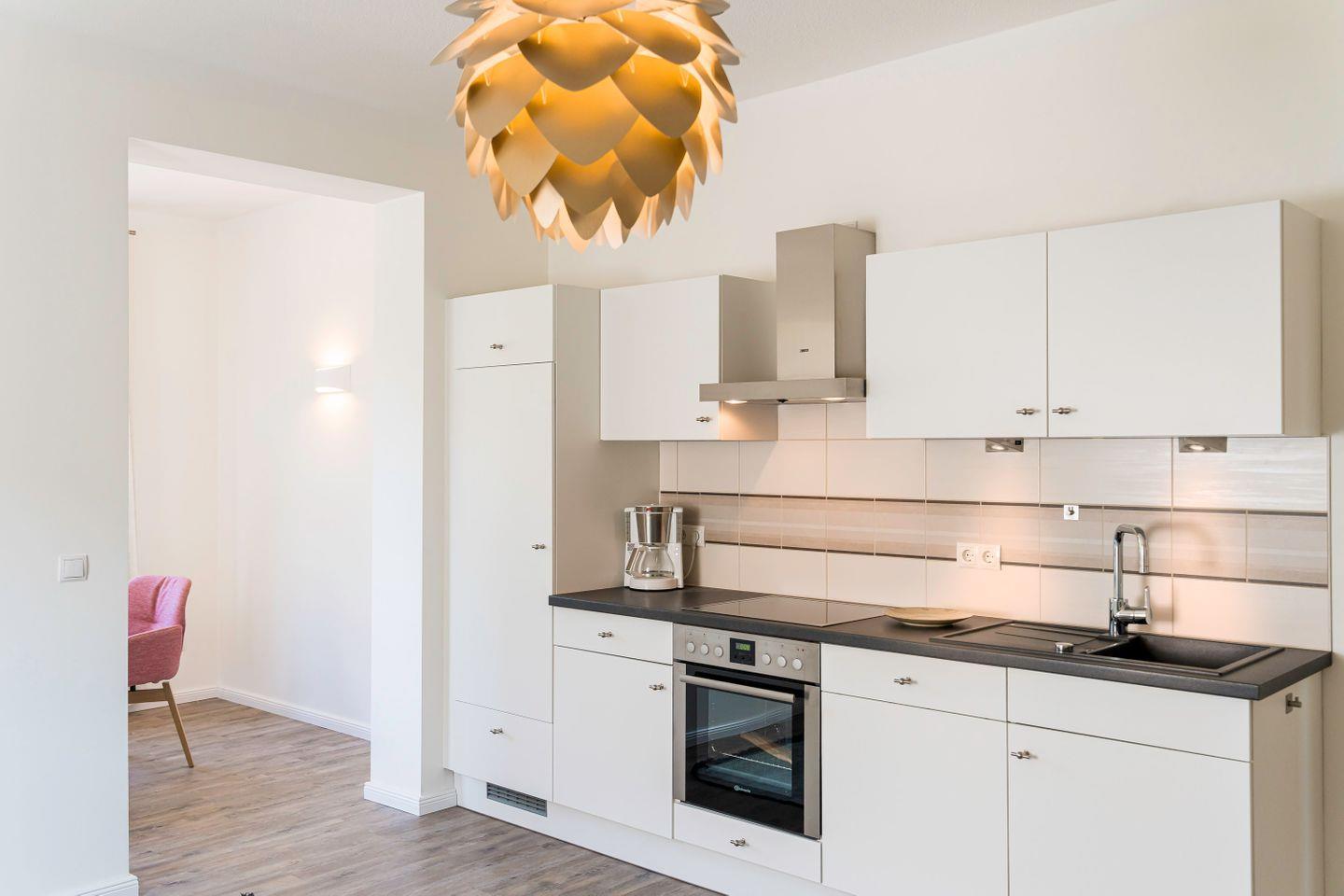 Das stilvolle Interieur, kuratiert von der renommierten Firma Green Living, schafft eine Atmosphäre von Gemütlichkeit und Eleganz. Hochwertige Möbel und liebevolle Dekorationselemente unterstreichen den Wohlfühlcharakter der Wohnung und laden zum Verweilen ein. Im separaten Schlafzimmer erwartet Sie ein komfortables Doppelbett mit einer Liegefläche von 1,40m x 2,00m, ein geräumiger Kleiderschrank für Ihre Urlaubsgarderobe sowie eine Verdunklungsmöglichkeit für einen erholsamen und tiefen Schlaf nach erlebnisreichen Tagen. Das moderne Tageslichtbad ist mit einer erfrischenden Regendusche nebst Handtuchheizkörper ausgestattet. Für einen sorgenfreien Start in Ihren wohlverdienten Urlaub ist eine durchdachte Grundausstattung an allen wichtigen Dingen bereits vorhanden, damit Sie sich vom ersten Moment an wie zuhause fühlen können.