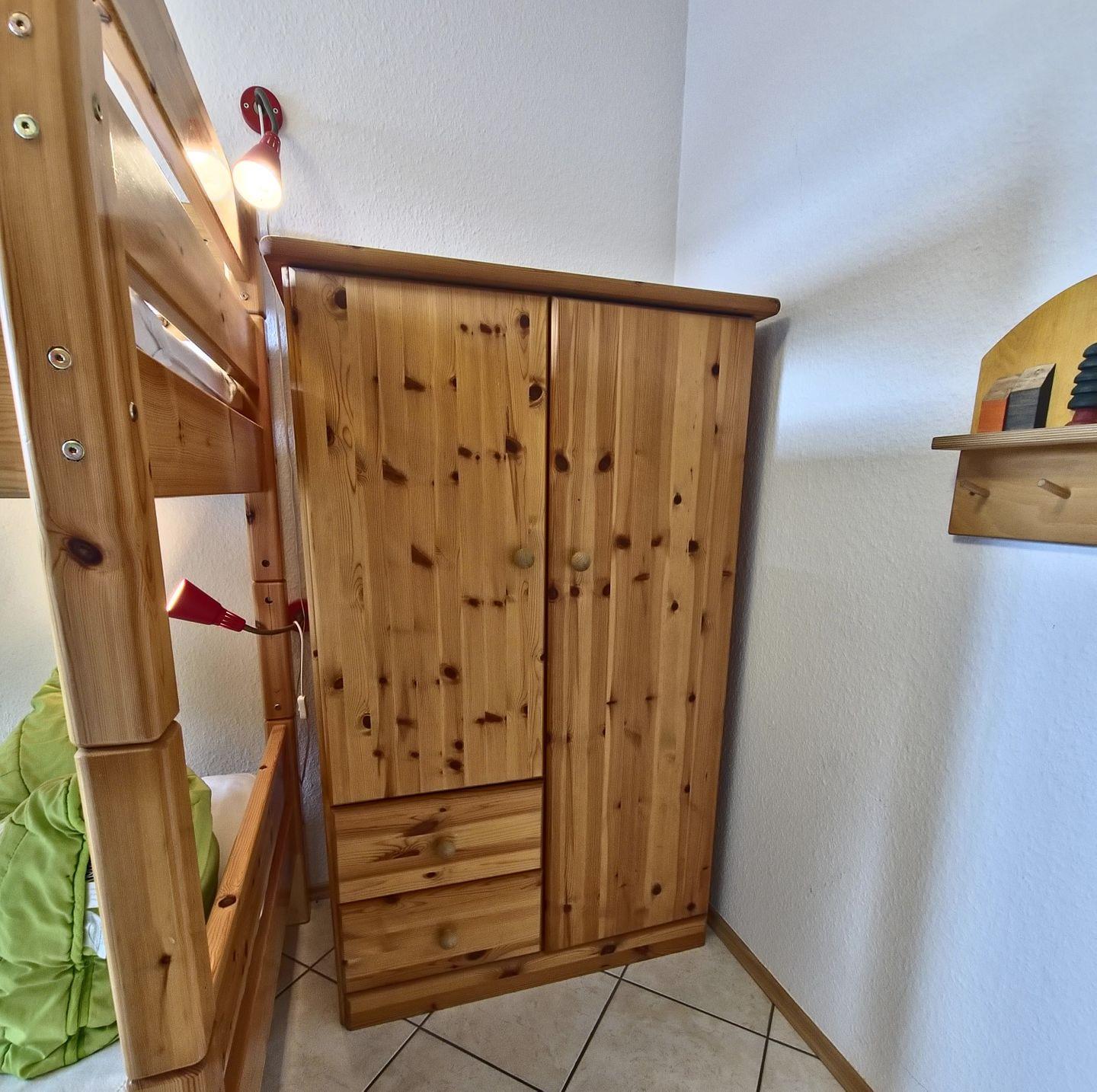 - **Schlafzimmer:** Das Schlafzimmer ist mit einem großen Bett ausgestattet, während das Kinderzimmer ein Etagenbett bietet. Für die Kleinsten steht ein Babybett zur Verfügung.