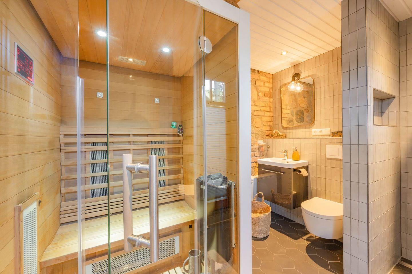 Gemeinschafts-Sauna auf dem Grundstück kann kostenpflichtig genutzt werden mit maximal 2 Personen. Die Nutzung der Sauna muss zwecks Einweisung angemeldet werden. Weitere Information erhalten Sie bei Anreise / Schlüsselübergabe.