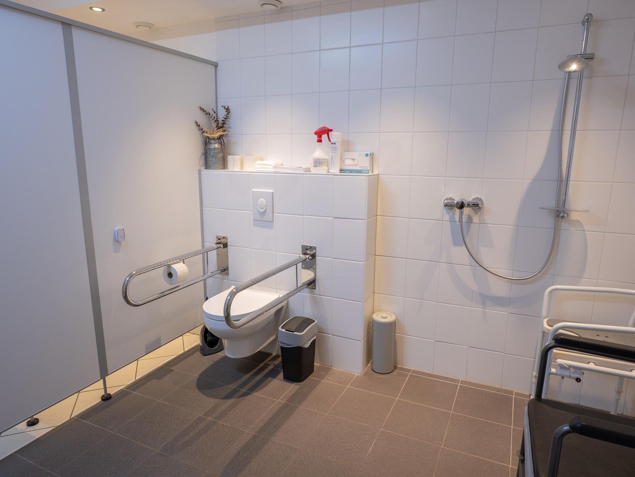 Haartrockner, Duschstuhl, Toilettenstuhl und Toilettensitzerhöhung sind selbstverständlich vorhanden.