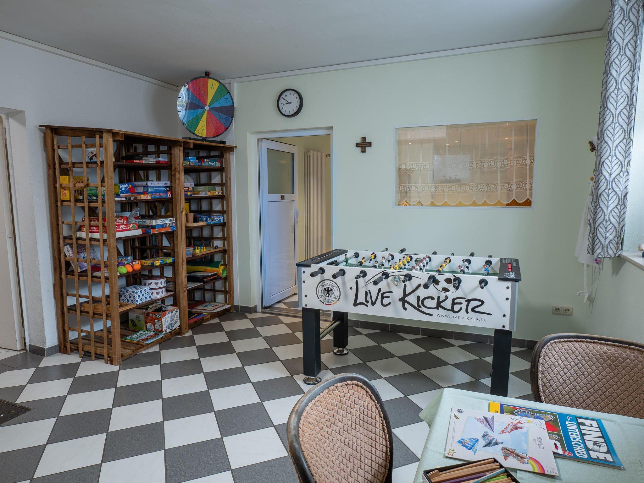 Auch für Unterhaltung ist gesorgt: Im Haus stehen ein Kicker sowie verschiedene Gesellschaftsspiele für gemeinsame Abende zur Verfügung. Außerdem gibt es einen Fernseher und kostenloses WLAN.
