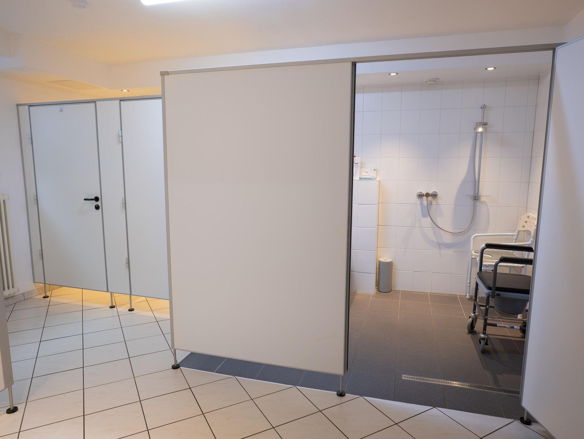 • Sanitärbereich 2: Mit behindertengerechter Dusche, behindertengerechter Toilette sowie zwei weiteren separat abgetrennten Toiletten