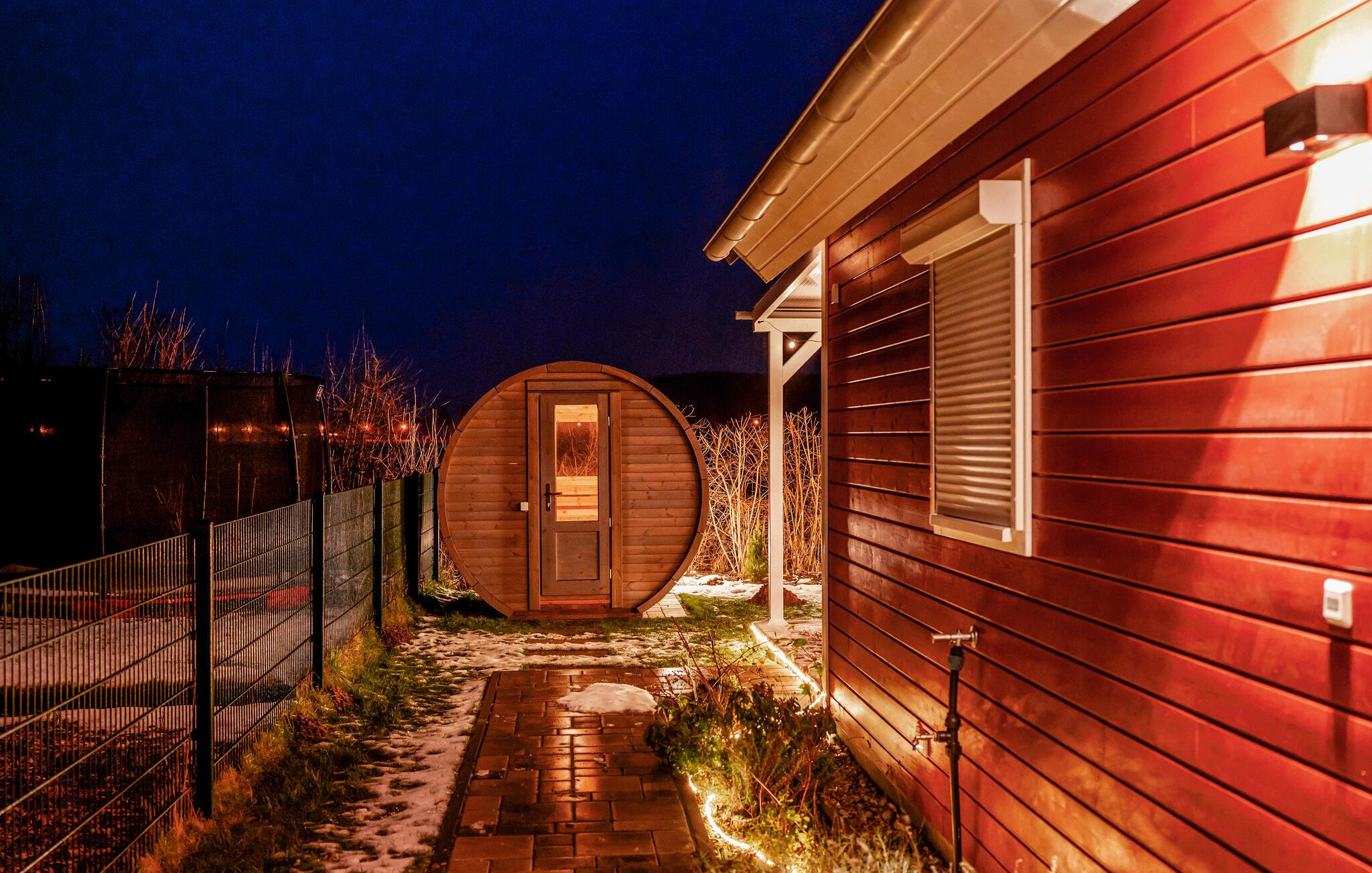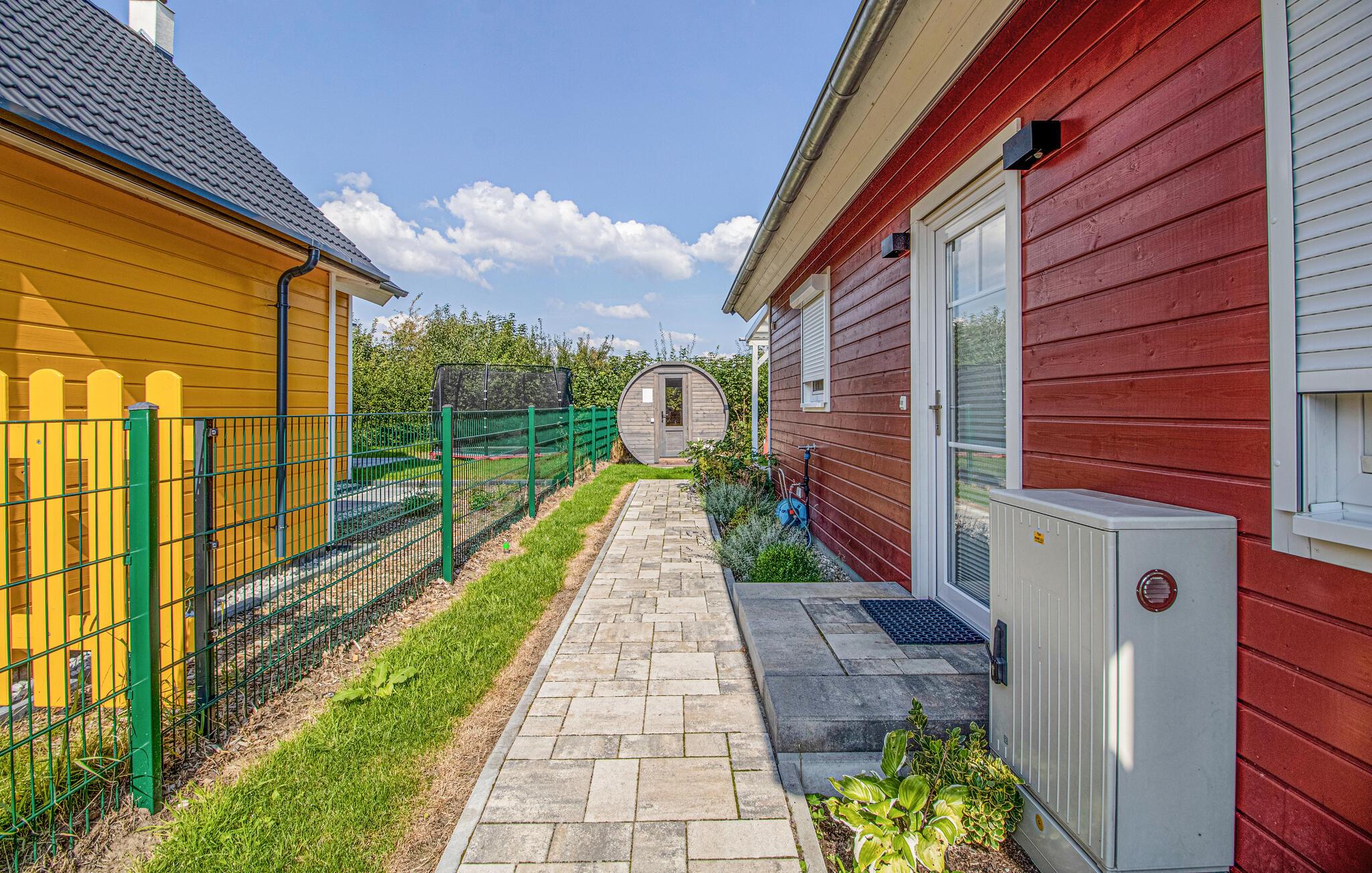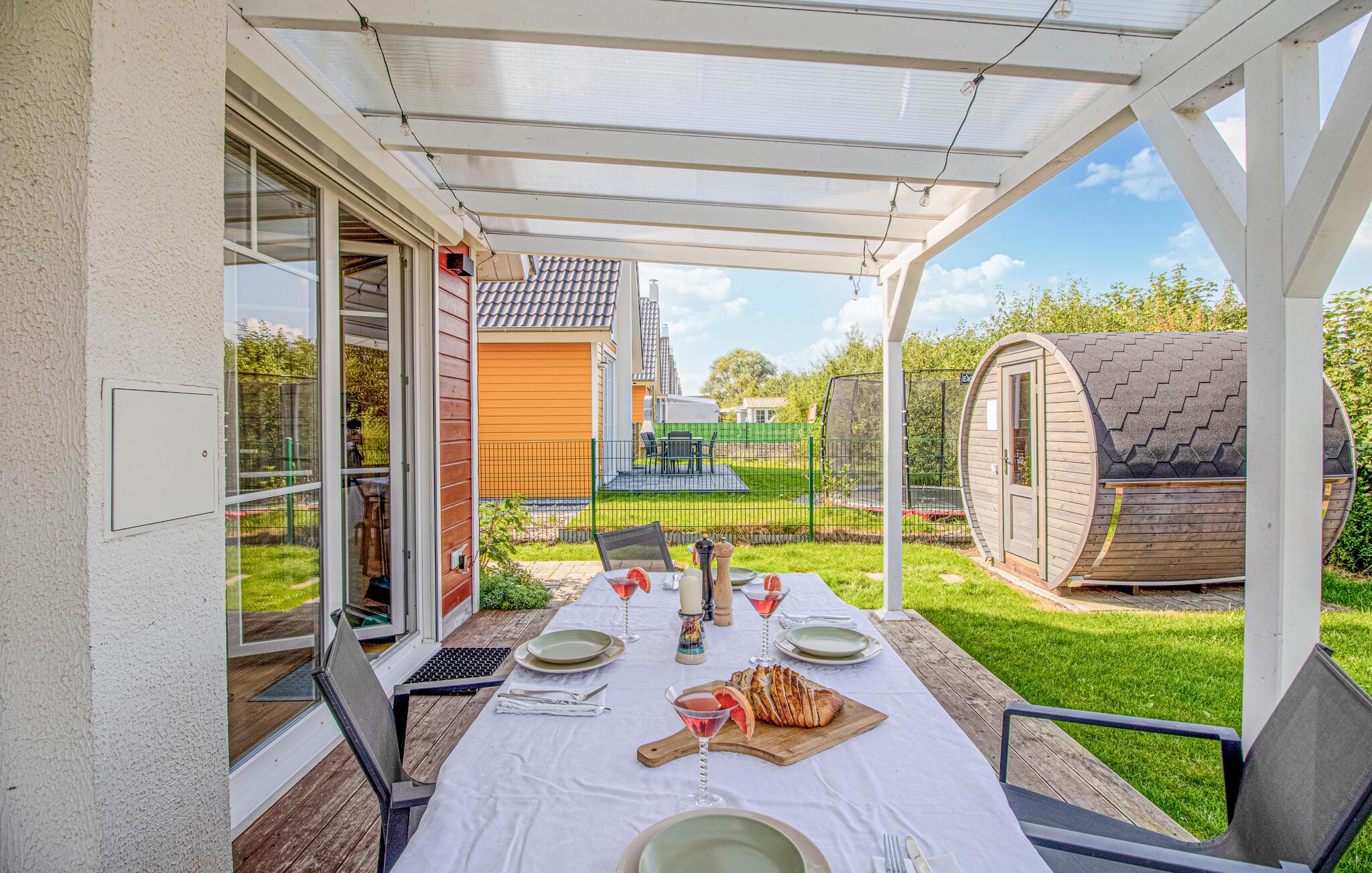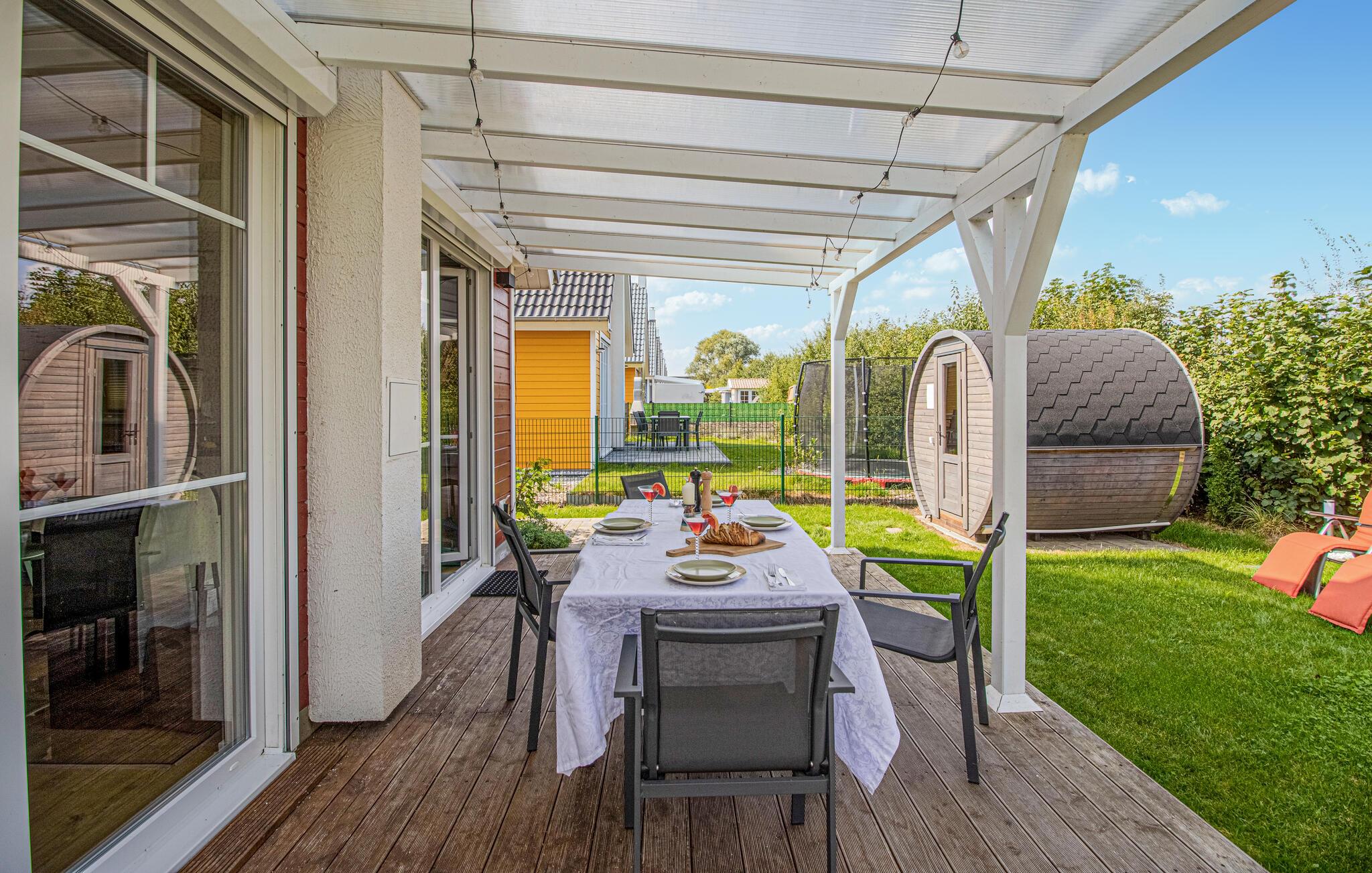 Du kan njuta av solen och den friska luften i din egen trädgård eller på terrassen, som är täckt av en pergola i trä. Tillbringa sällskapliga kvällar på terrassen, gör dig bekväm under pergolan eller grilla och gör planer för dina semesterutflykter.