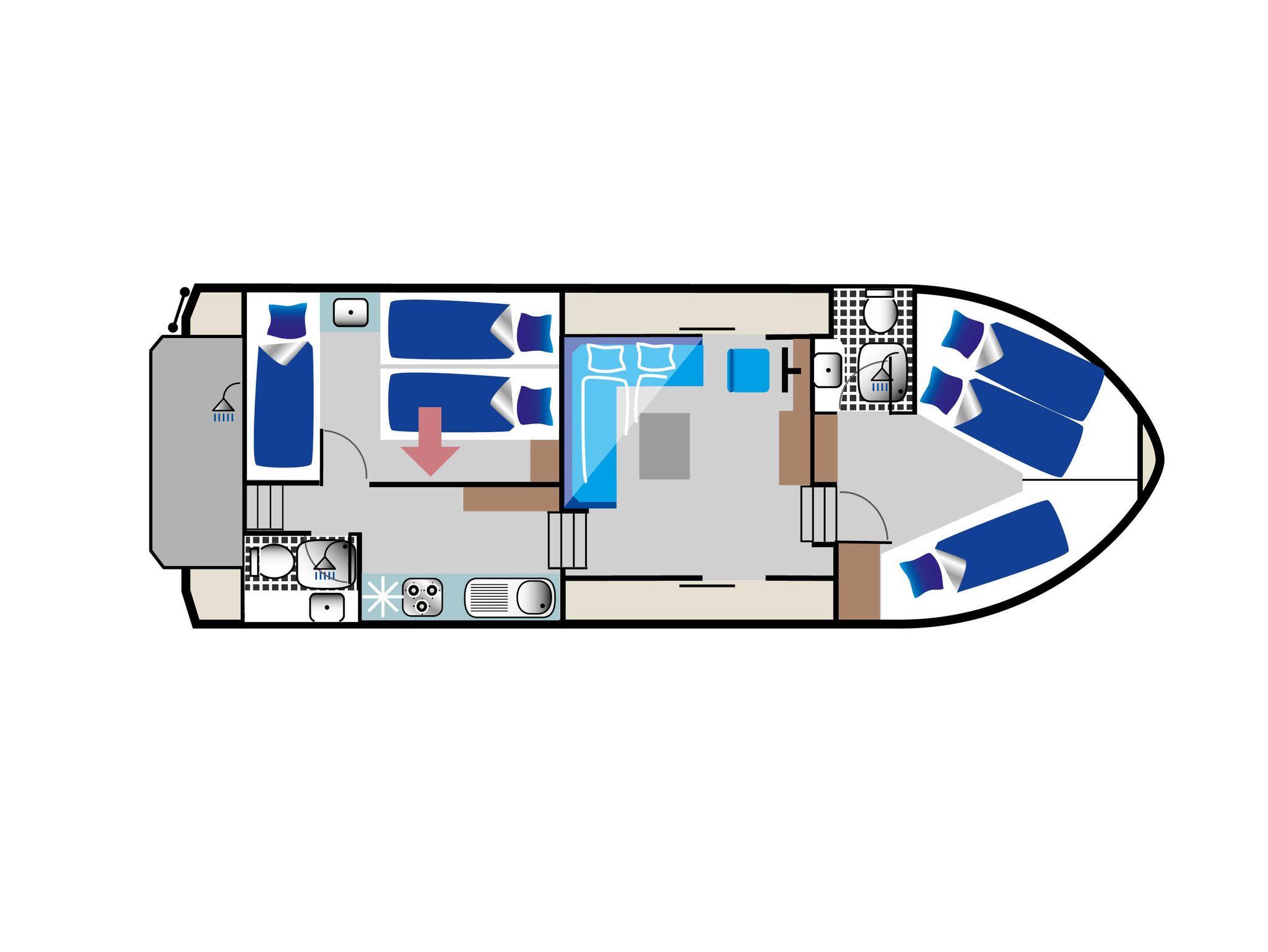 Dieses moderne Hausboot im traditionellen Stil ist leicht zu manövrieren und bietet allen Komfort über und unter Deck. Es ist ideal für drei Paare oder mehrere Familien.