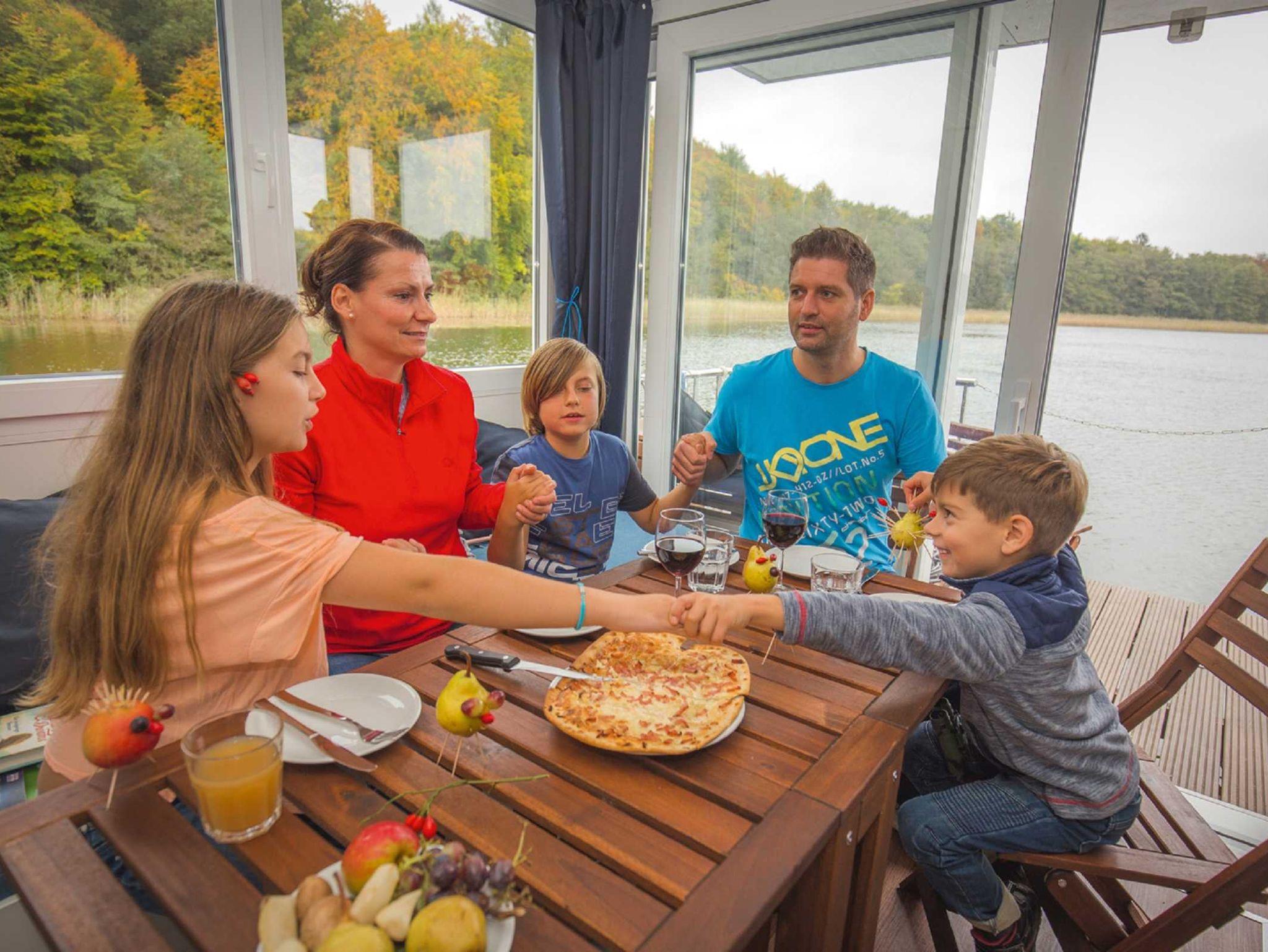 Das große Febomobil ist perfekt für Familien oder Menschen mit eingeschränkter Mobilität. Das Ferienhaus auf dem Wasser bietet Ihnen alle Annehmlichkeiten von großem Schlafzimmer bis zur voll ausgestatteten Küche.