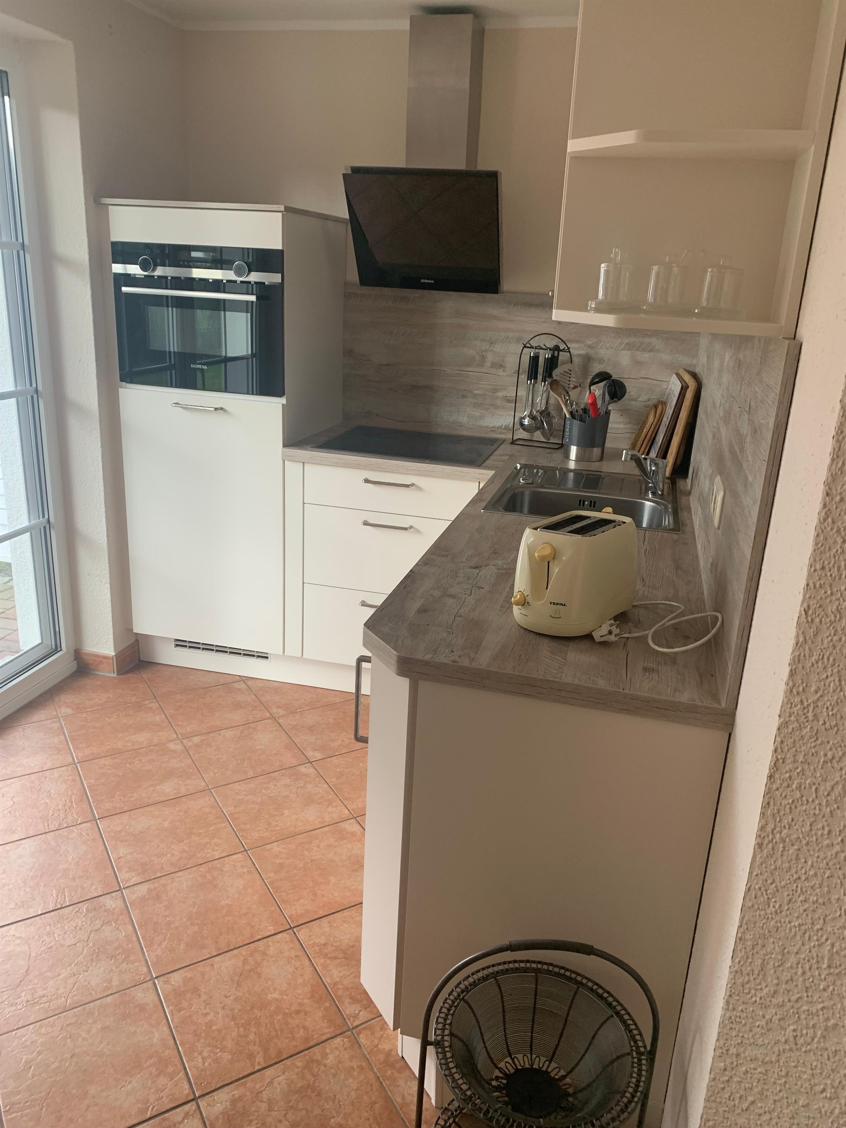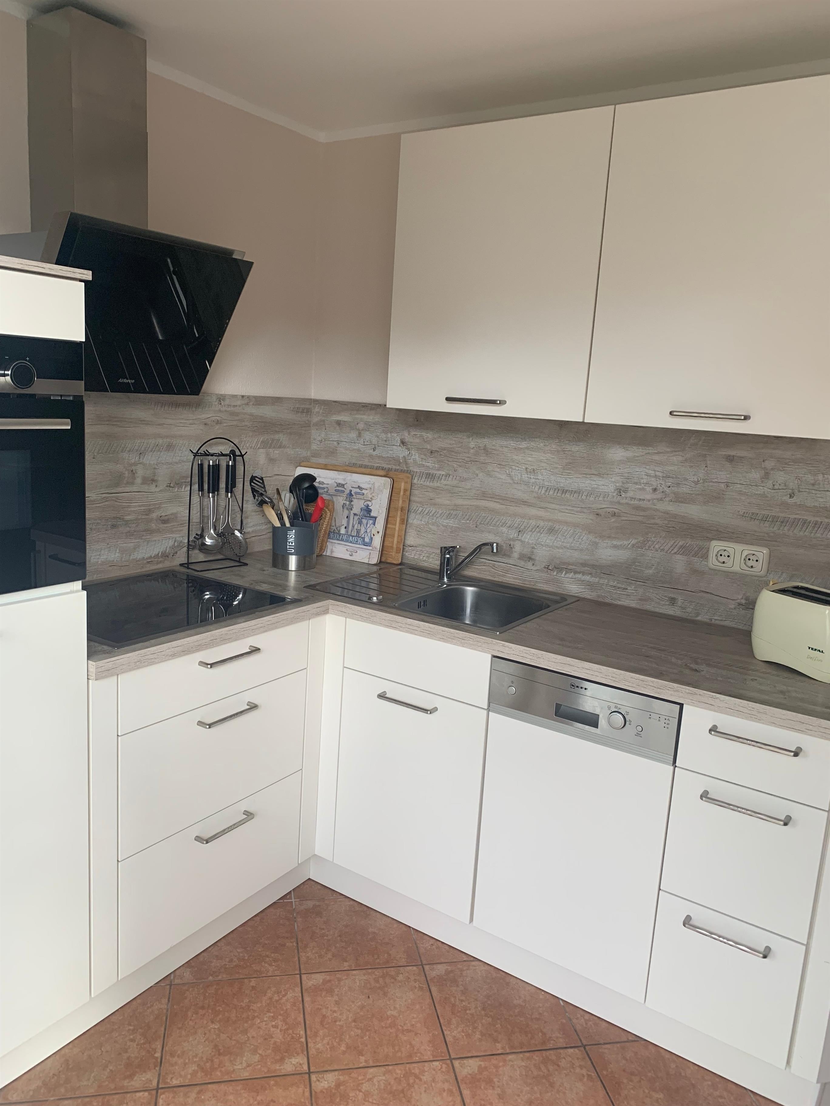 Offene, voll ausgestattete Küche – bereiten Sie Ihre Lieblingsgerichte zu und genießen Sie sie gemeinsam im stilvollen Essbereich oder auf der sonnigen Terrasse.