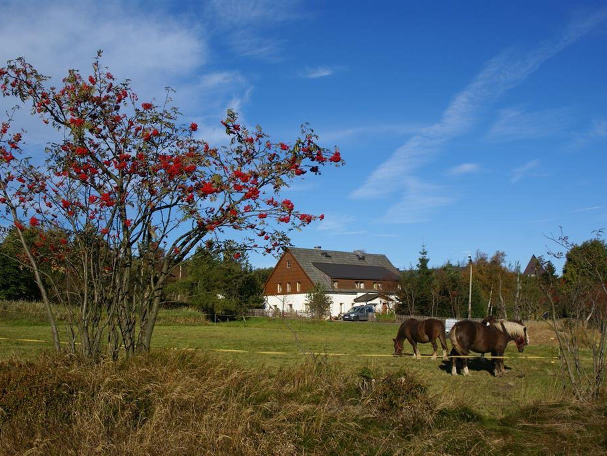 Die Ferienwohnung befindet sich im Untergeschoss eines restaurierten Landhauses, welches am Rande des Ortes Zinnwald-Georgenfeld im Osterzgebirge, ca 50km südlich von Dresden liegt.