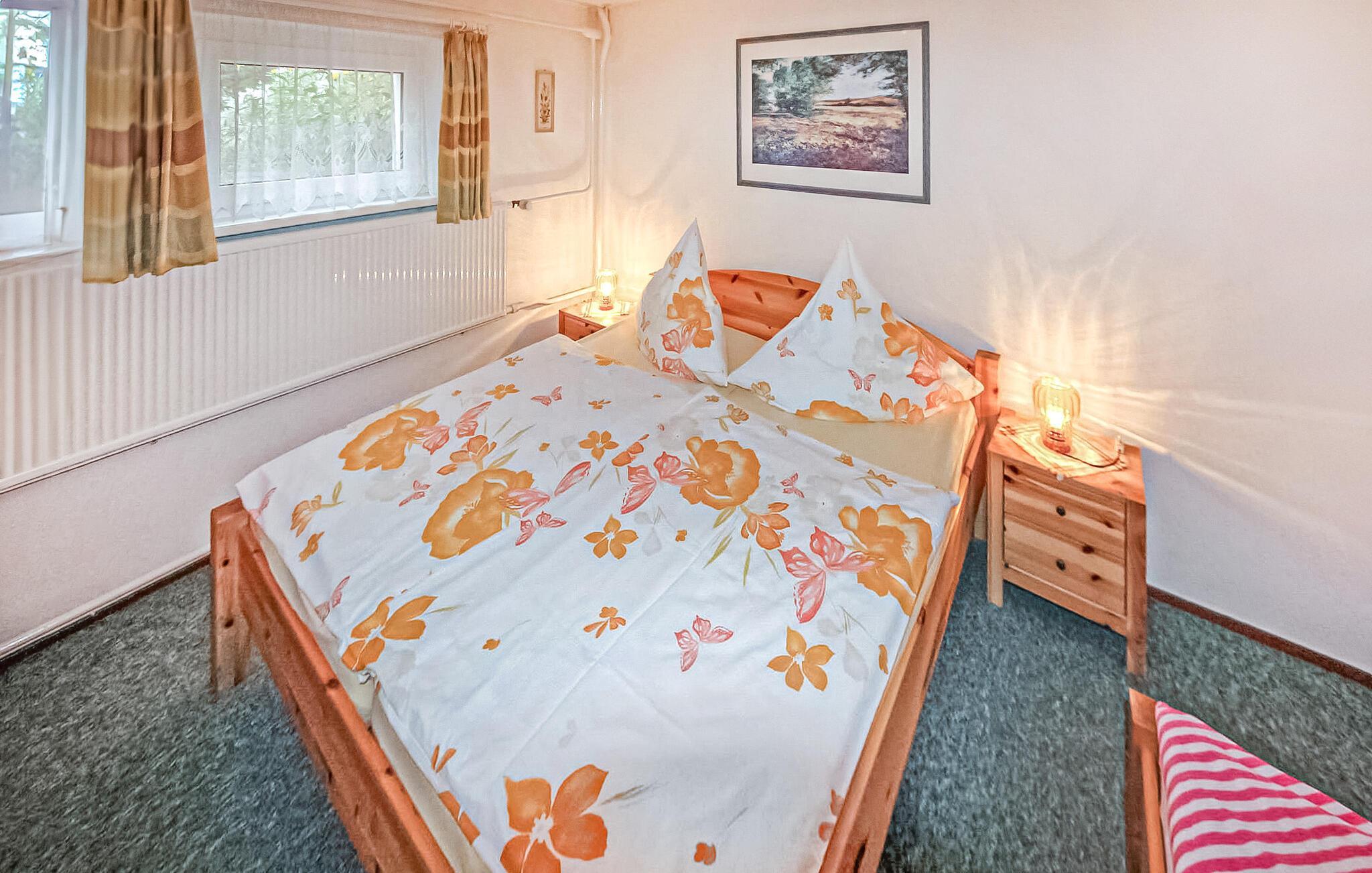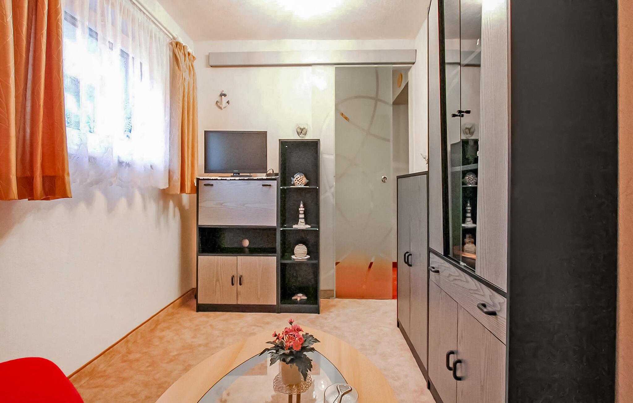 Den ca 53 kvadratmeter stora semesterlägenheten ligger i källaren i ägarens hus på en helt inhägnad tomt på ca 1400 kvadratmeter. Det är ca 500 meter till affärer, ca 2 km till en restaurang och ca 7 km till Östersjöstranden. Semesterlägenheten har en separat ingång, erbjuder plats för upp till 3 personer och är utrustad med ett vardagsrum med stoppade möbler, platt-TV och radio samt ett litet kök med elektrisk spis (2 kokplattor), kylskåp med frysfack, mikrovågsugn, diverse små köksmaskiner och matplats. Lägenheten har också ett sovrum med dubbelsäng och enkelsäng samt ett badrum med WC, dusch och hårtork. Lägenheten är utrustad med centralvärme. Rökning är endast tillåten utomhus och är också tillgänglig: W-LAN, sittgrupp i trädgården med grill, cykelförråd, parkering.I det totala priset ingår: Sängkläder, handdukar, vatten- och energiförbrukning.