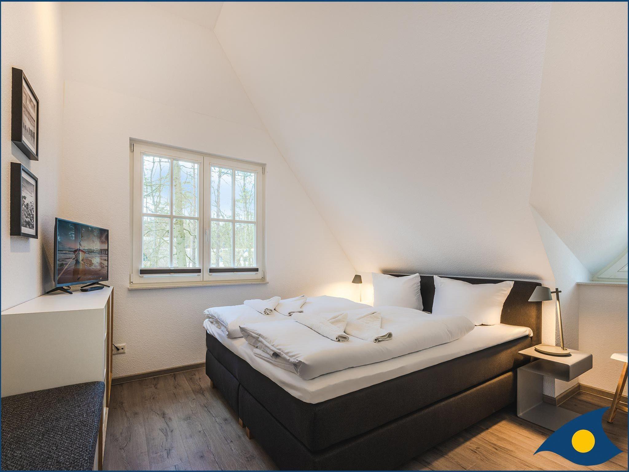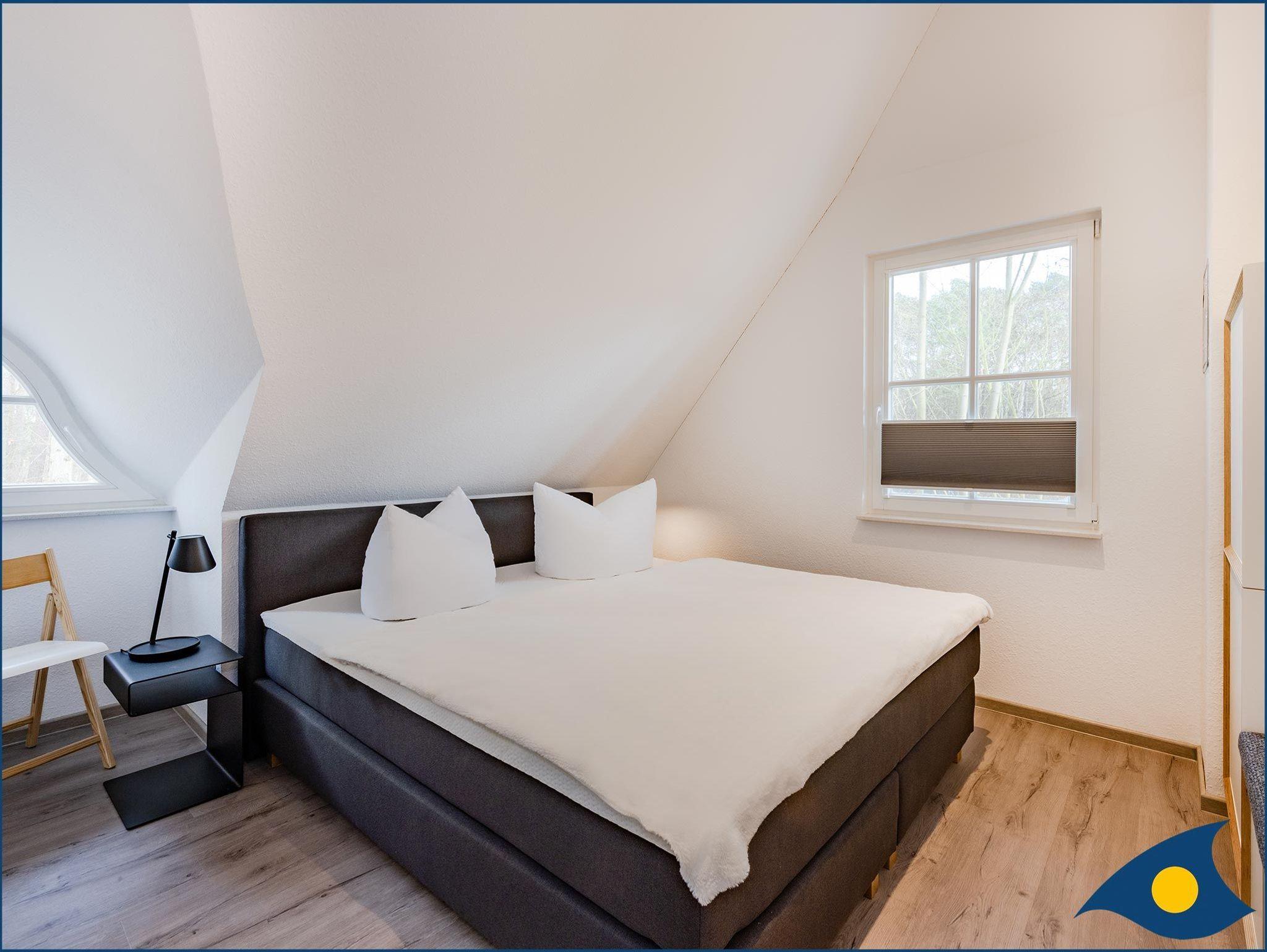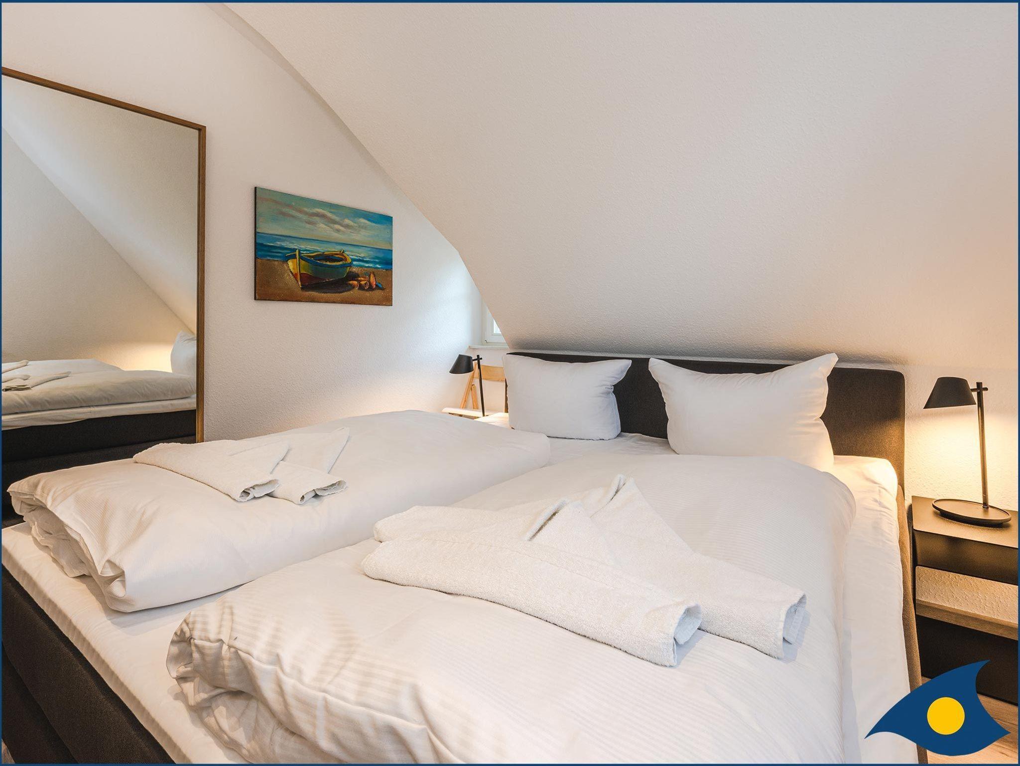Im Obergeschoss befinden sich vier Schlafzimmer mit ausreichend Strauraum für Ihre privaten Sachen. Dabei sind zwei Schlafzimmer mit je einem Doppelbett, ein Schlafzimmer mit einer hochwertigen Schlafcouch (1,60x2,00m) und ein Schlafzimmer mit zwei Einzelbetten und einem Schreibtisch ausgestattet. Im großzügigen Badezimmer finden Sie eine Badewanne, eine ebenerdige Dusch und ein Bidet.