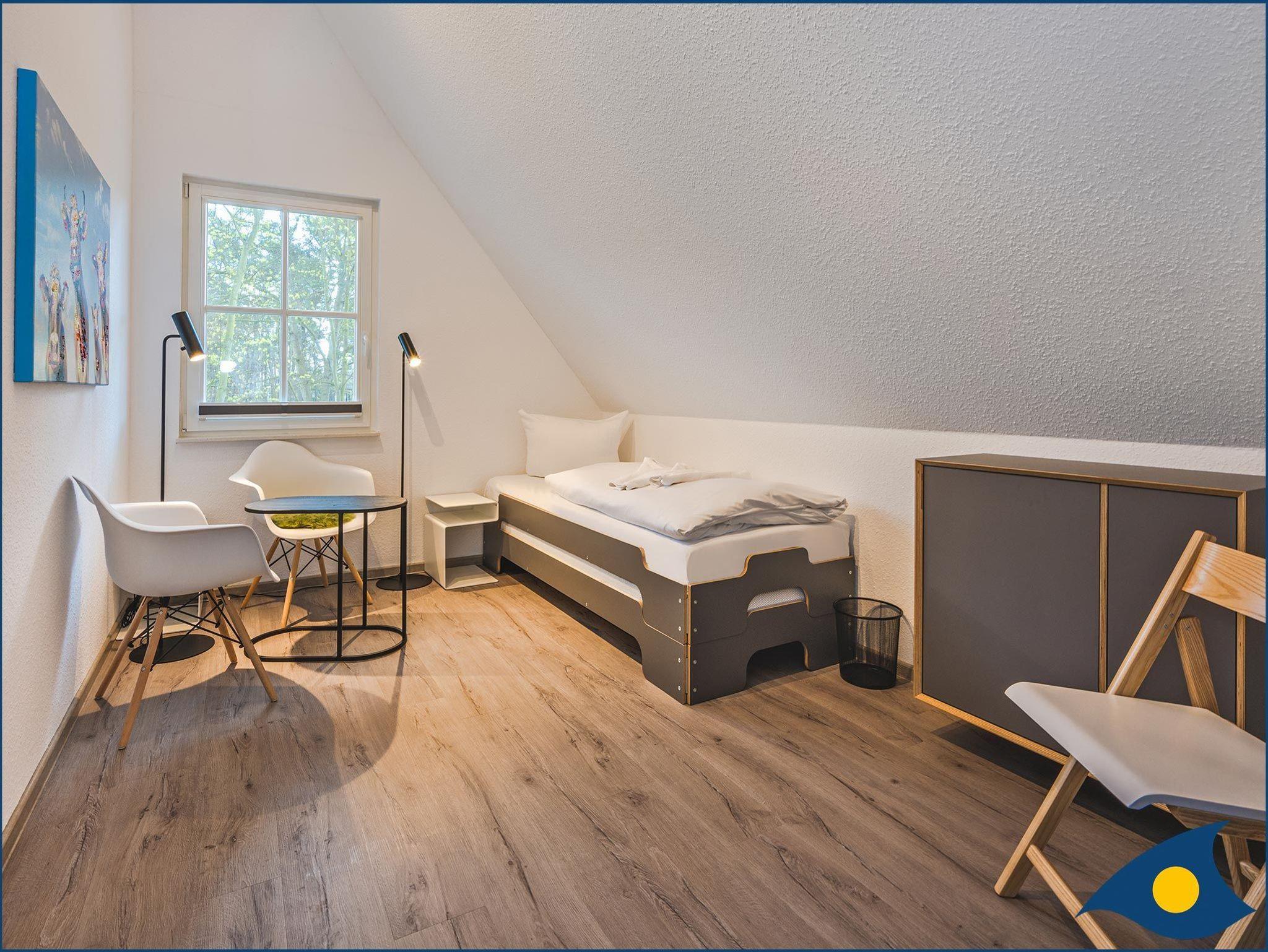 • 1 Schlafzimmer mit zwei Einzelbetten (Stappelbett) und Schreibtisch