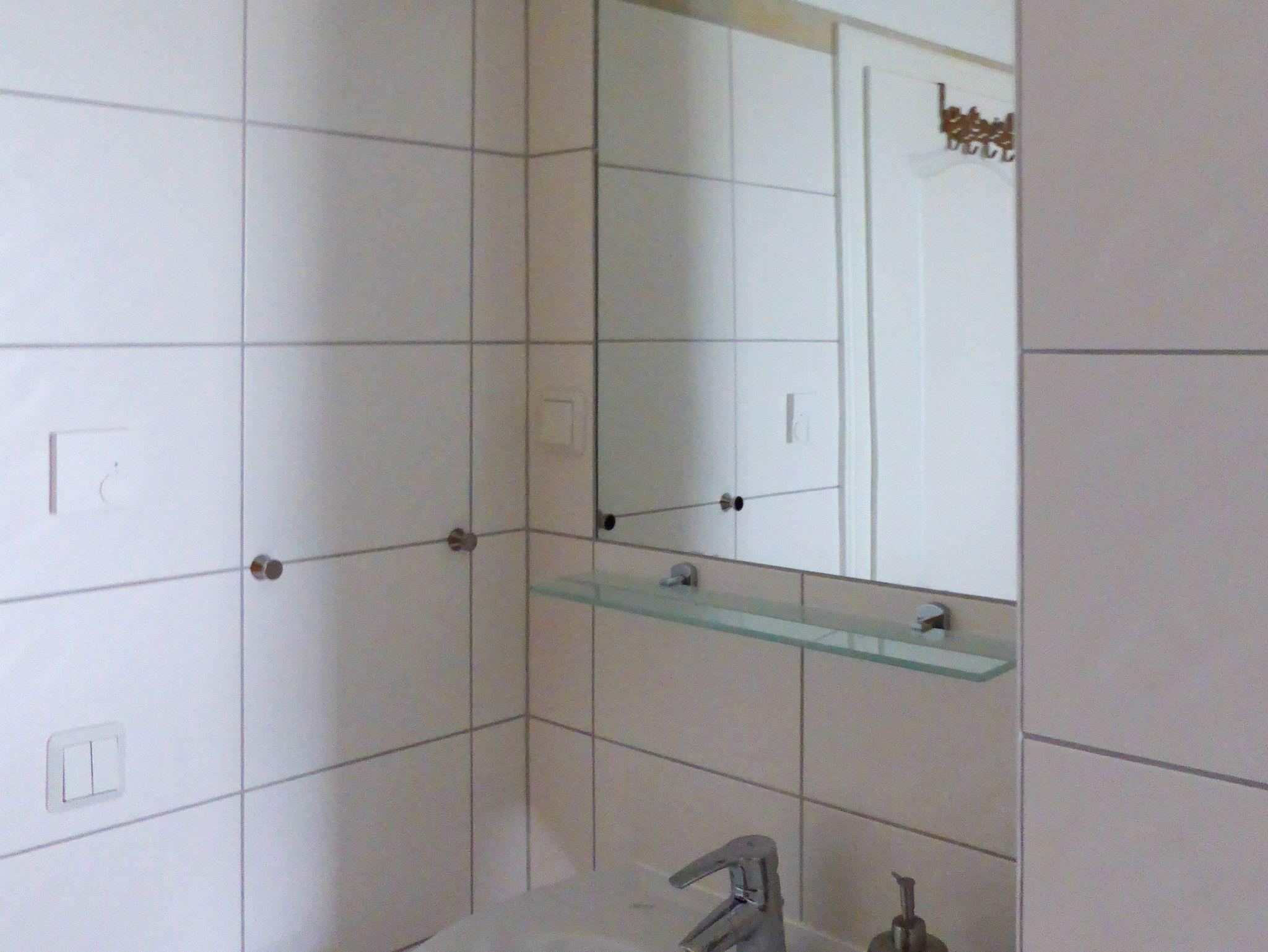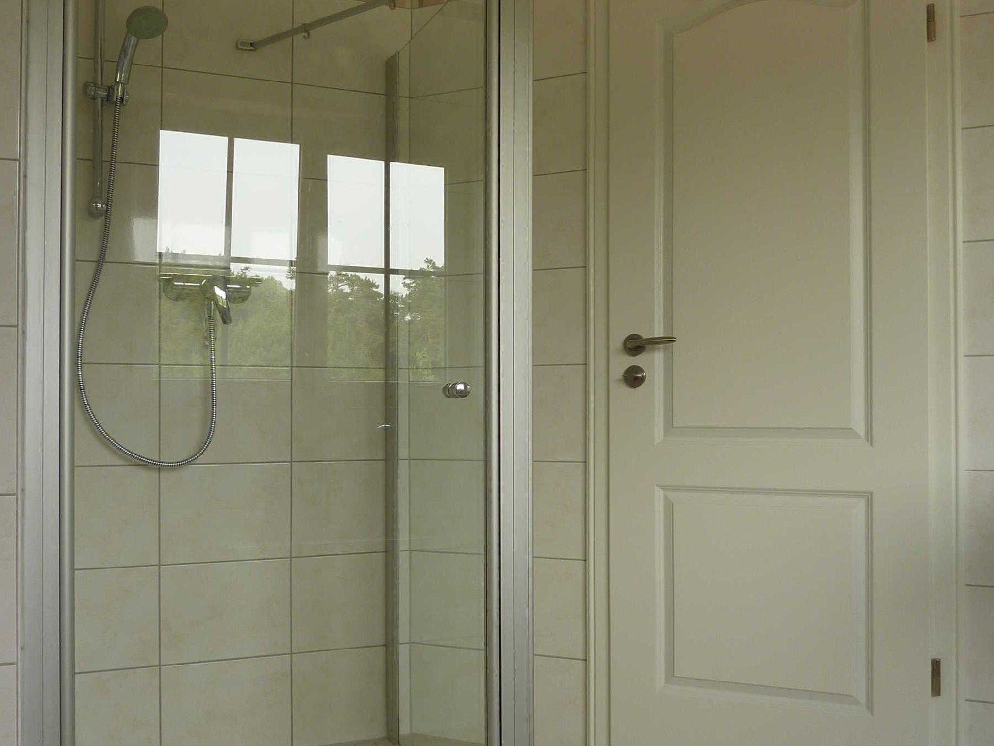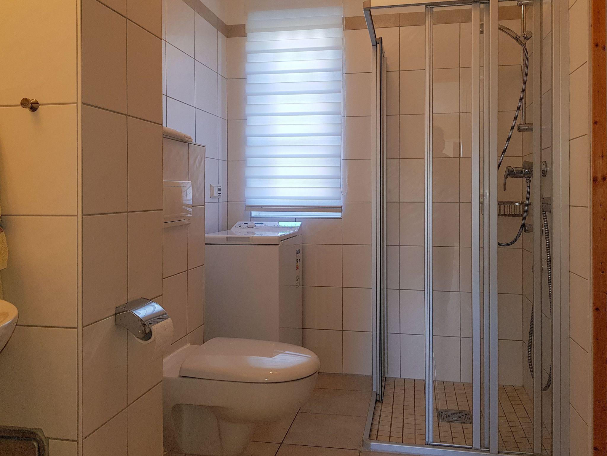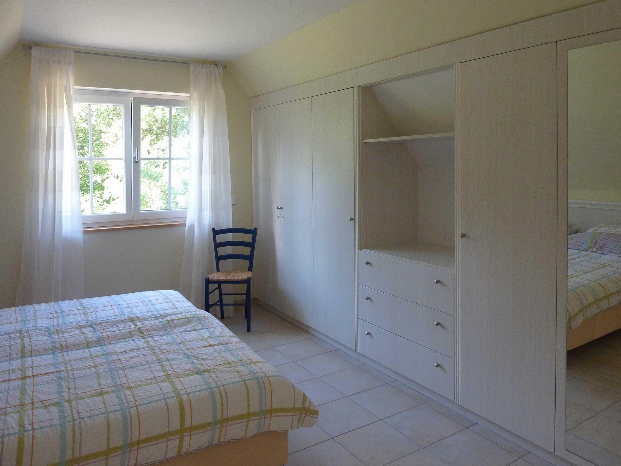 Im Obergeschoss liegen zwei Schlafräume mit Doppelbetten bzw. individuell einstellbar 2 getrennten Betten. Die zusätzliche Aufbettung auf der Schlafcouch im Wohnraum ermöglicht 2 weitere Schlafplätze. Für Kleinkinder ist ein Kinderreisebett und Kinderstuhl vorhanden. Als weiteres befindet sich im OG das Bad mit Waschbecken, Badewanne, Toilette, Bidet und separater Dusche.