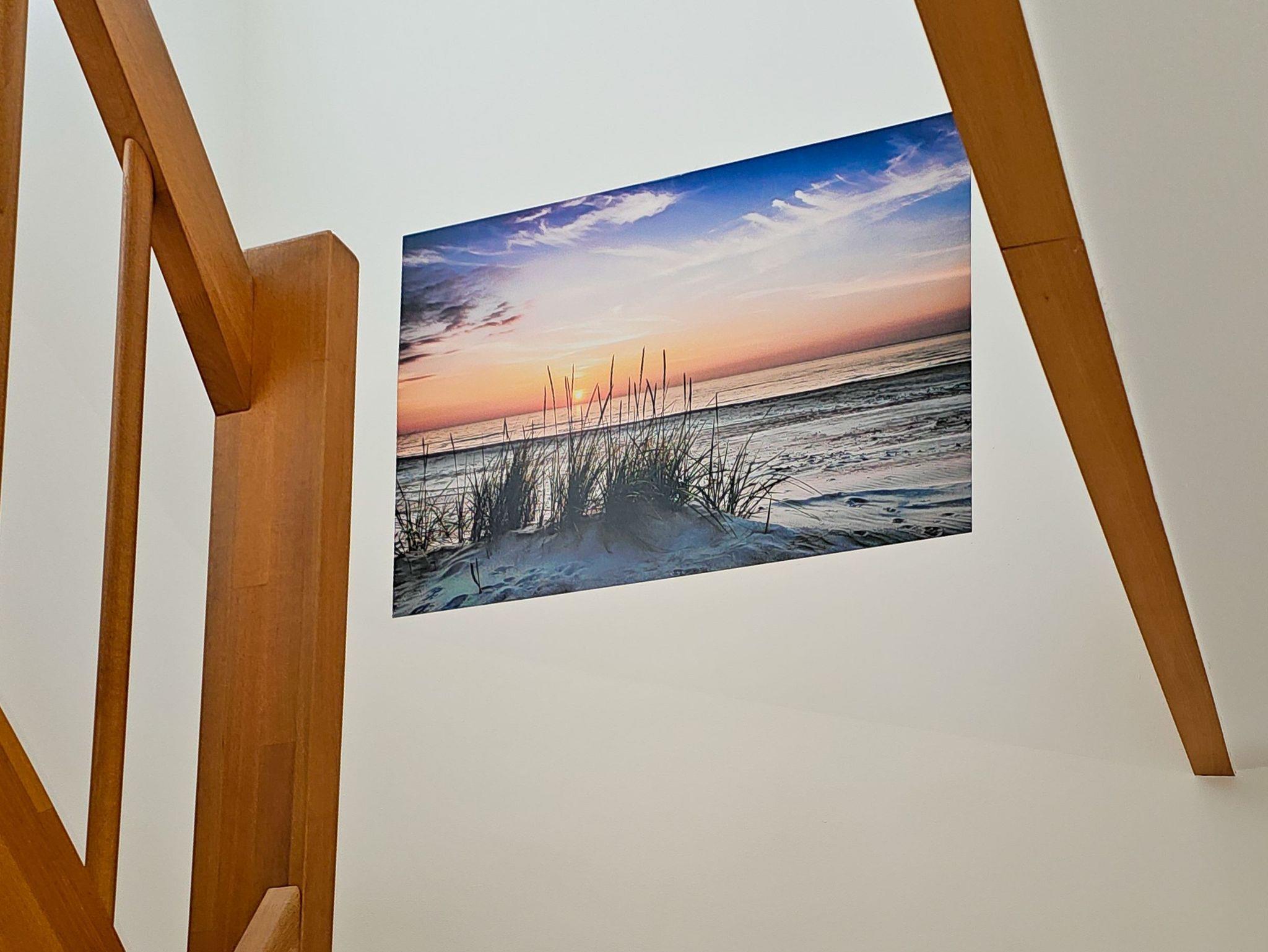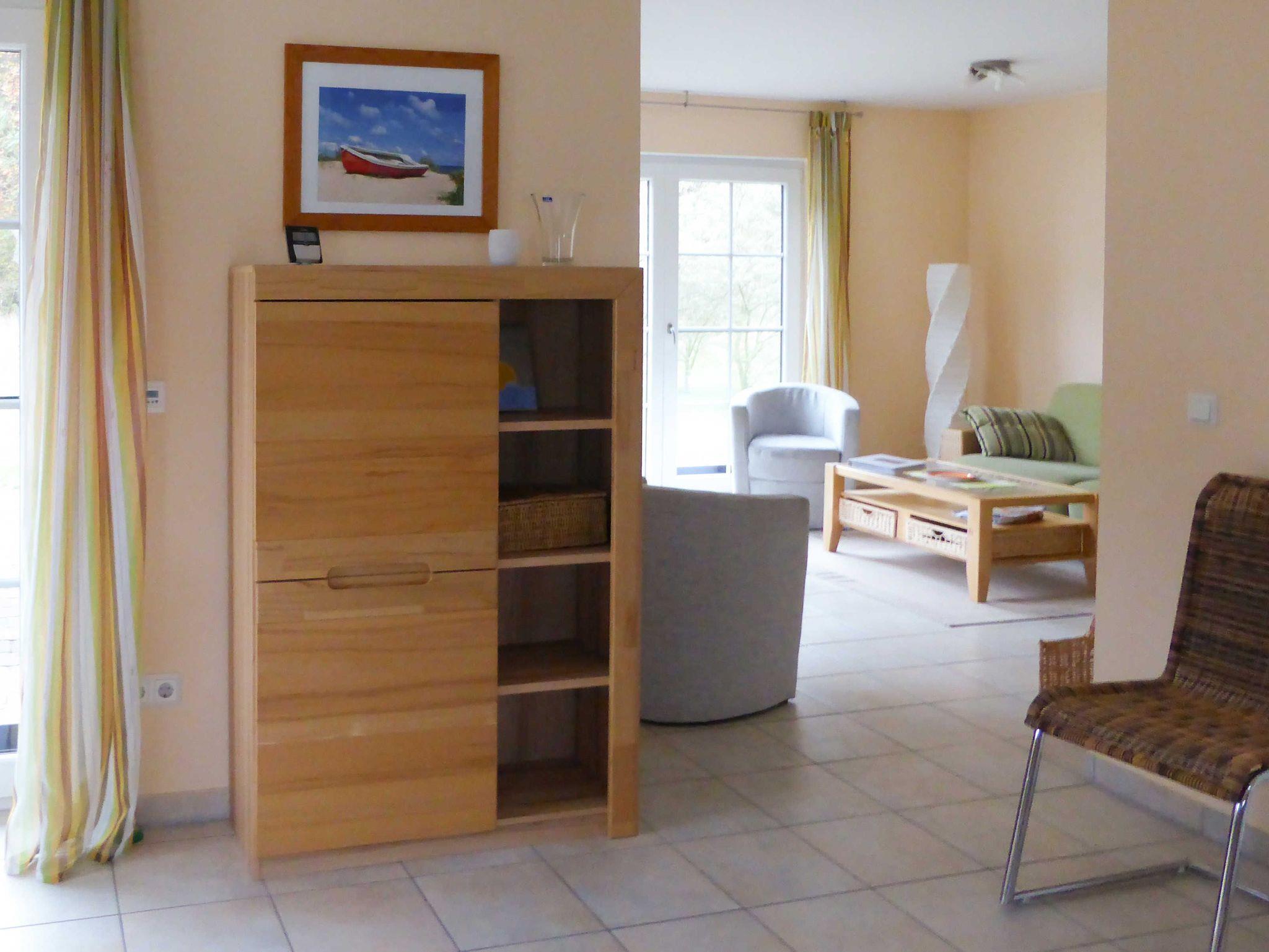 Im Erdgeschoss befindet sich der gemütliche Wohn/Essbereich, mit großem Smart-Fernseher, Radio, Internetanschluss über WLAN sowie Telefonanschluss. Zur Küche gehören: Cerankochfeld, Backofen mit Grill, Spülmaschine, Mikrowelle, Kaffeemaschine, Wasserkocher, Eierkocher, Toaster. Die Sauna und das Duschbad mit Toilette befinden sich ebenfalls im Erdgeschoss.