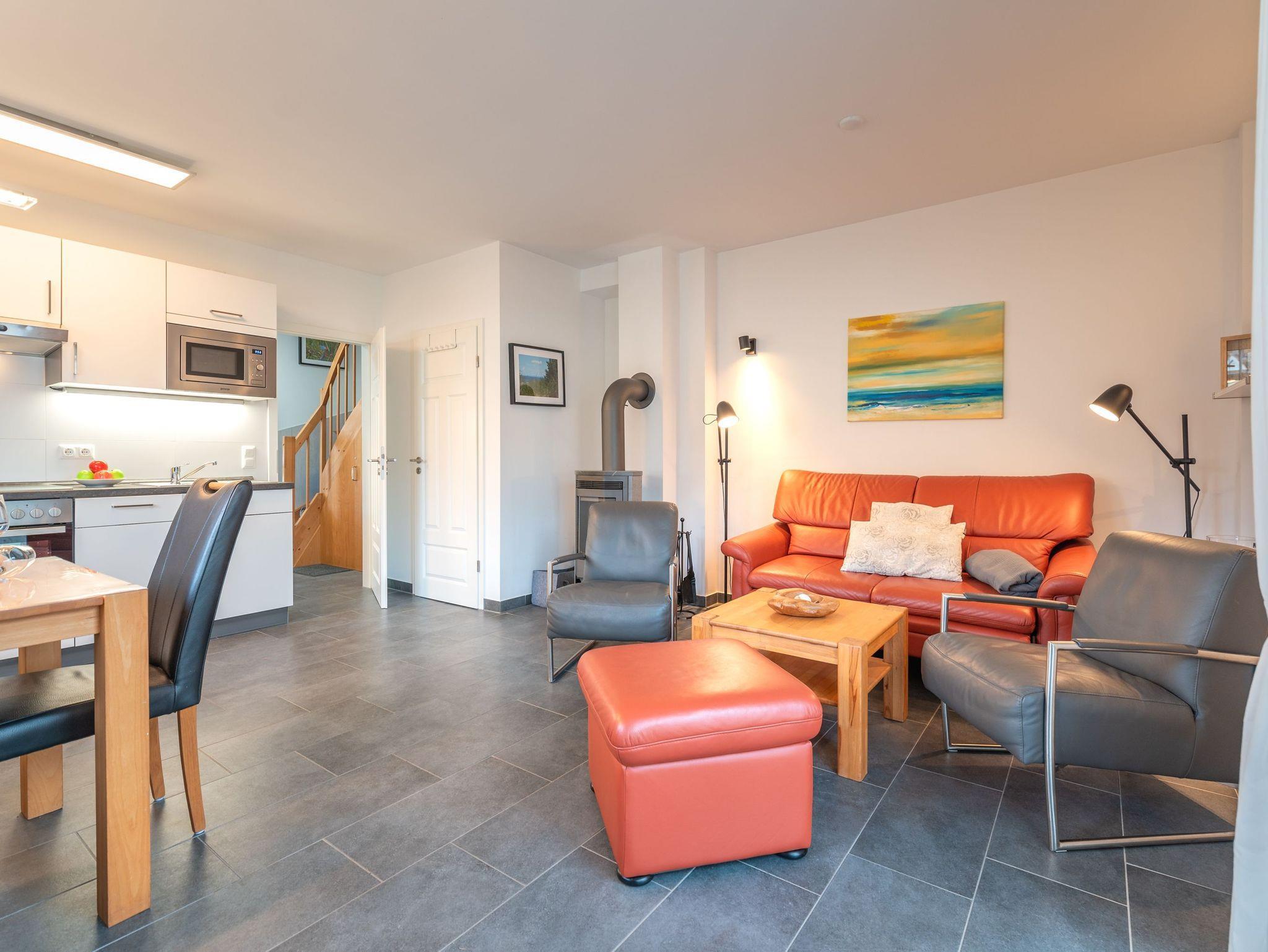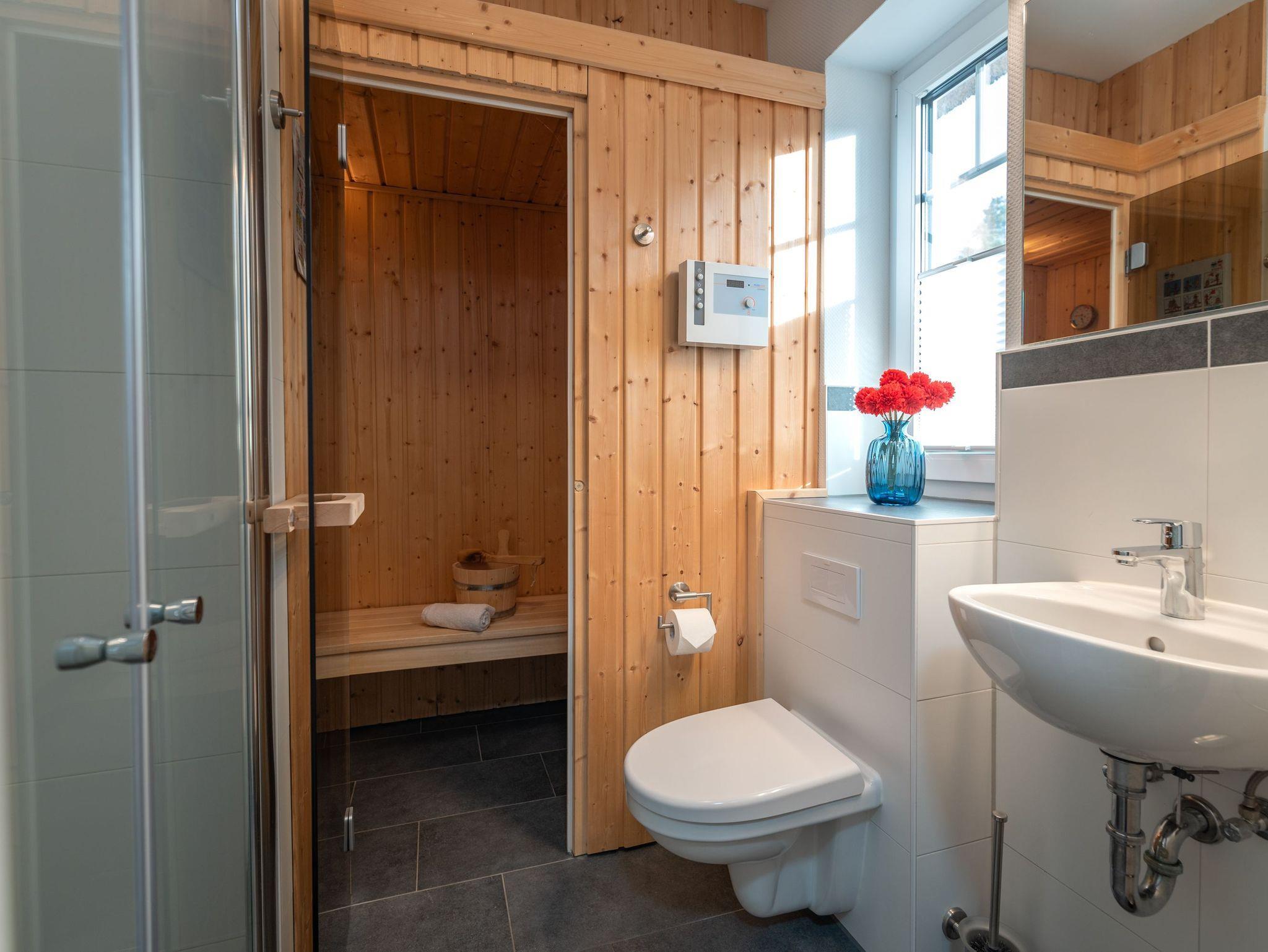 Die Ausstattung des Ferienhauses lässt keine Wünsche offen. Ein Kaminofen sorgt im Wohnbereich für wohlige Wärme an kühlen Abenden. Entspannen Sie in der privaten Sauna. Eine Waschmaschine sorgt für zusätzlichen Urlaubskomfort. Auf der Terrasse können Sie die Sonne genießen. Der Garten bietet Platz zum Spielen und Toben. Ein Parkplatz direkt vor der Haustür und Internet-WLAN stehen Ihnen kostenfrei zur Verfügung.