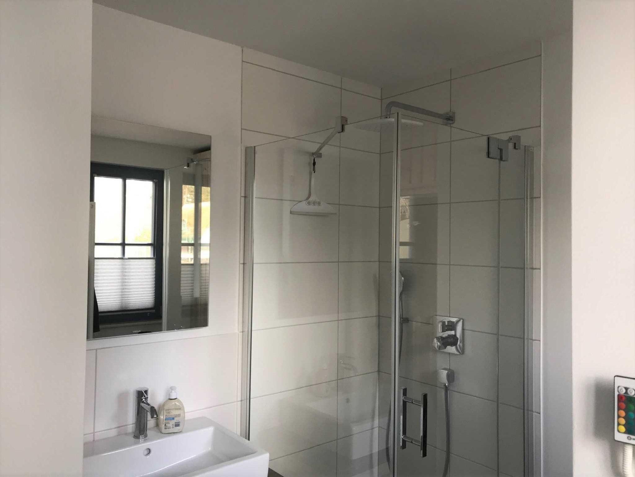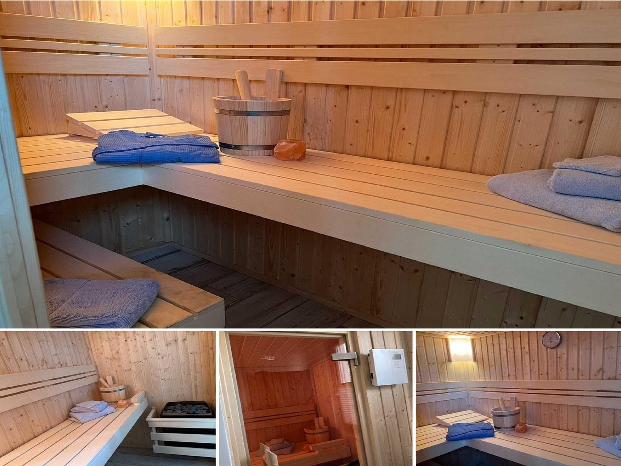 Badewanne, Dusche & WC in modernster Ausstattung. Im Erdgeschoss des Hauses befindet sich ein zweites Badezimmer mit Dusche & WC. Angeschlossen ist hier eine finnische Sauna, die mit wohltuender Wärme den Alltag vergessen lässt. Ein Safe befindet sich ebenfalls im Haus.