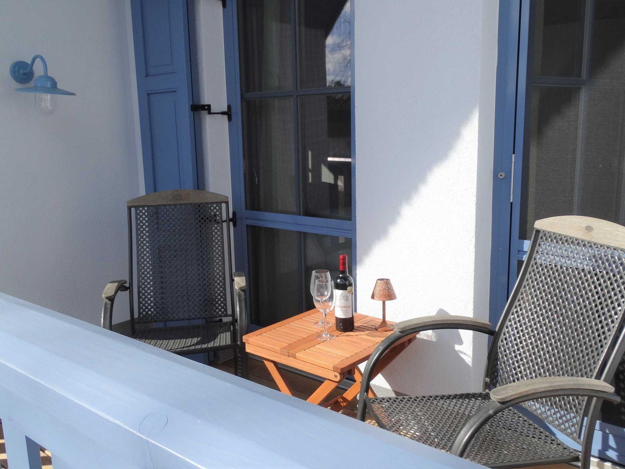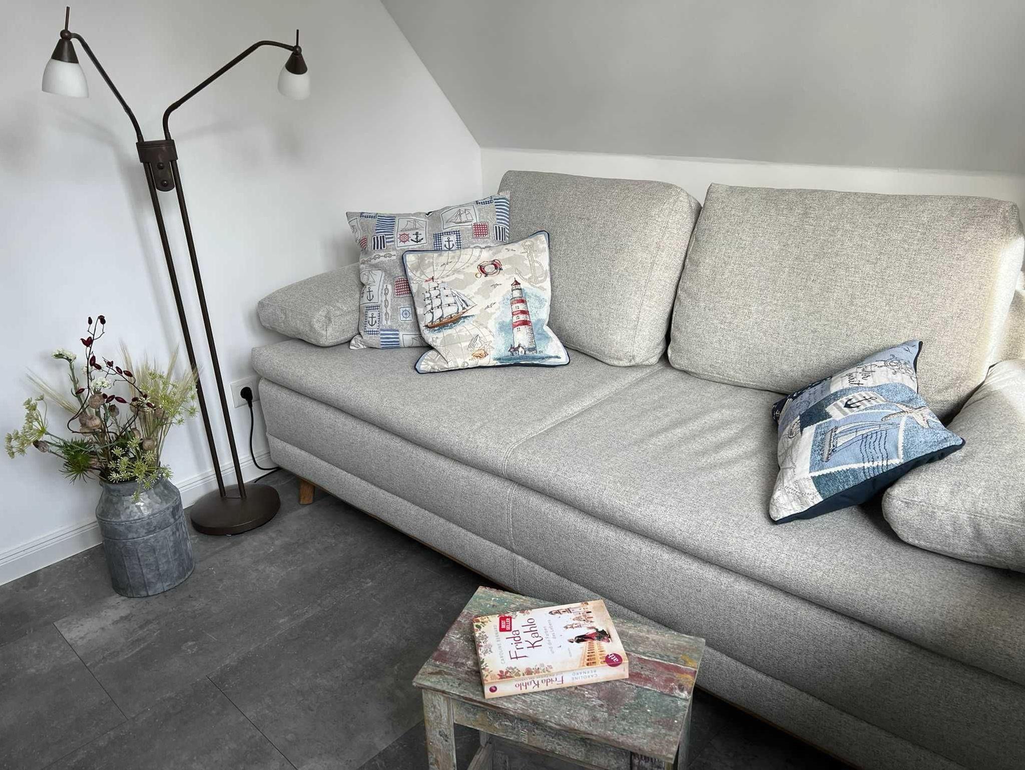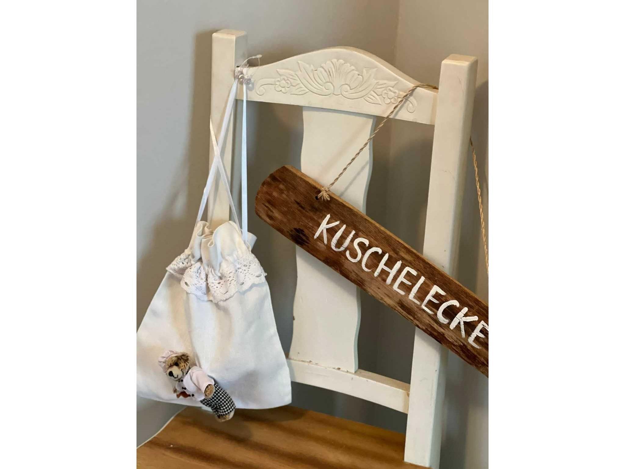 Die große Terrasse ist mit gemütlichen Massivholz- Gartenmöbeln großen 2m Tisch mit 6 Hochlehnen- Klappstühlen, 2 Sonnenliegen, Sonnenschirm, Strandkorb und Elektrogrill ausgestattet. Auch die kleine Terrasse und Balkon sind mit Möbeln ausgestattet. Im Garten gibt es einen Buddelkasten & Spielzeug für die kleinen.
