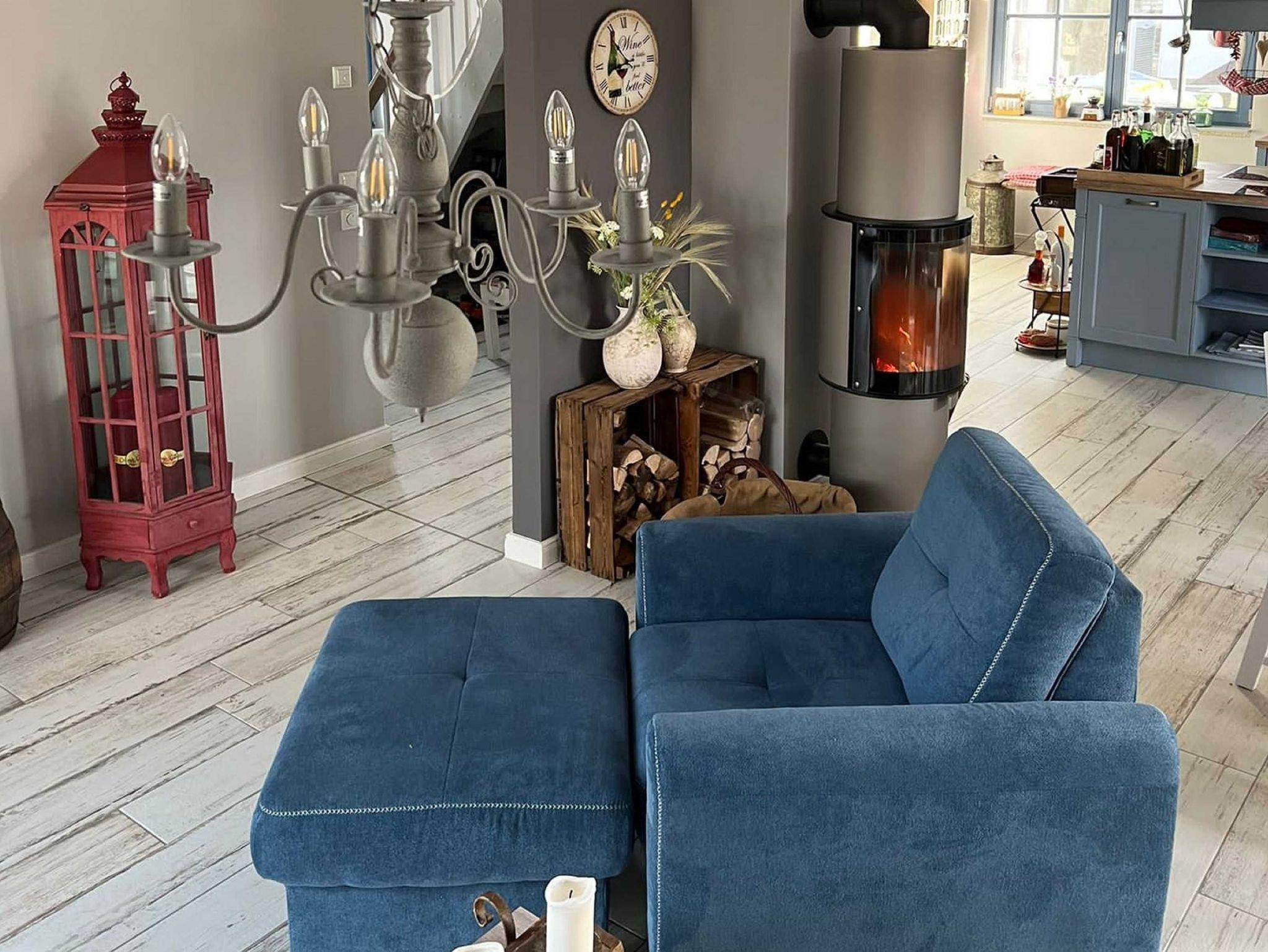 Wer es ruhig mag, kann den Ferientag am lodernden Kaminfeuer auf der gemütlichen Couch, auf einer der angrenzenden Terrassen oder dem großzügigen Balkon ausklingen lassen. Das Ferienhaus verfügt über 3 Schlafzimmer im Obergeschoss, wovon 2 mit bequemen Doppelbetten ausgestattet sind, das dritte Schlafzimmer kann über eine moderne Schlafcouch als Einzel- oder Doppelzimmer genutzt werden. Im Obergeschoss befindet sich außerdem ein sehr geräumiges Bad mit Doppelwaschbecken,