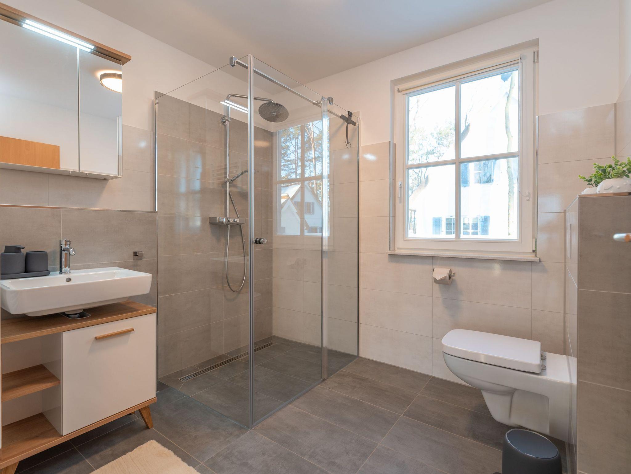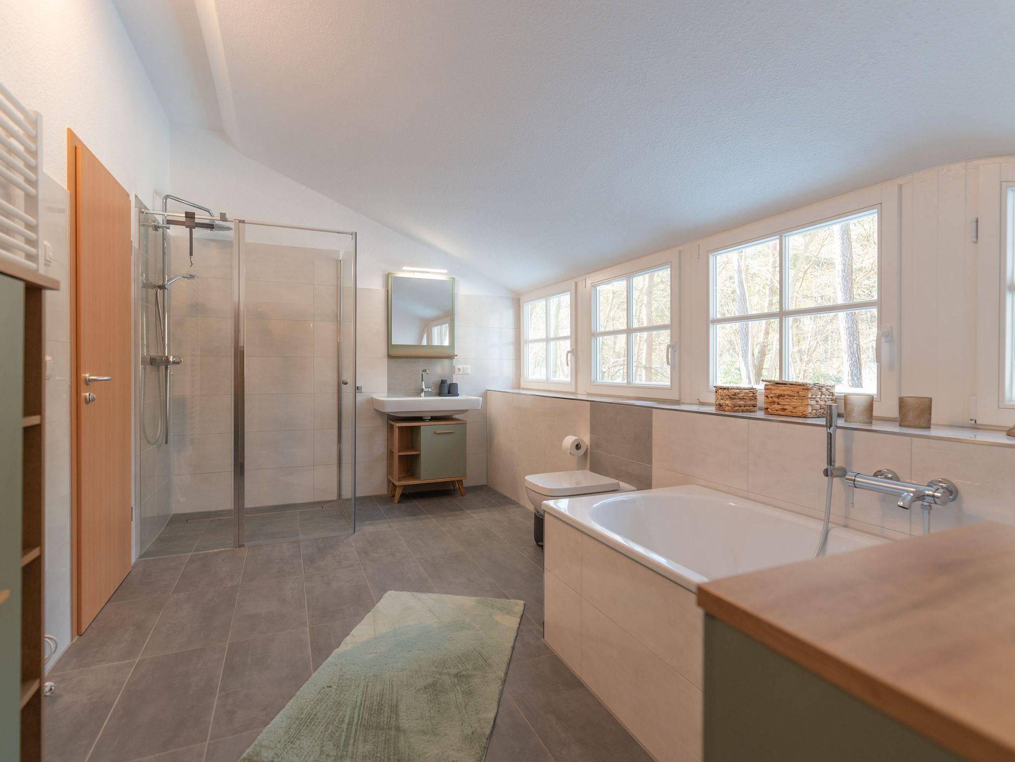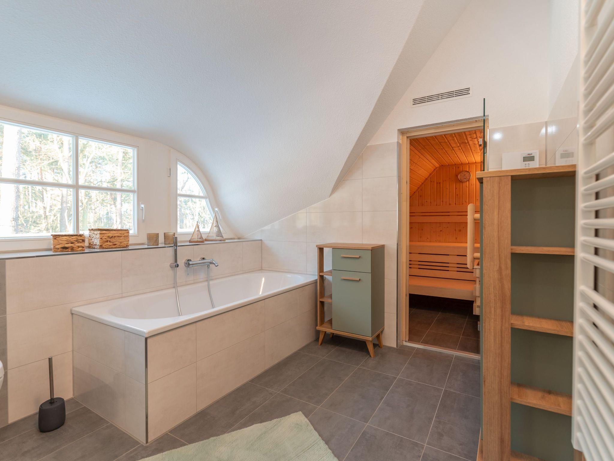 • Zwei Badezimmer: Ein modernes Badezimmer auf jeder Etage, das obere mit einer zusätzlichen Badewanne und einer Sauna, perfekt zum Entspannen nach einem Tag voller Aktivitäten.