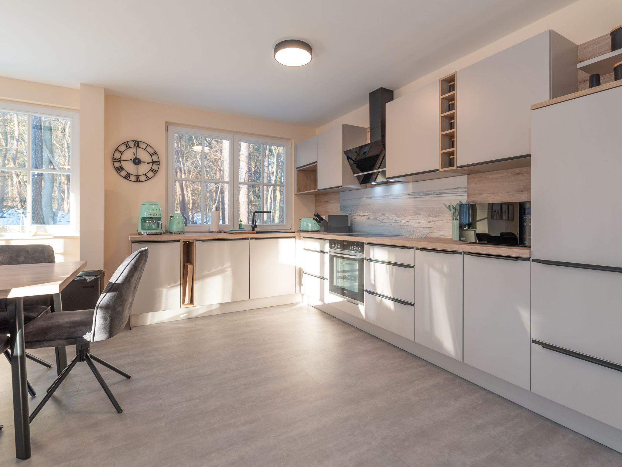 • Voll ausgestatteter Küchenbereich: Inklusive Geschirrspüler, um die Zubereitung von Mahlzeiten so einfach wie möglich zu gestalten.