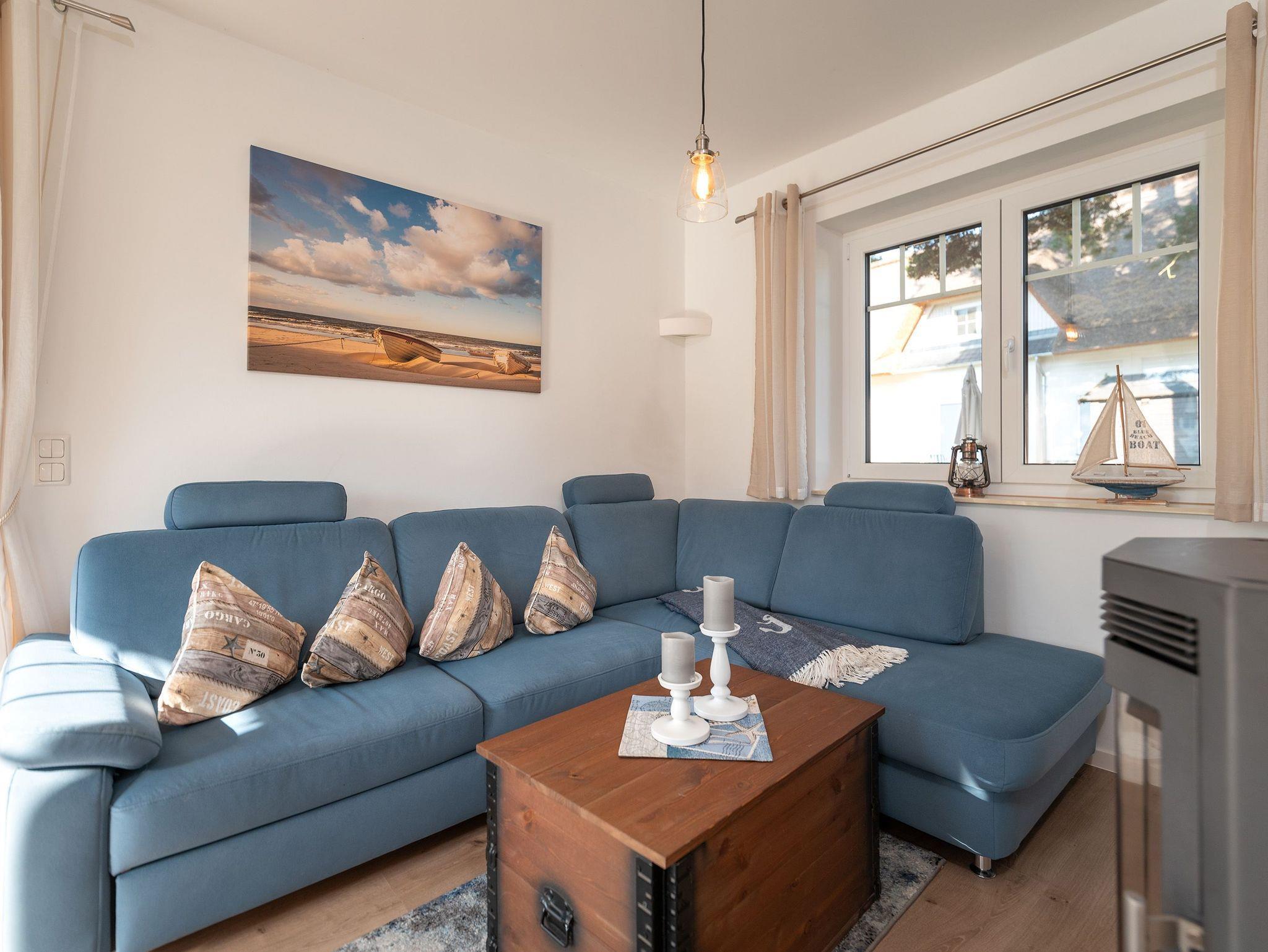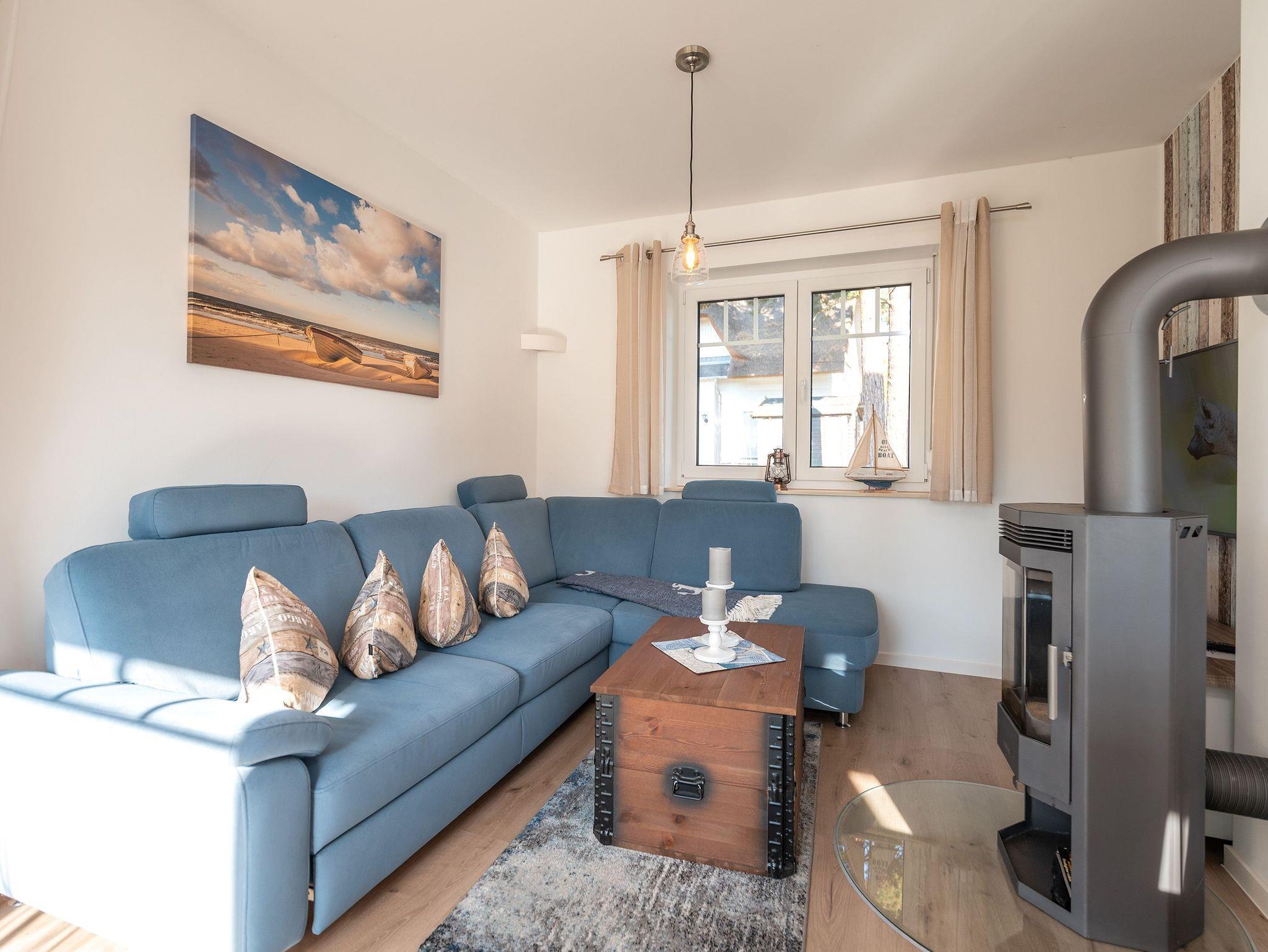 • gemütlicher Wohnraum mit Sitzecke und Kamin