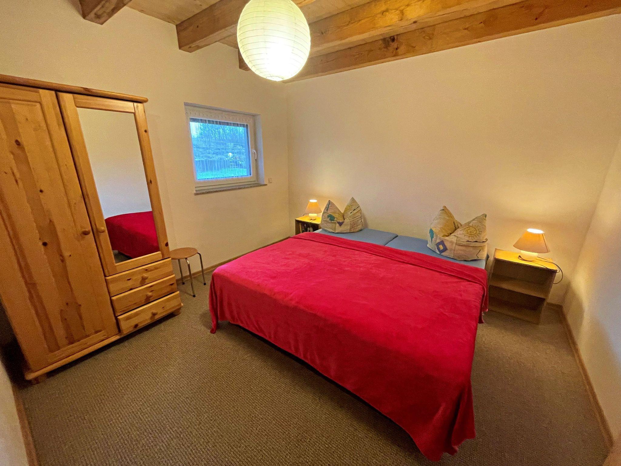 Die im Erdgeschoss gelegene 2 Raum Ferienwohnung ist ca. 56 m² groß. Durch den stufenlosen Eingang und der ebenerdigen Dusche ist die Ferienwohnung für behinderte Personen sehr gut geeignet. Die Ferienwohnung verfügt über ein separates Schlafzimmer mit Doppelbett. Selbstversorger finden eine rundum gut ausgestattete separate Küche vor, die alle Wünsche erfüllt. Eine Spülmaschine ist leider nicht vorhanden. Einen separaten Essplatz gibt es im Wohnbereich. Der Wohnbereich ist weiterhin mit einer großen bequemen Sitzgarnitur und Flach Bild Fernseher eingerichtet. Eine Terrasse mit Sitzmöbeln und Blick ins Grüne ist vorhanden. Hier können Sie morgens Ihren Kaffee genießen oder den Abend bei einem Glas Wein ausklingen lassen. Der Pkw-Stellplatz befindet sich auf dem Grundstück. Die Erstausstattung Bettwäsche und Handtücher sind im Preis enthalten.