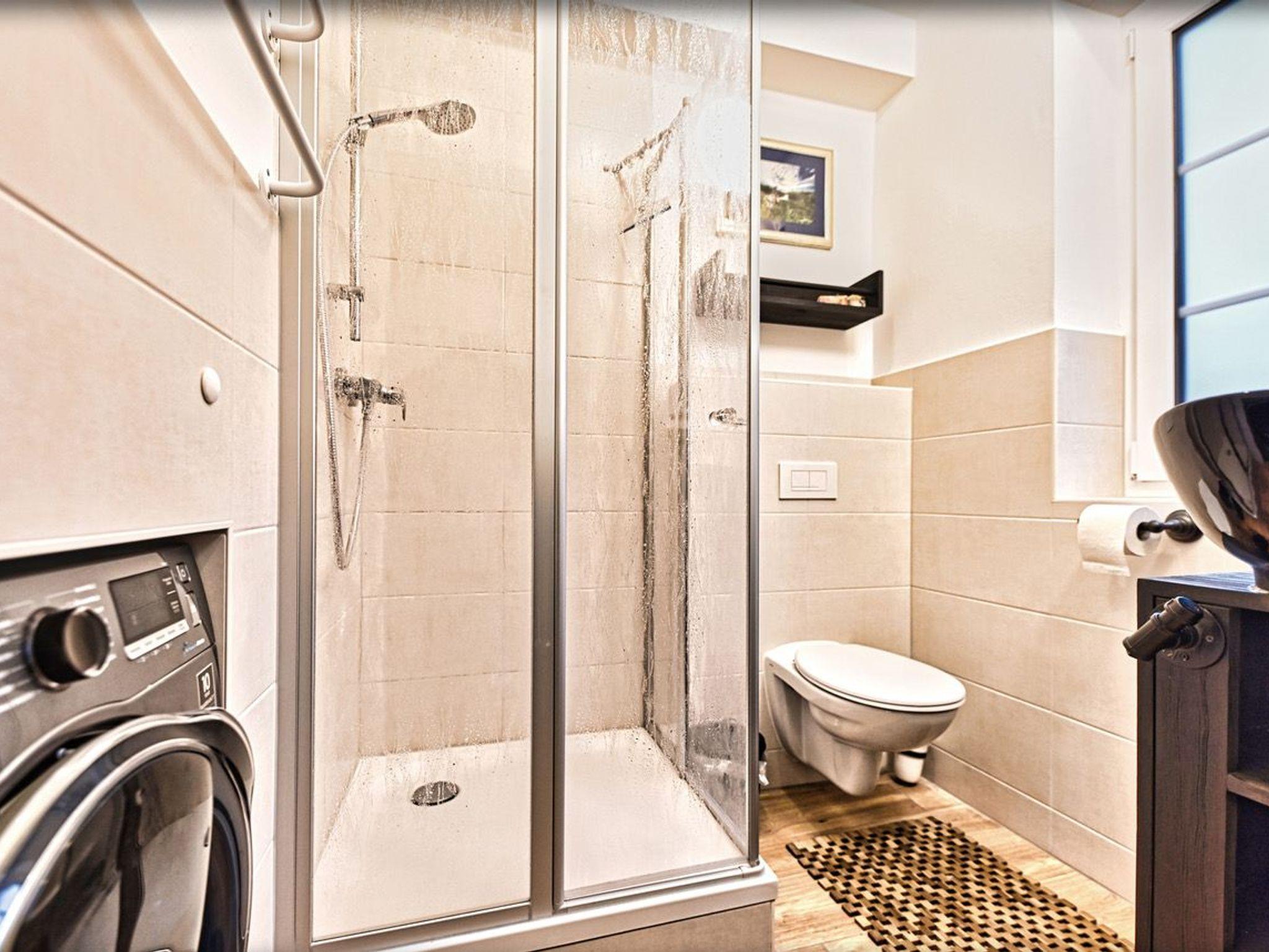 Das Erdgeschoss besticht durch einen offenen, lichtdurchfluteten Wohn- und Essbereich. Auf der gemütlichen Couch können Sie sich entspannen, während ein großer Smart-TV für Unterhaltung sorgt. Die angrenzende, voll ausgestattete Küche mit modernsten Geräten lässt kulinarische Herzen höher schlagen. Ein zusätzliches Badezimmer mit Dusche und Waschmaschine steht ebenfalls zu Ihrer Verfügung.
