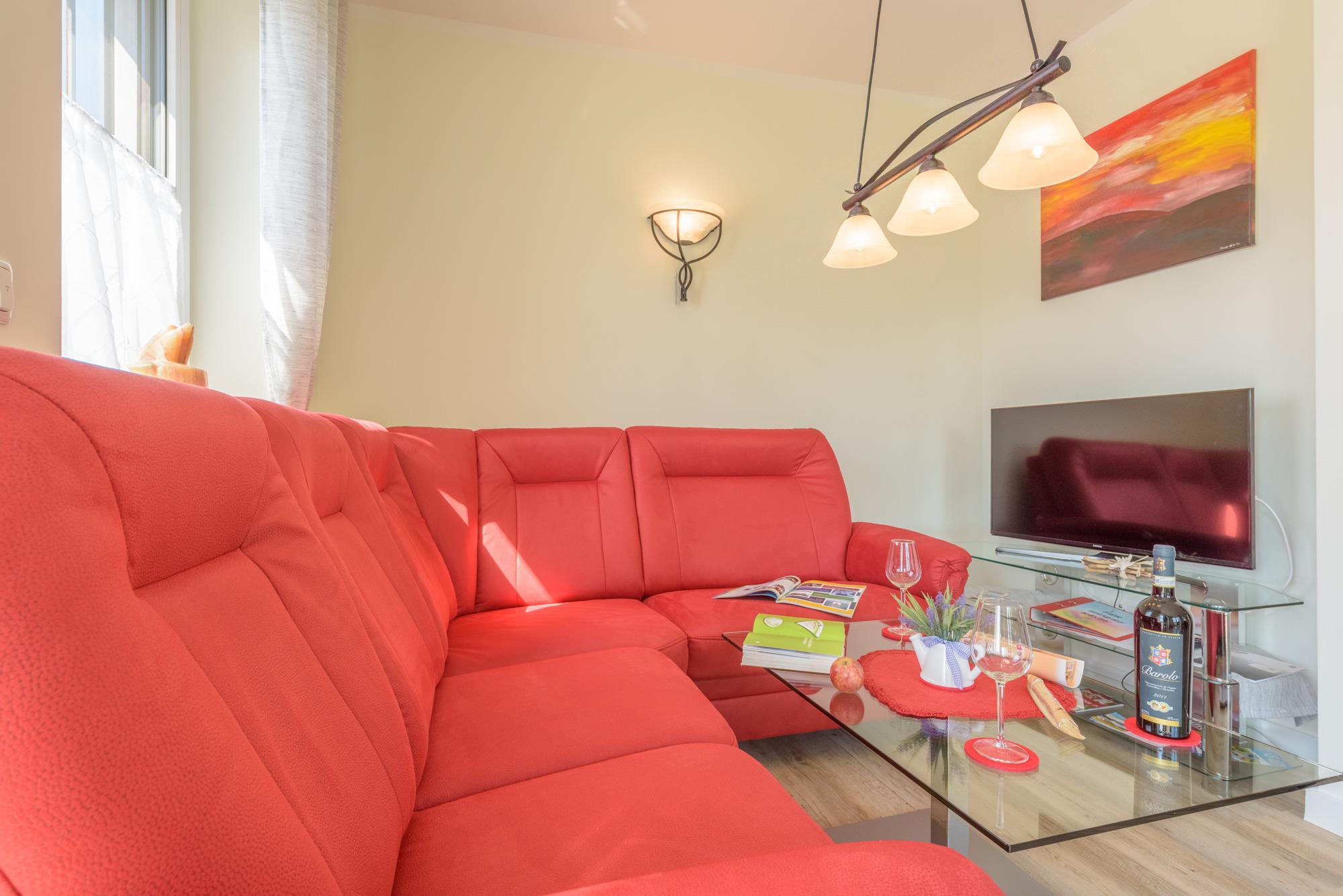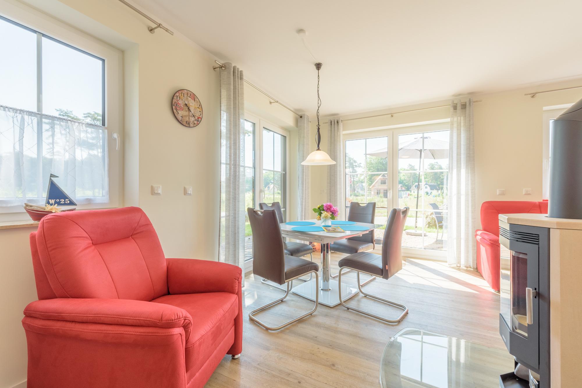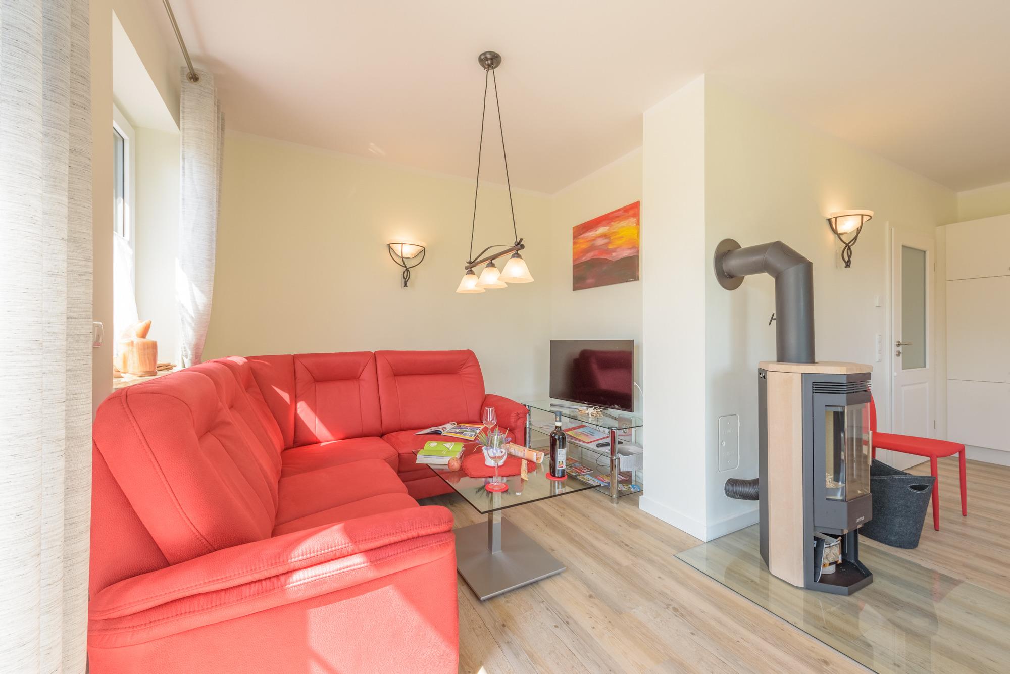 Das Ferienhaus hat eine hochwertige Innenausstattung mit WLAN, Internetanschluss, Kamin, großem Flachbildfernseher, Radio,
