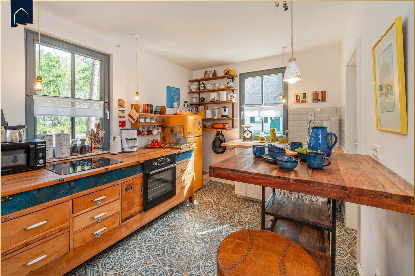 Dieses freistehende Ferienhaus liegt idyllisch in einem kleinen Dorf auf Usedom – perfekt für alle, die Natur und Ruhe suchen. Abgelegen vom Trubel, aber gut erreichbar, bietet das Haus mit 104?m² Wohnfläche auf einem fast 1.000?m² großen Grundstück reichlich Platz zum Entspannen. Zwei gemütliche Schlafzimmer, ein stilvoll eingerichtetes Wohnzimmer mit Kaminofen und eine offene, voll ausgestattete Küche schaffen eine warme, einladende Atmosphäre. Für zusätzlichen Komfort sorgen zwei moderne Bäder, darunter ein Gäste-WC und eine Dusche sowie eine Badewanne.